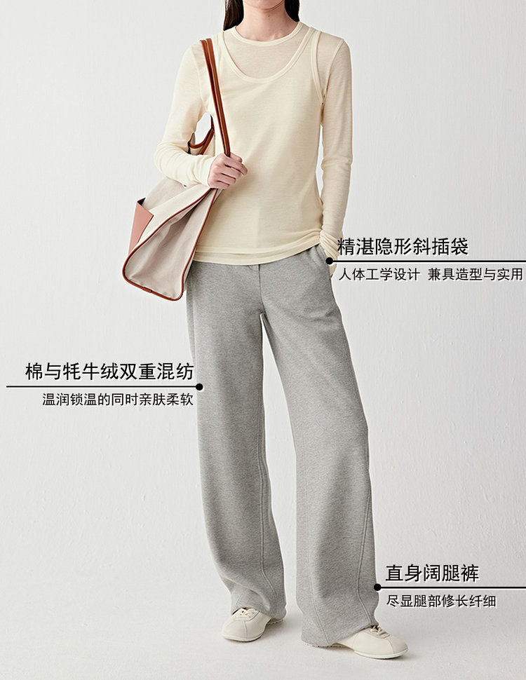 牦牛绒自带温润锁温属性,换季的风吹也不会冷,比普通卫裤暖太多。