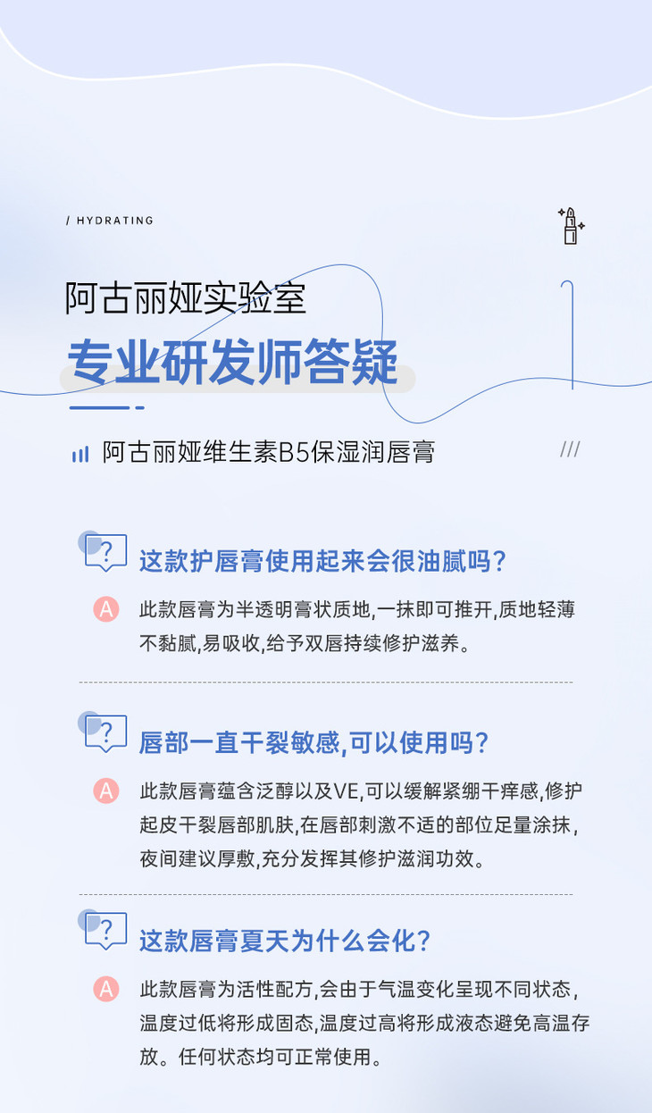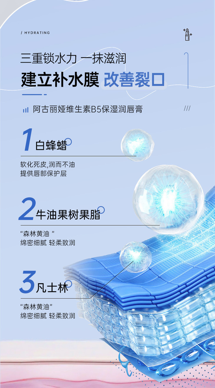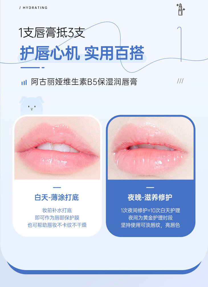 【买1送1 阿古丽娅维生素原B5保湿润唇膏】补水滋润干燥粗糙唇部护理润唇膏