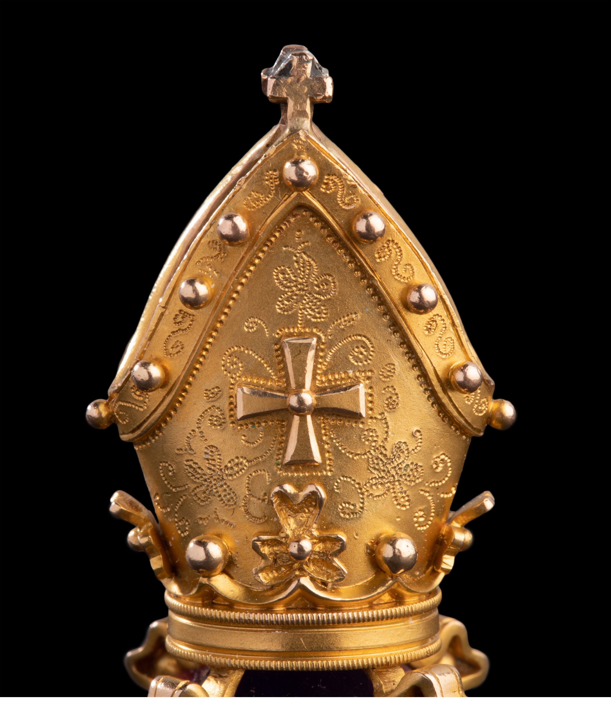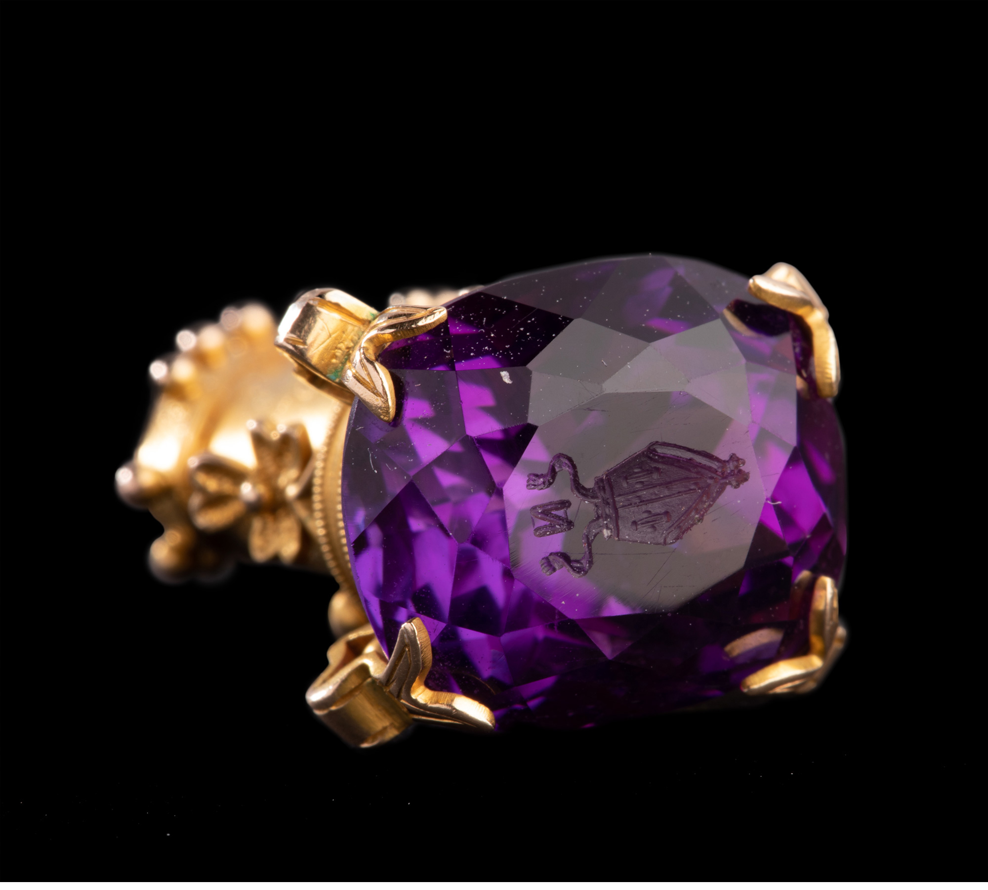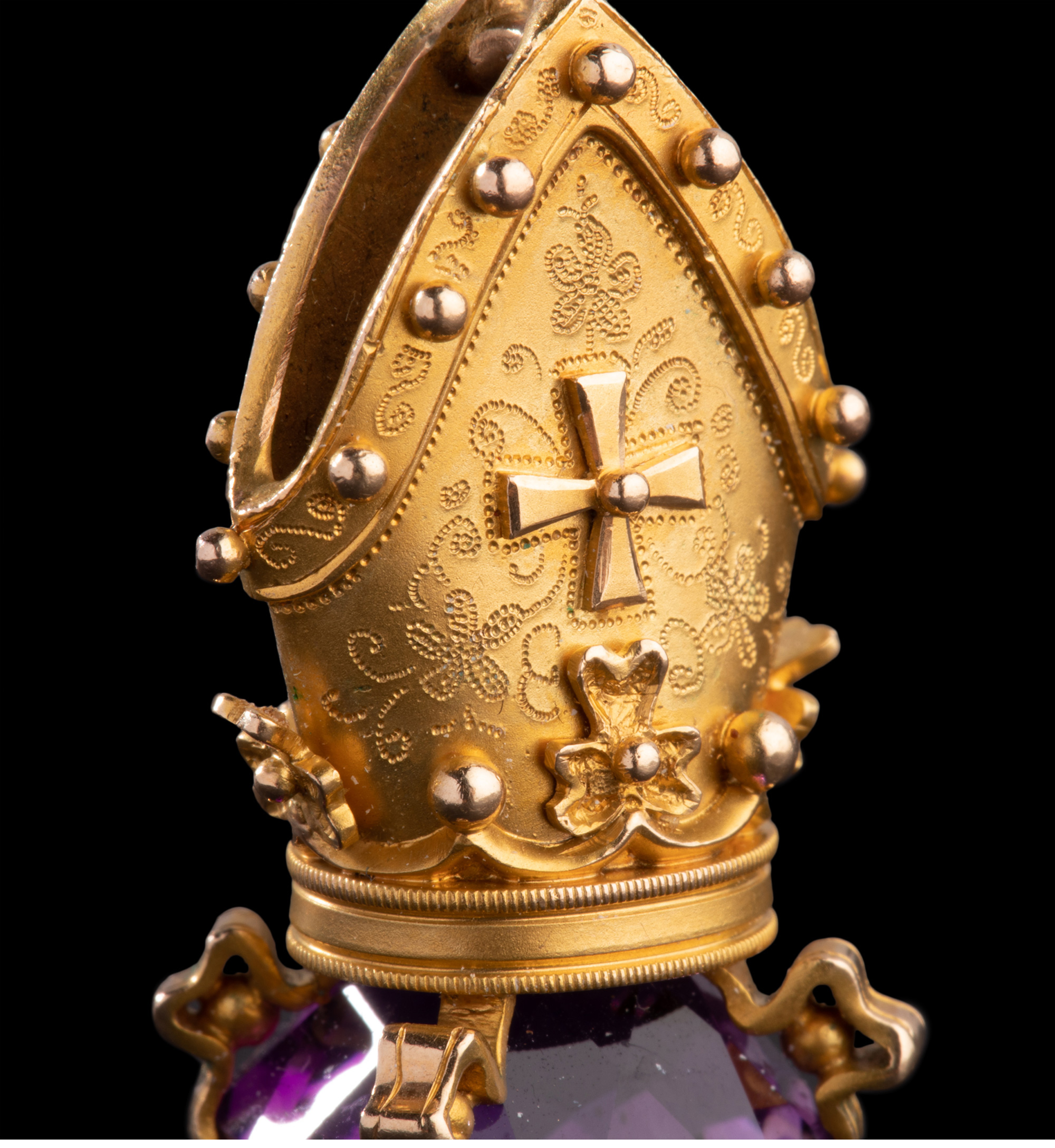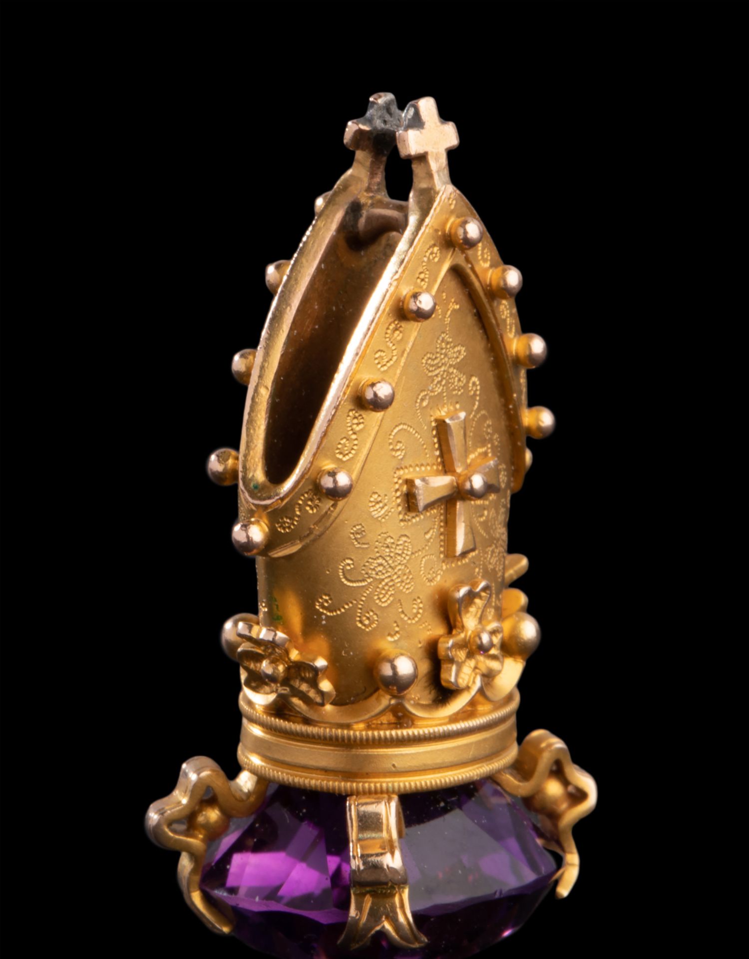 独角鹿西洋古董欧洲主教冠造型黄金雕花嵌紫水晶火漆印章吊坠