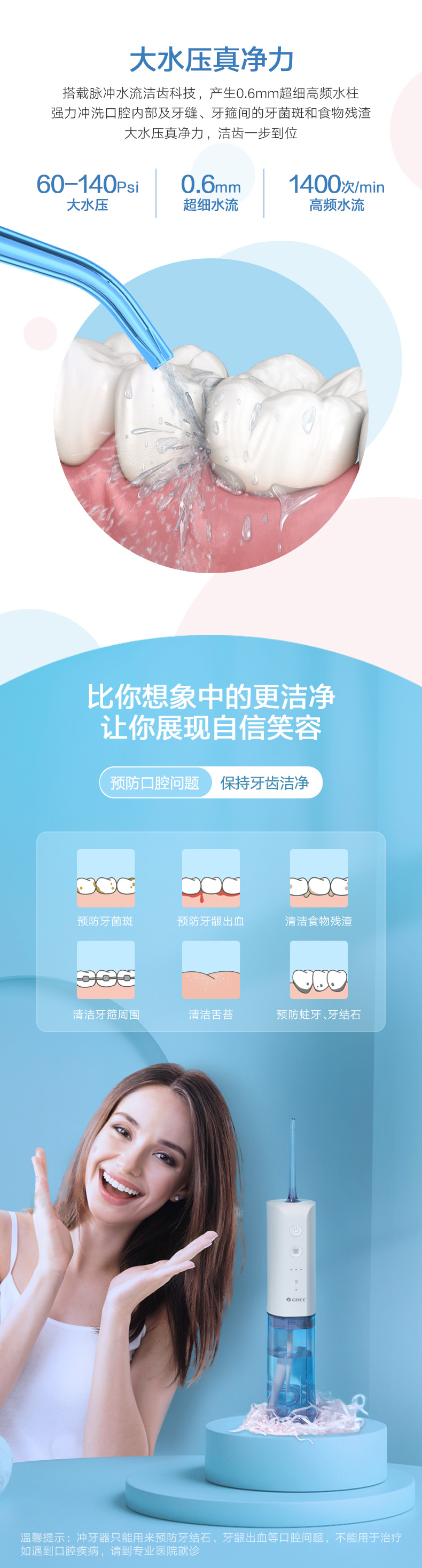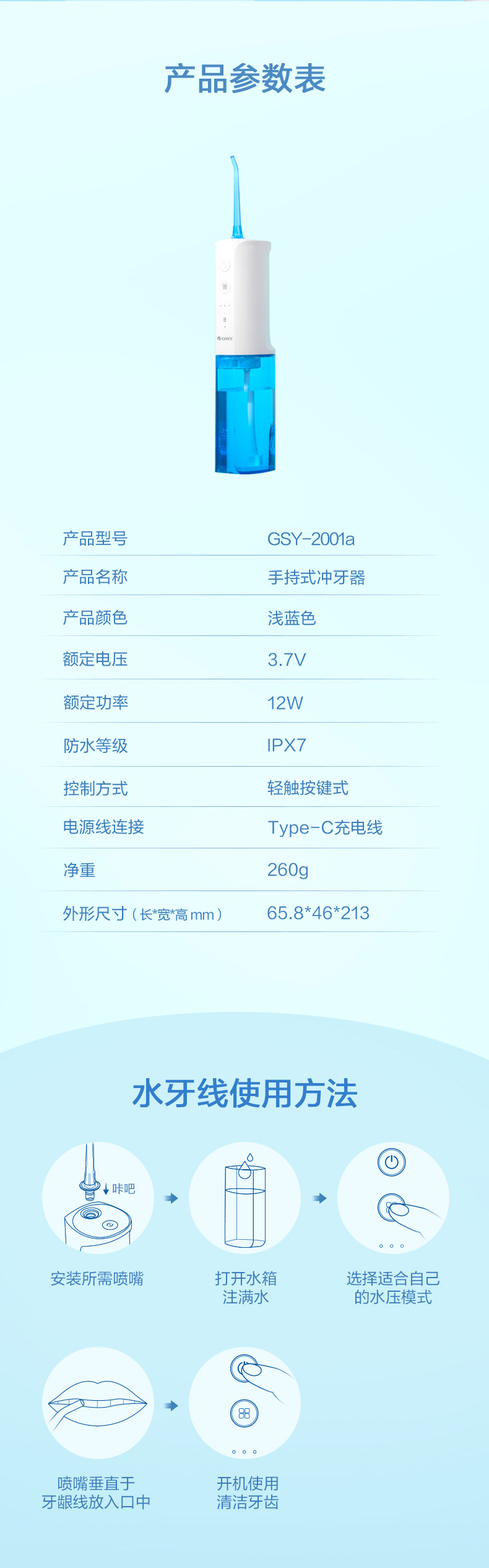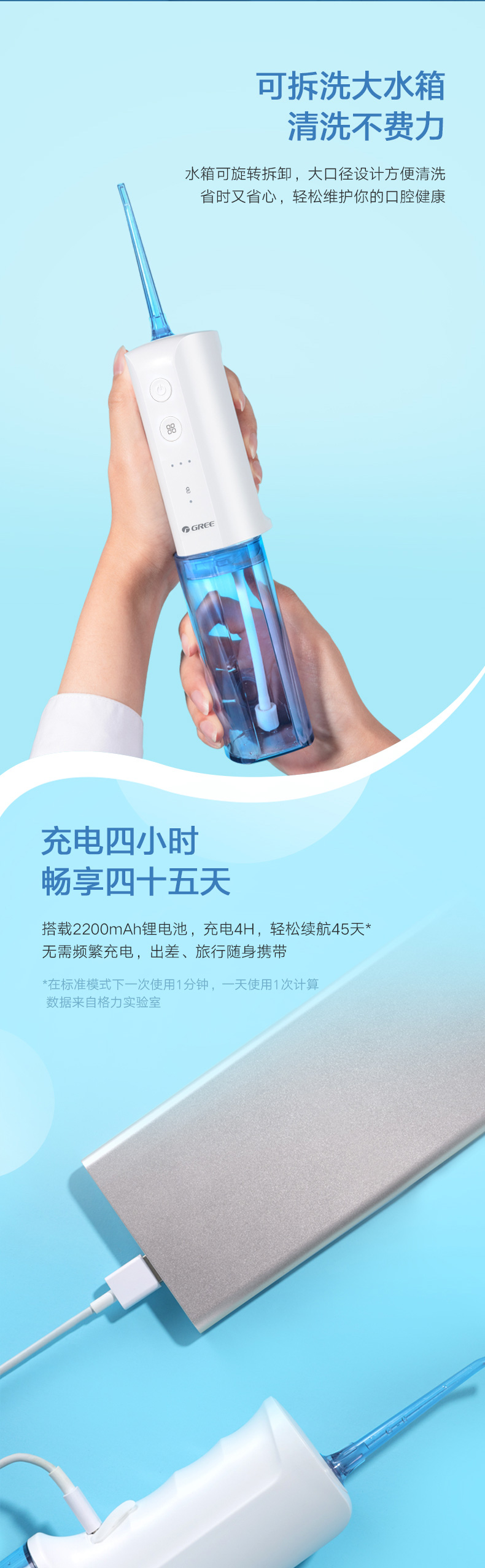 格力·手持式冲牙器 水牙线 GSY-2001a 白+浅蓝色