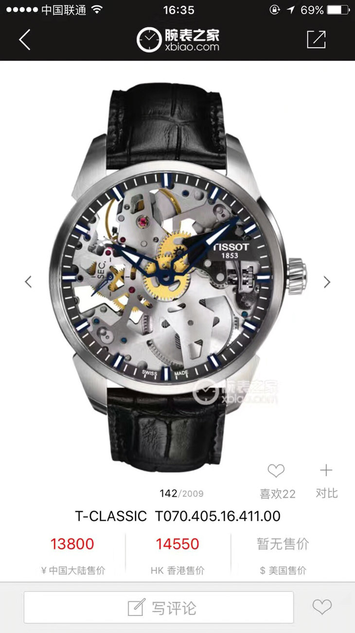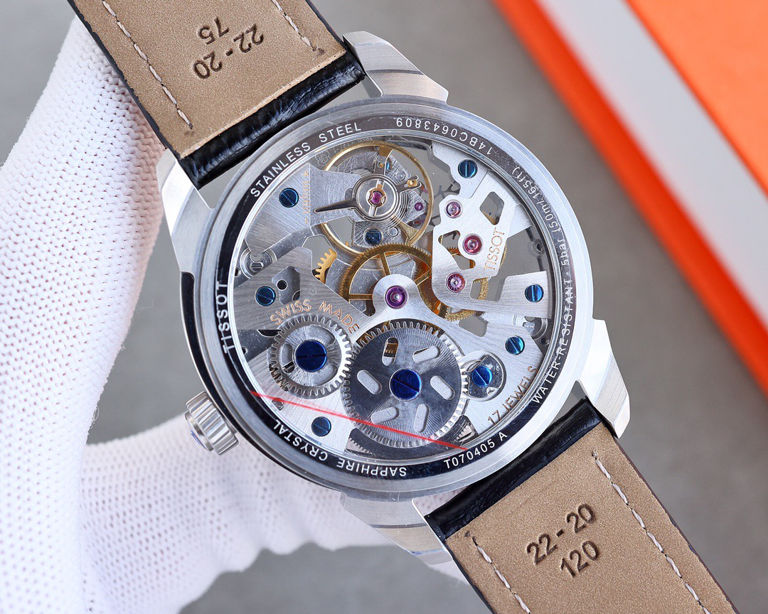 TW天梭T-CLASSIC系列T070.405.16.411.006497手动机械机芯,43毫米直径,男士手表,材质:316l精钢,机芯直径:36.6毫米机芯