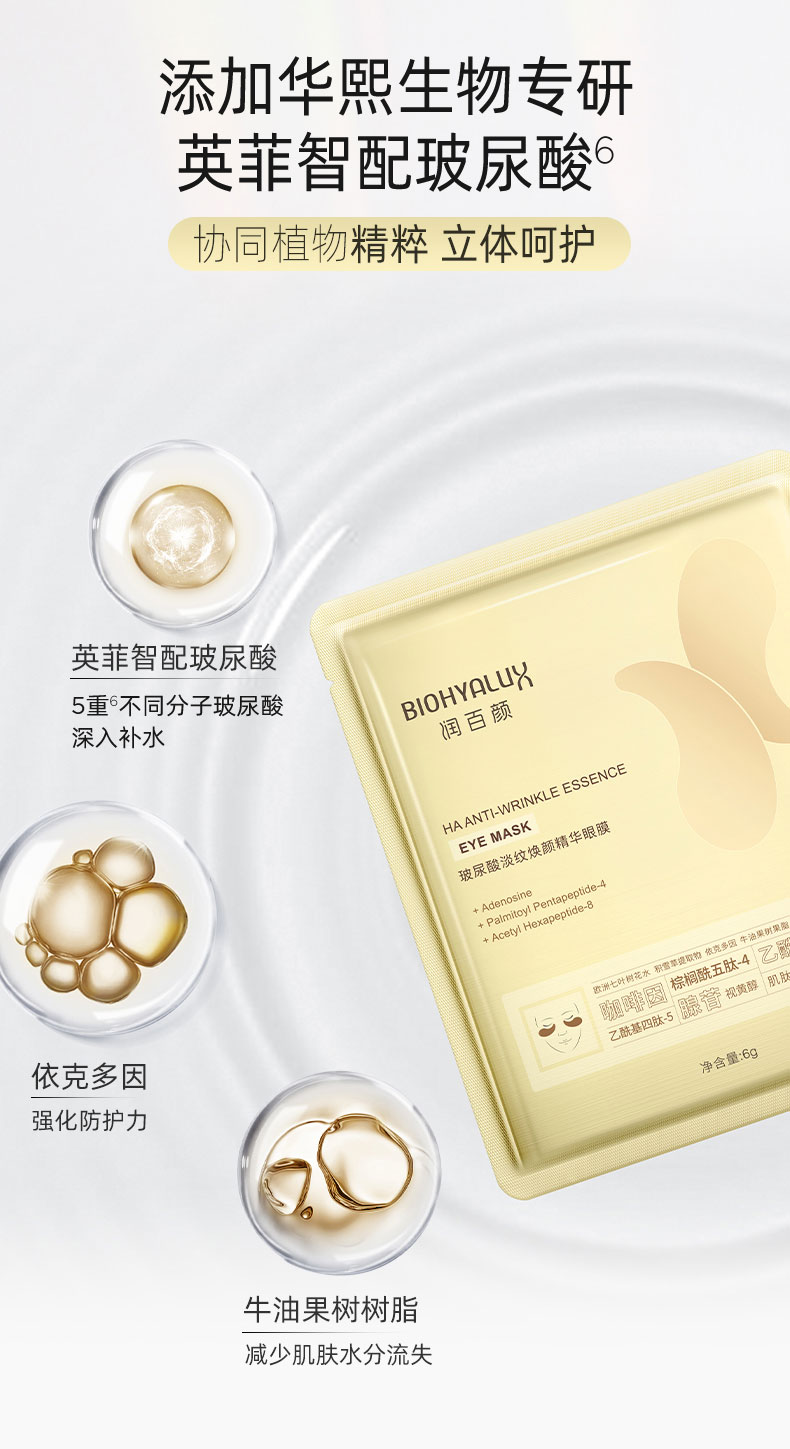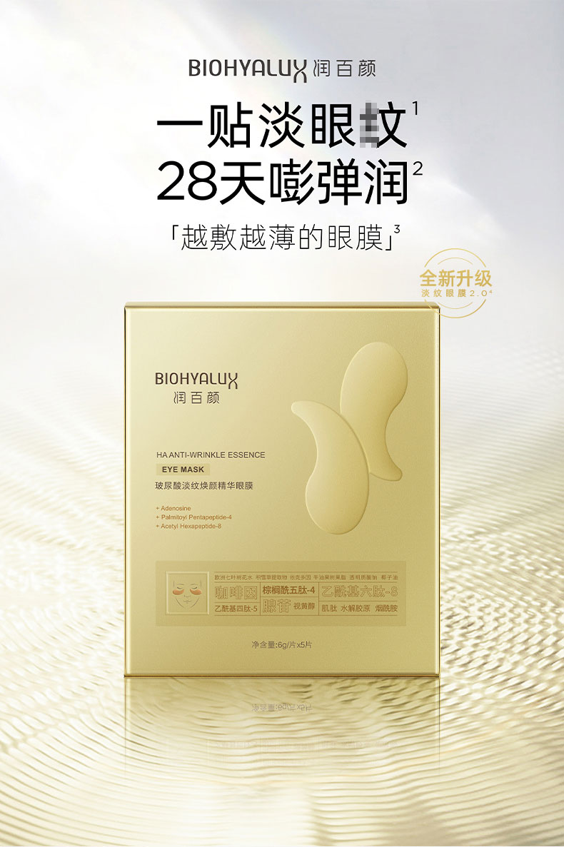 润百颜玻尿酸淡纹焕颜精华眼膜6g*5支