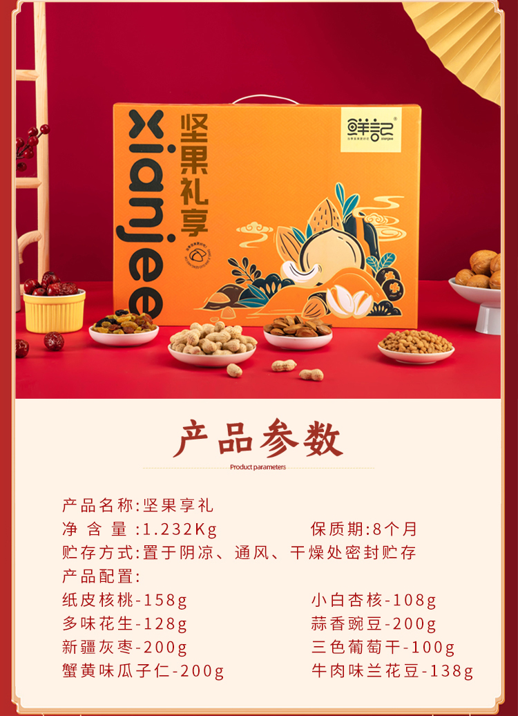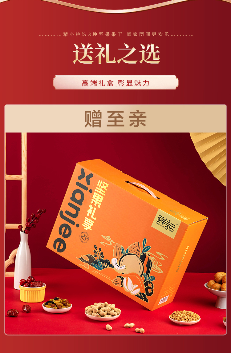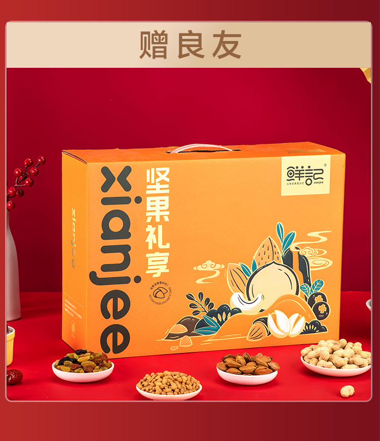 鲜记 坚果礼享盒1.232kg 坚果礼盒办公室休闲零食坚果炒货节日送礼