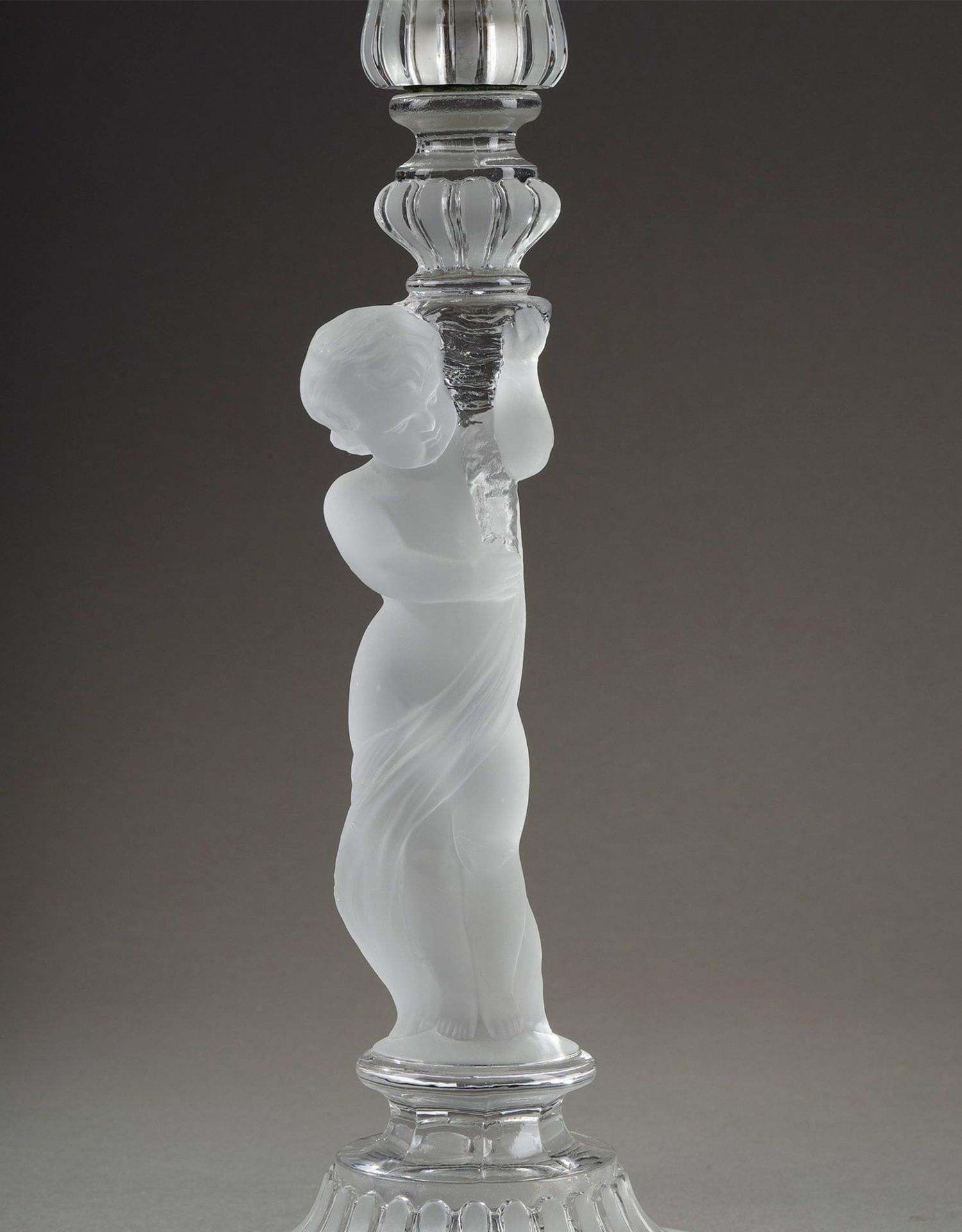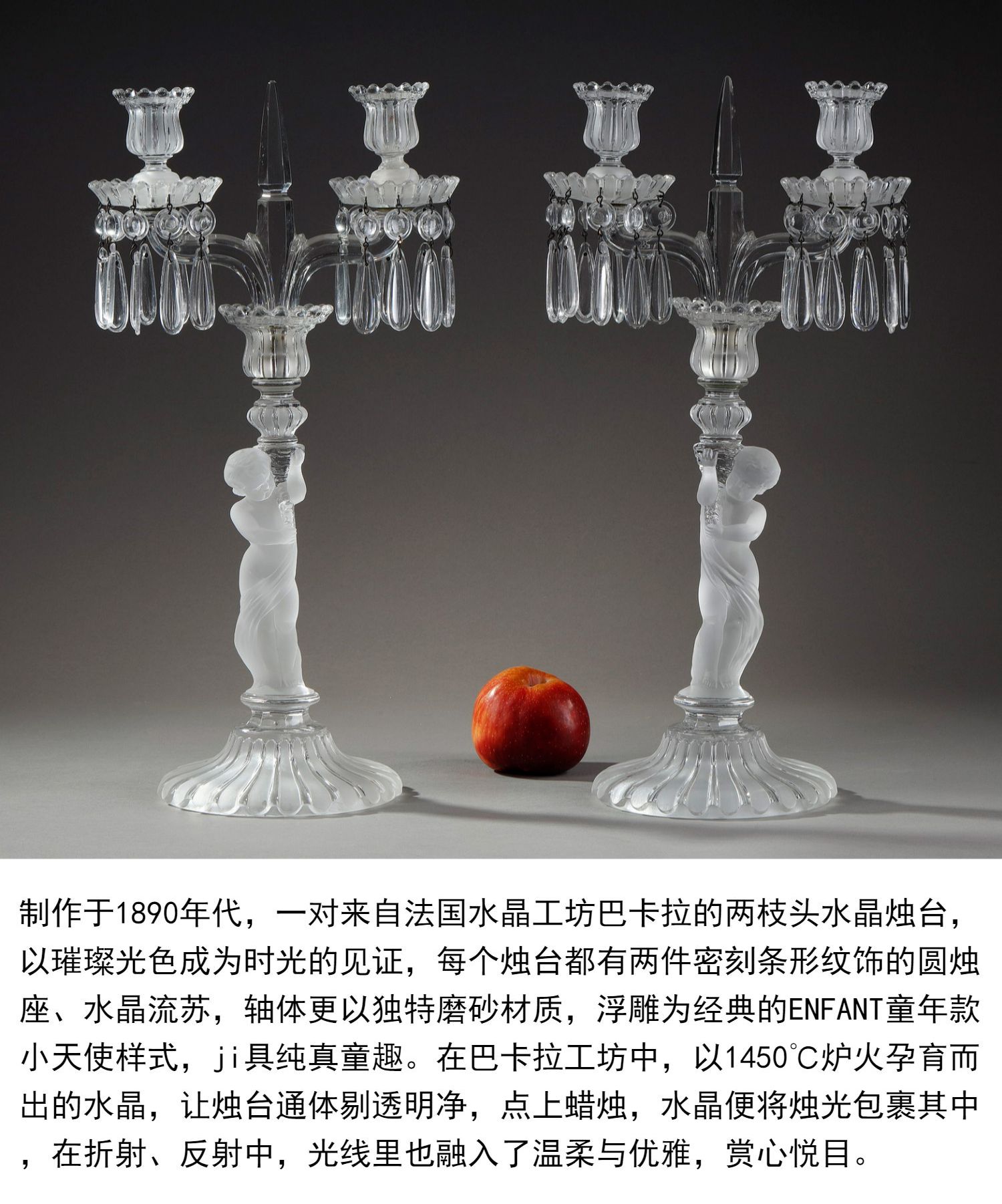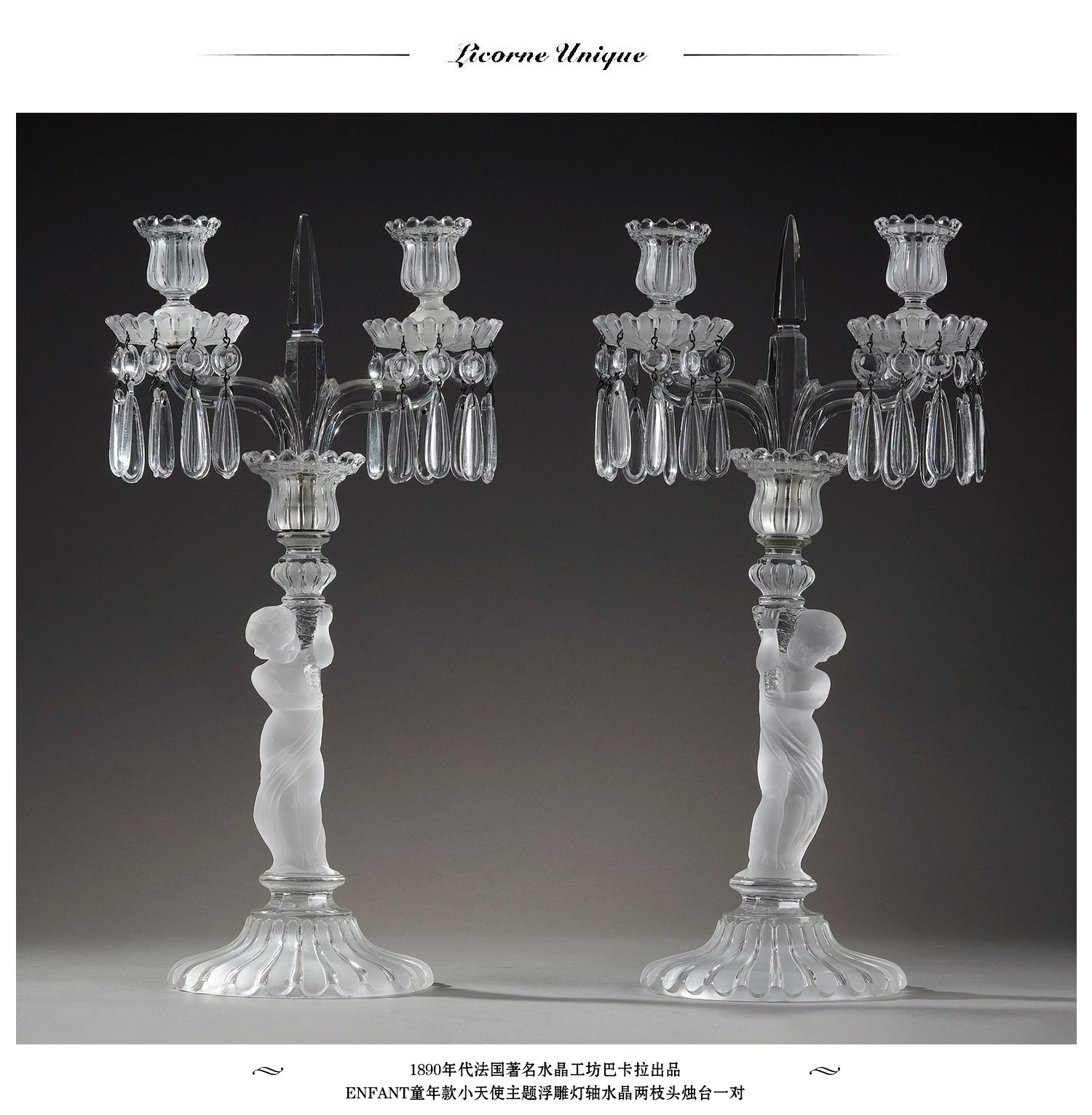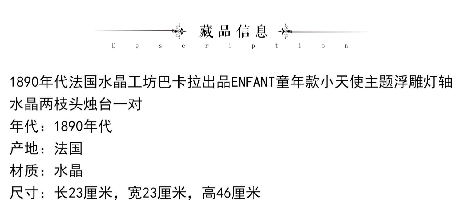 独角鹿西洋古董巴卡拉出品ENFANT童年款小天使浮雕灯轴水晶烛台