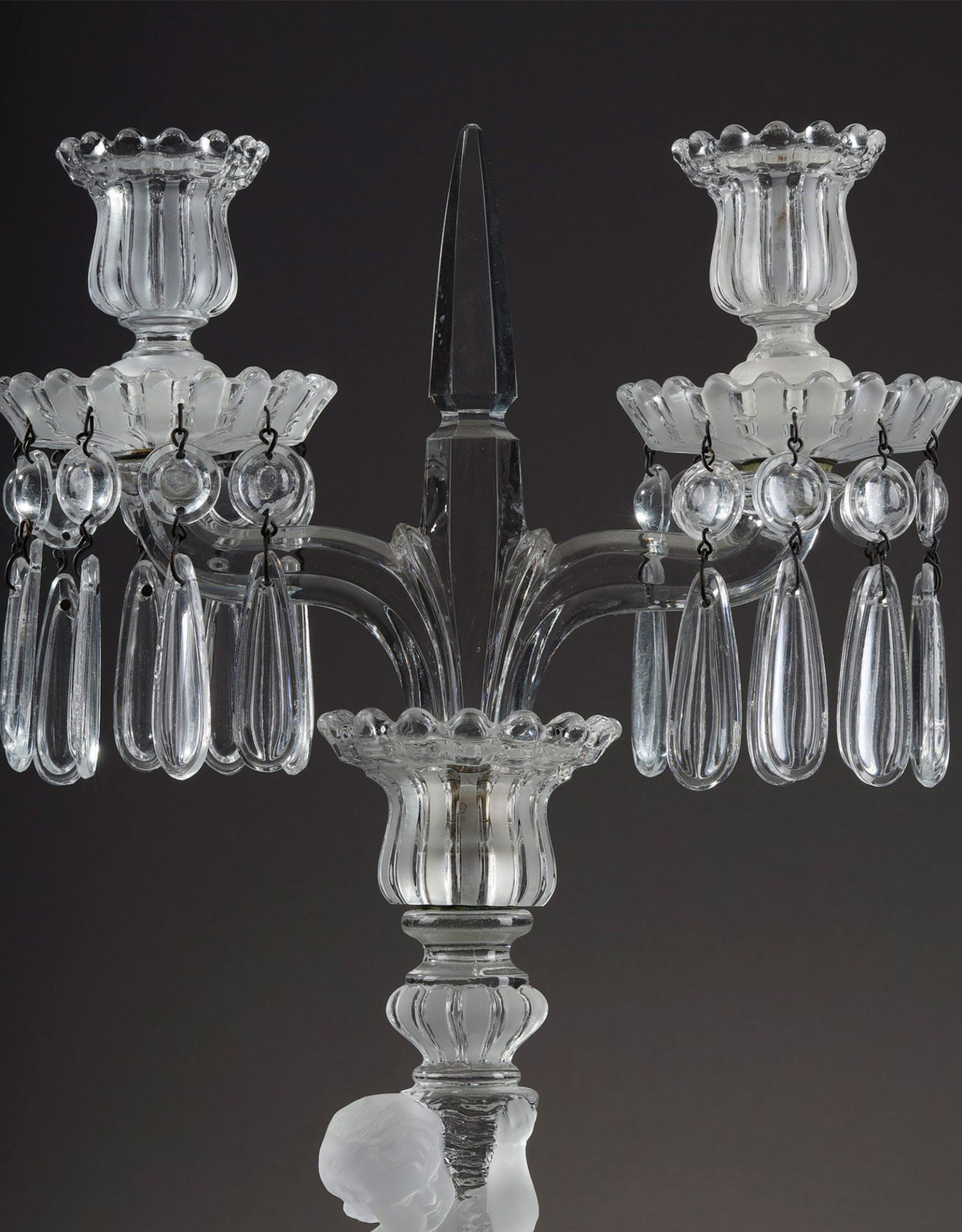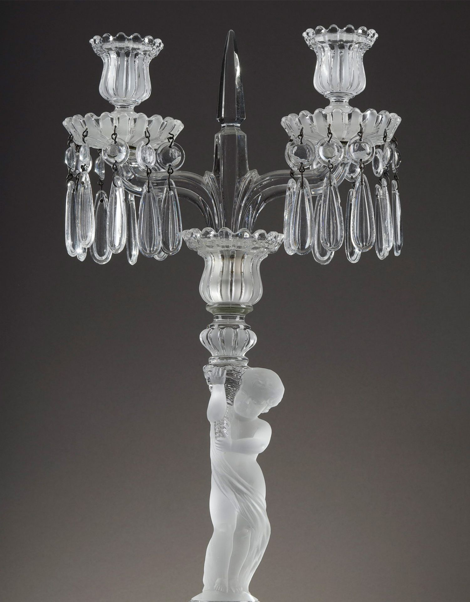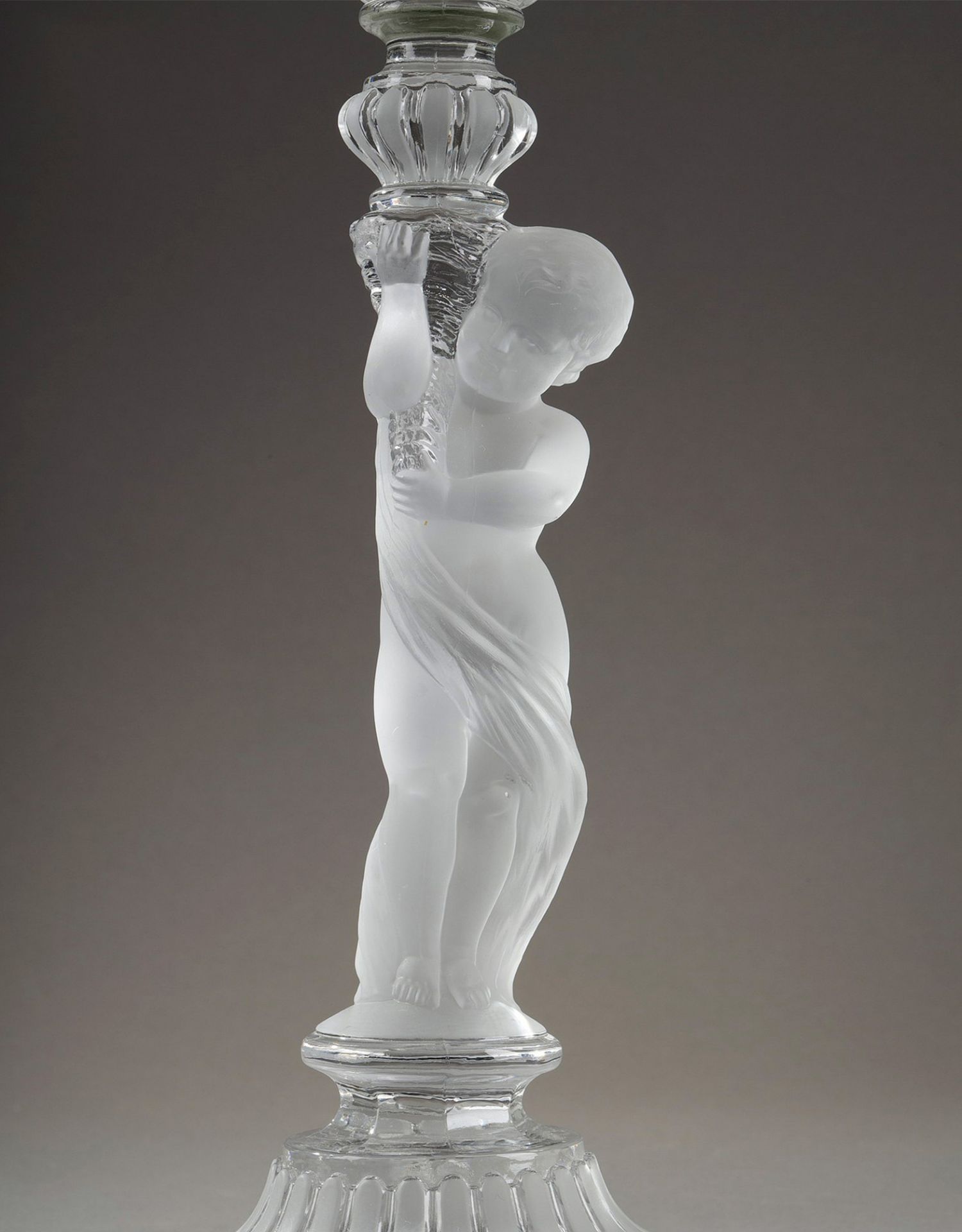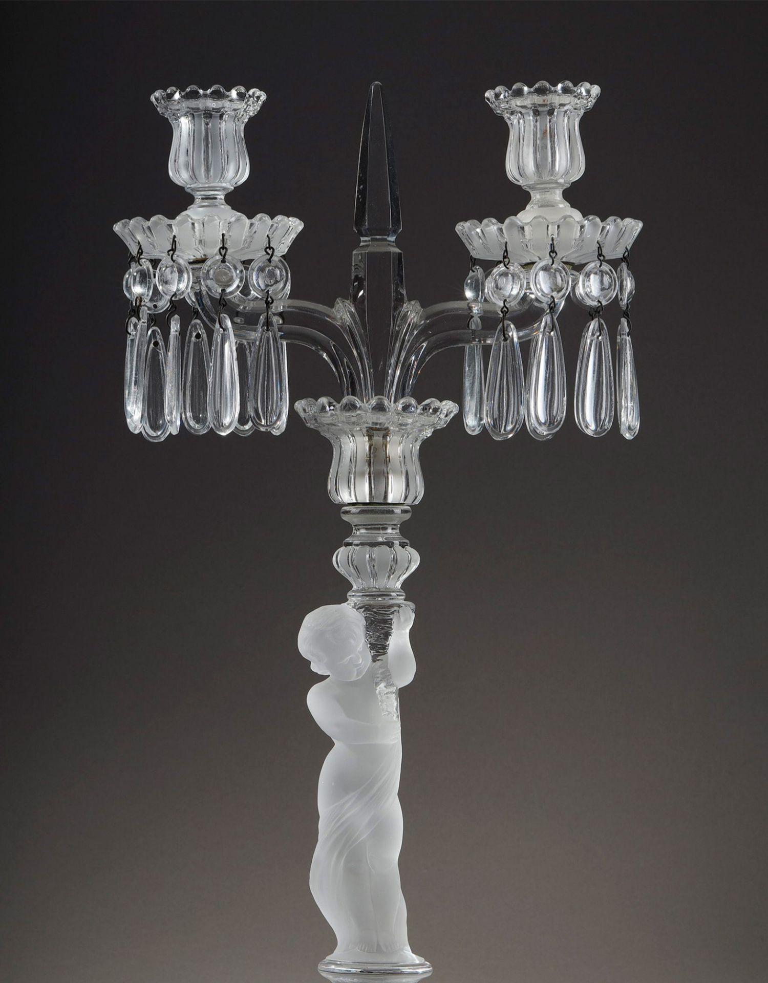 独角鹿西洋古董巴卡拉出品ENFANT童年款小天使浮雕灯轴水晶烛台