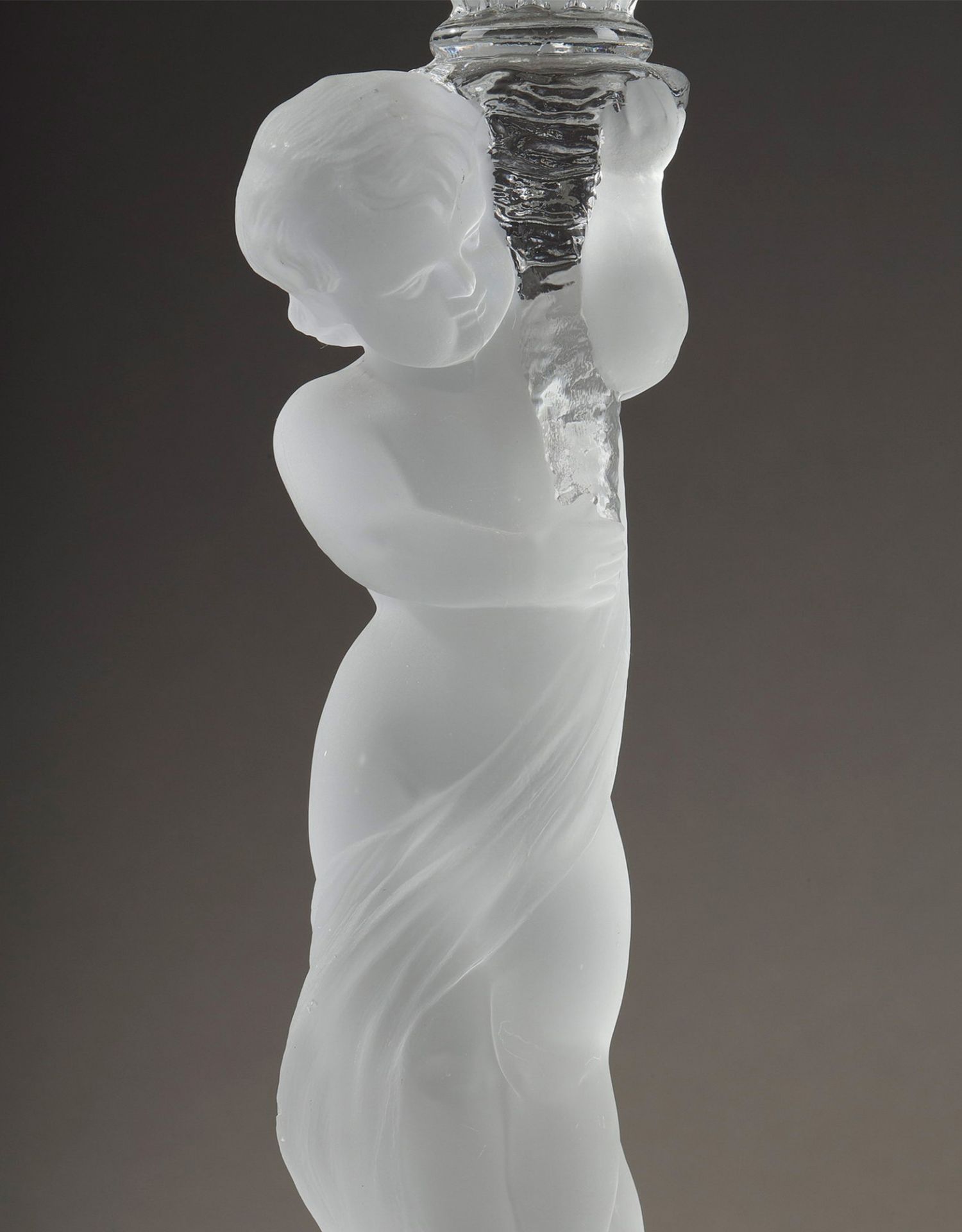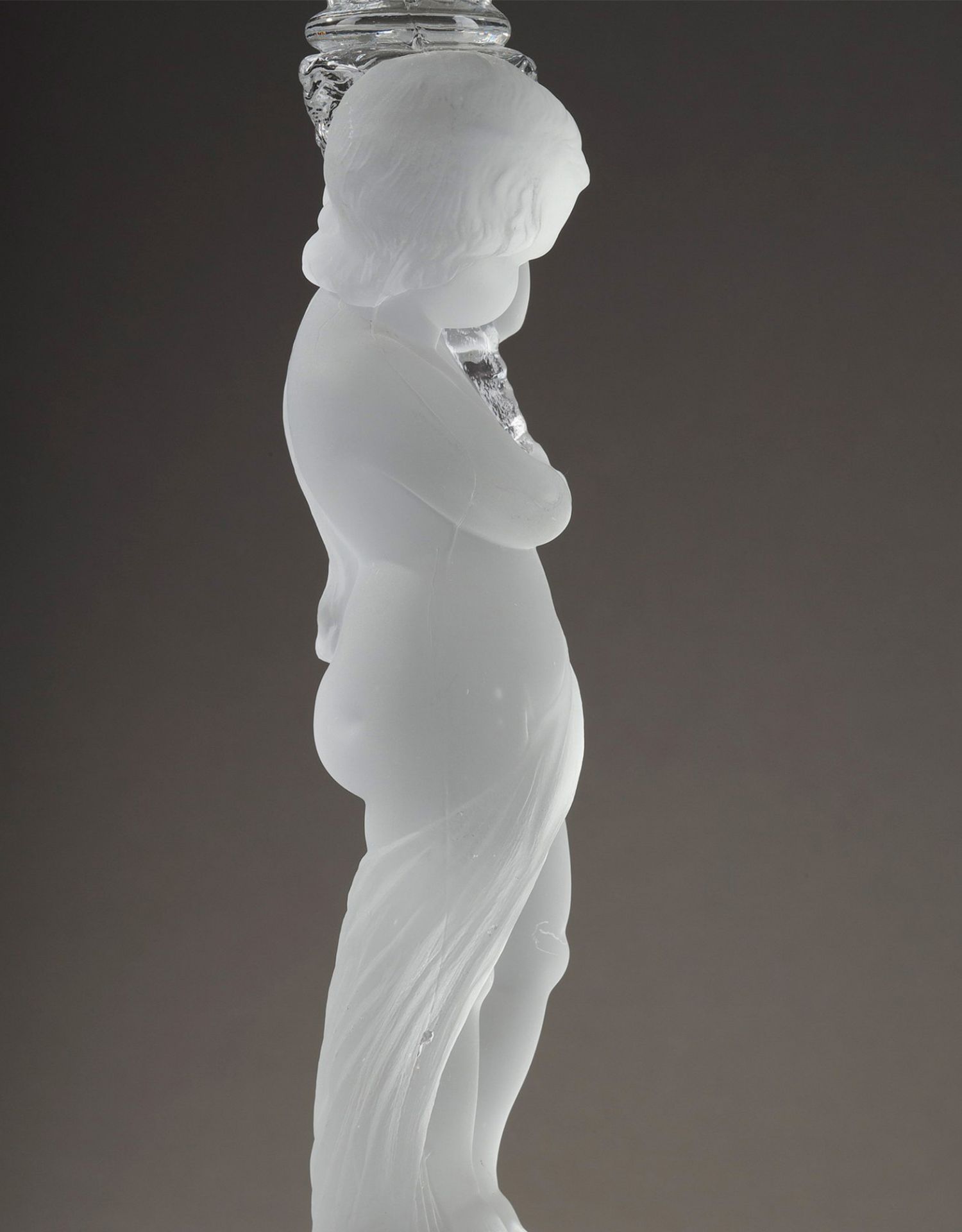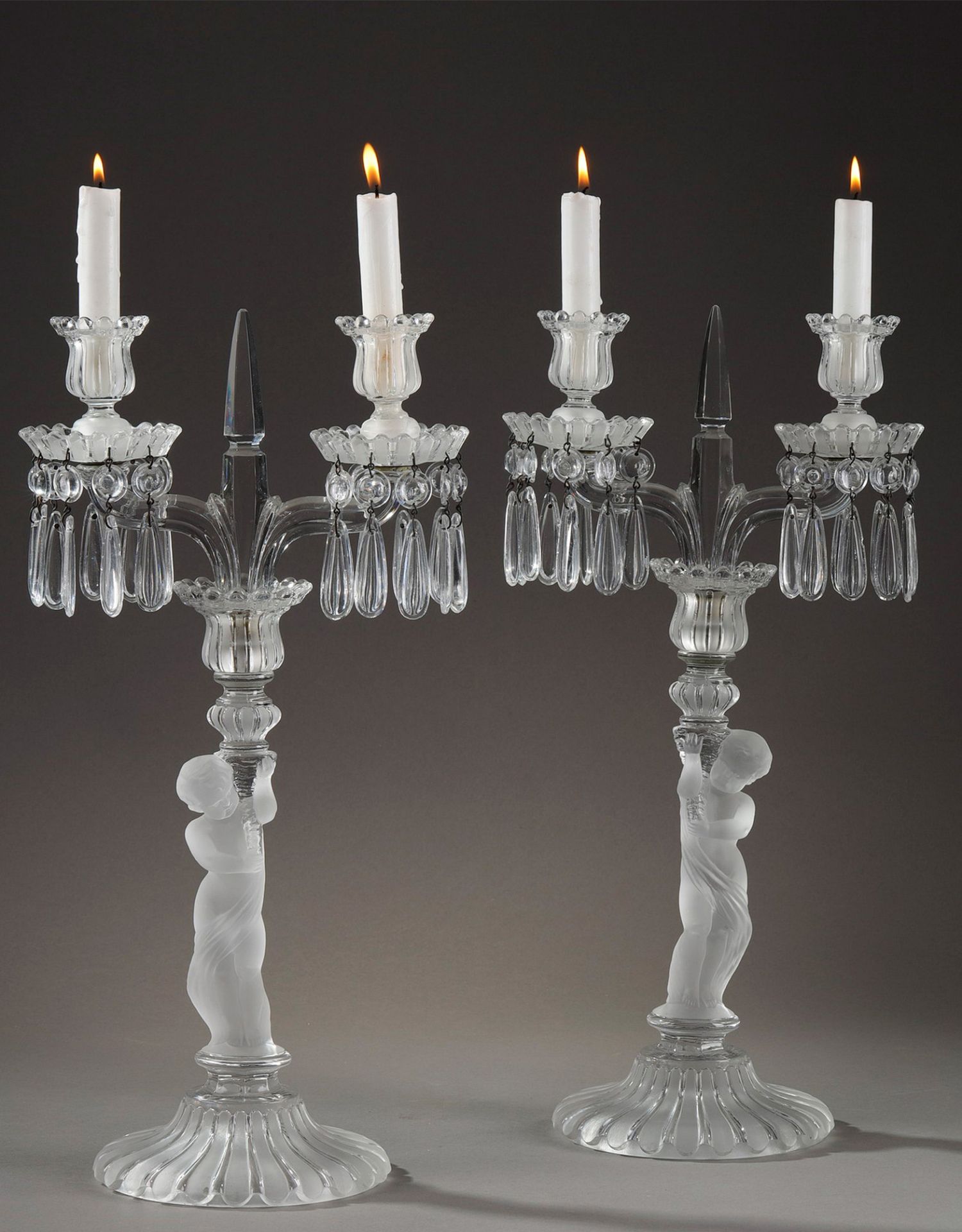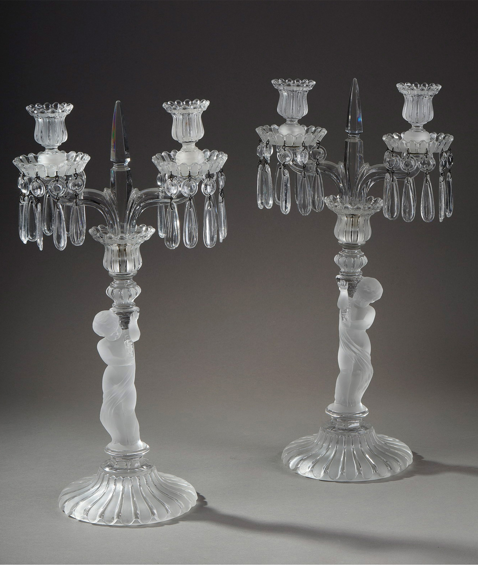 独角鹿西洋古董巴卡拉出品ENFANT童年款小天使浮雕灯轴水晶烛台