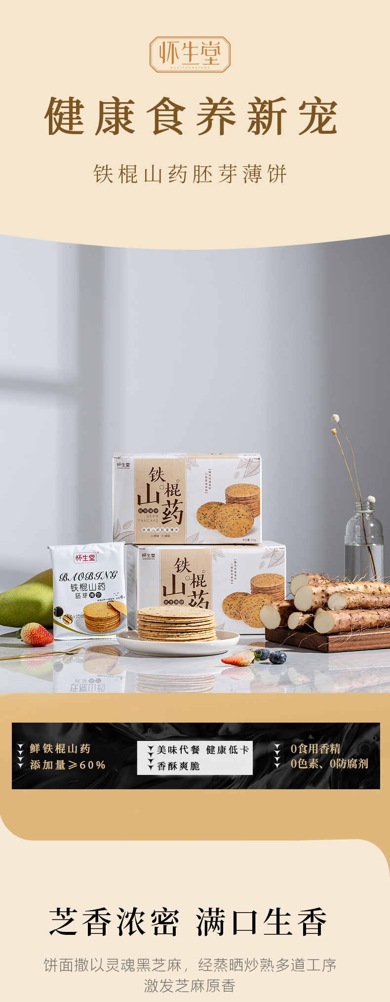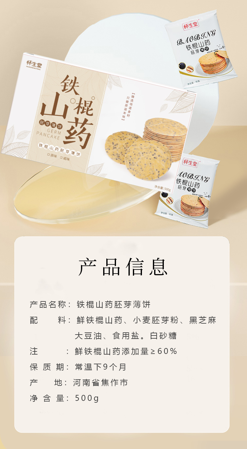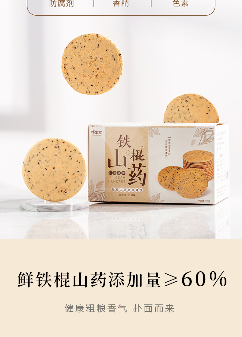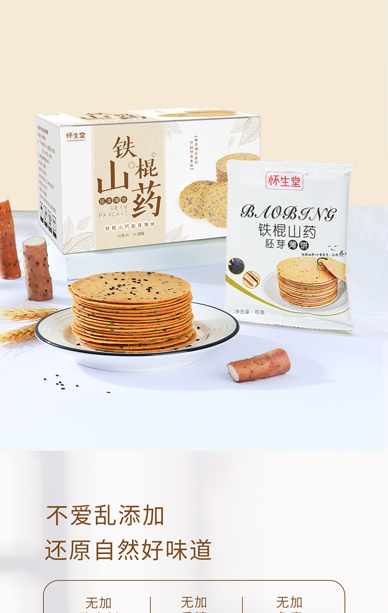叶开泰严选丨铁棍山药薄饼 口感香脆 健康美味 500g/盒