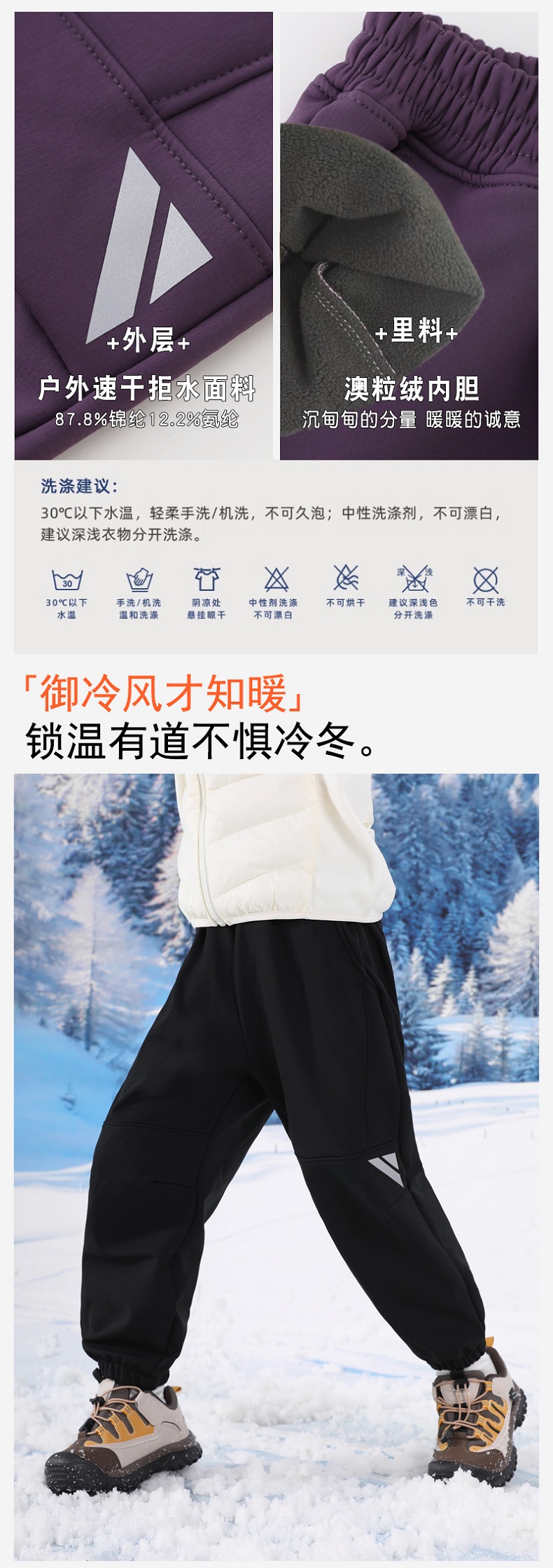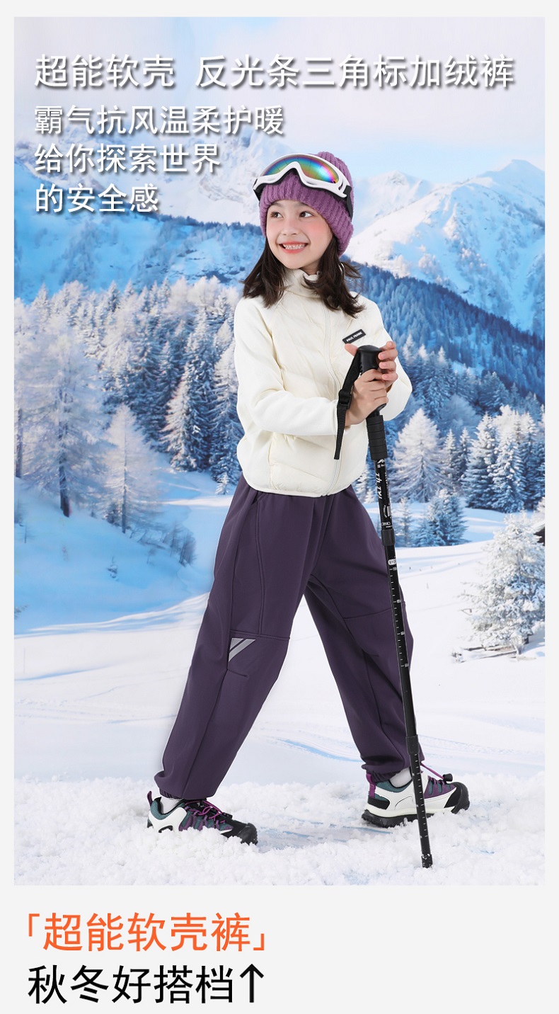 【抗风锁暖,一裤搞定】【户外运动,无惧严寒】秋冬新款儿童超能软壳裤中大童男女户外防风速干奥粒绒内里裤子100%