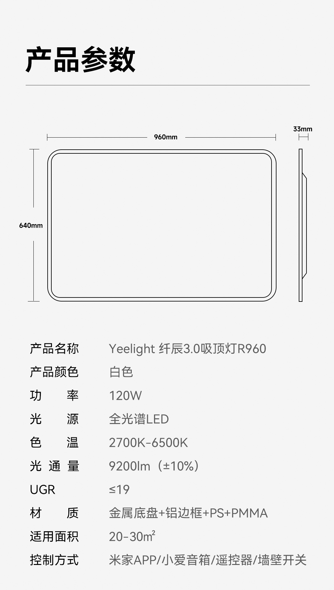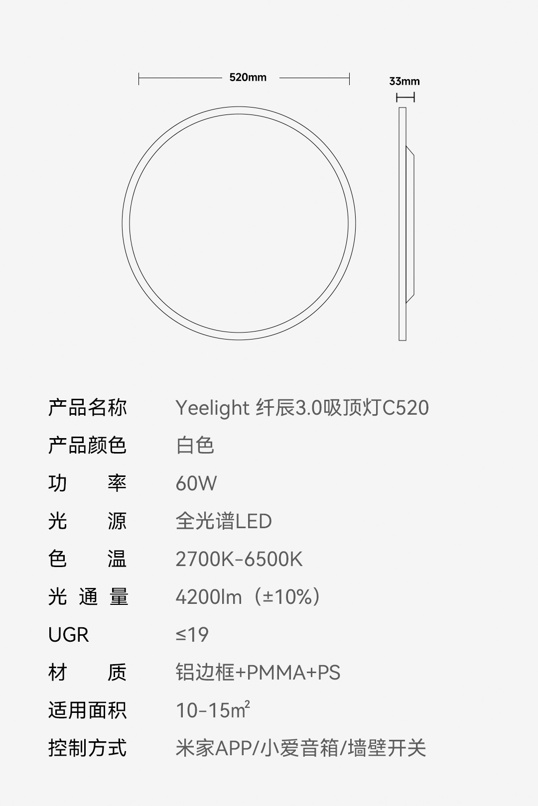 易来Yeelight全光谱护眼吸顶灯 纤辰3.0系列