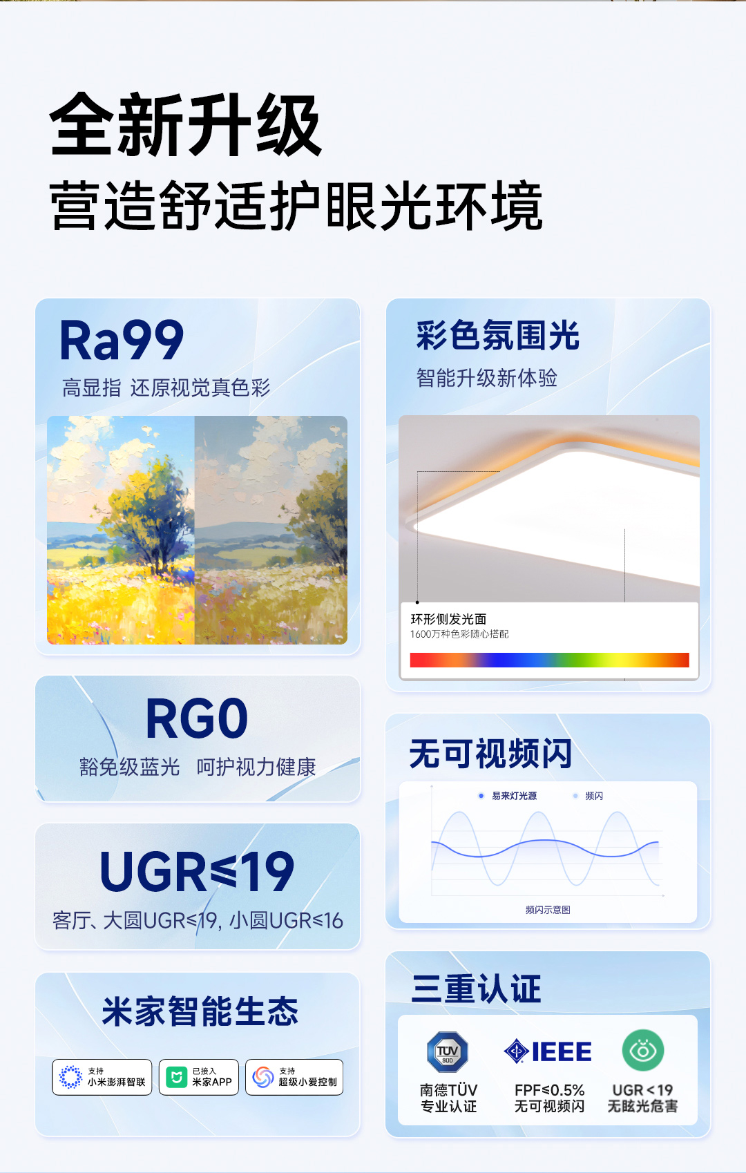 【Ra99高显色】客厅灯﹣功率120W/米家智控/眩光值 UGR <19