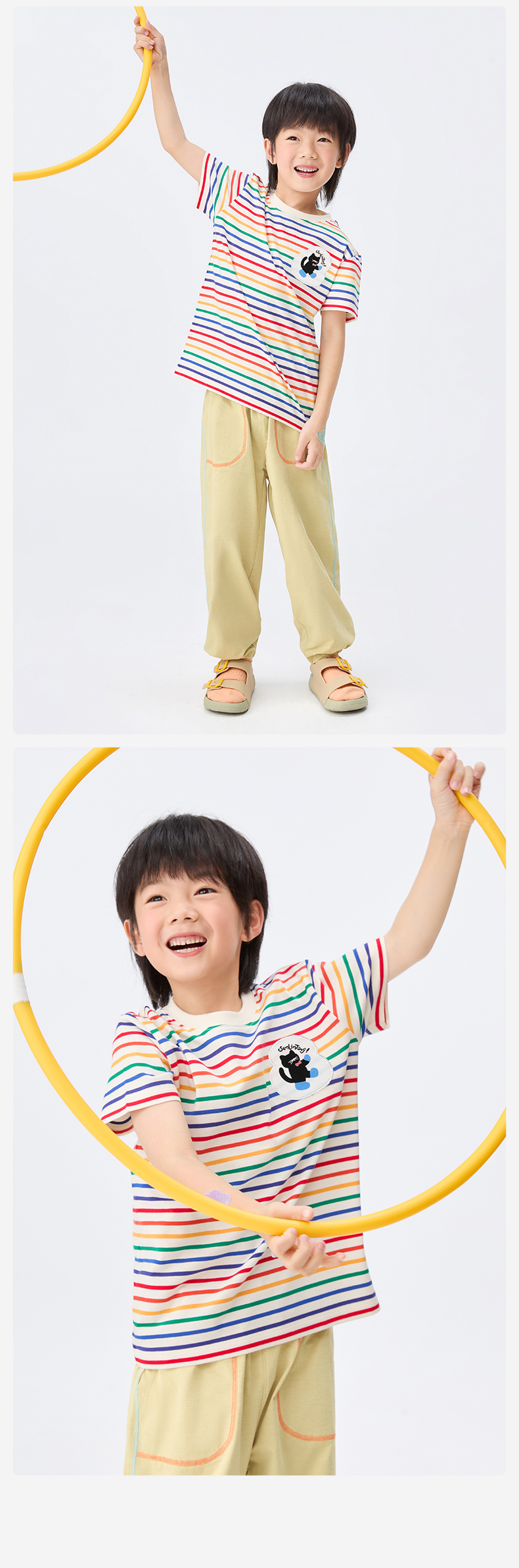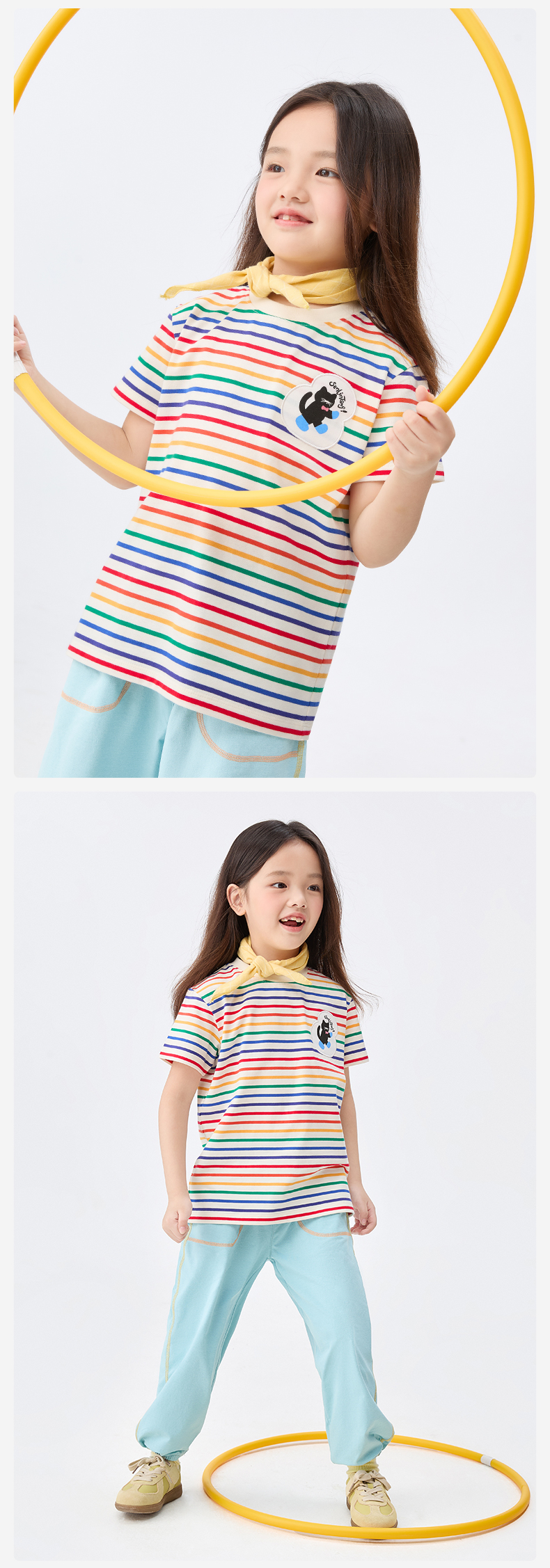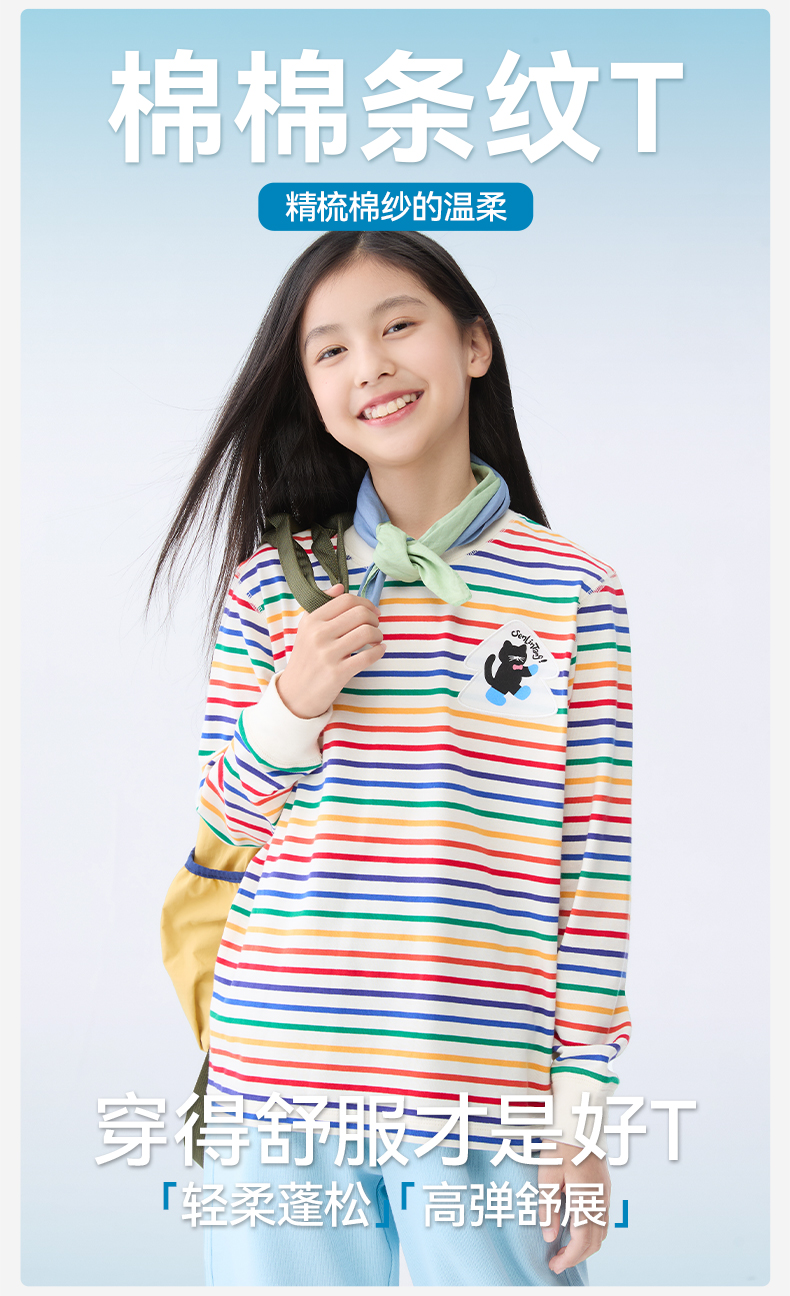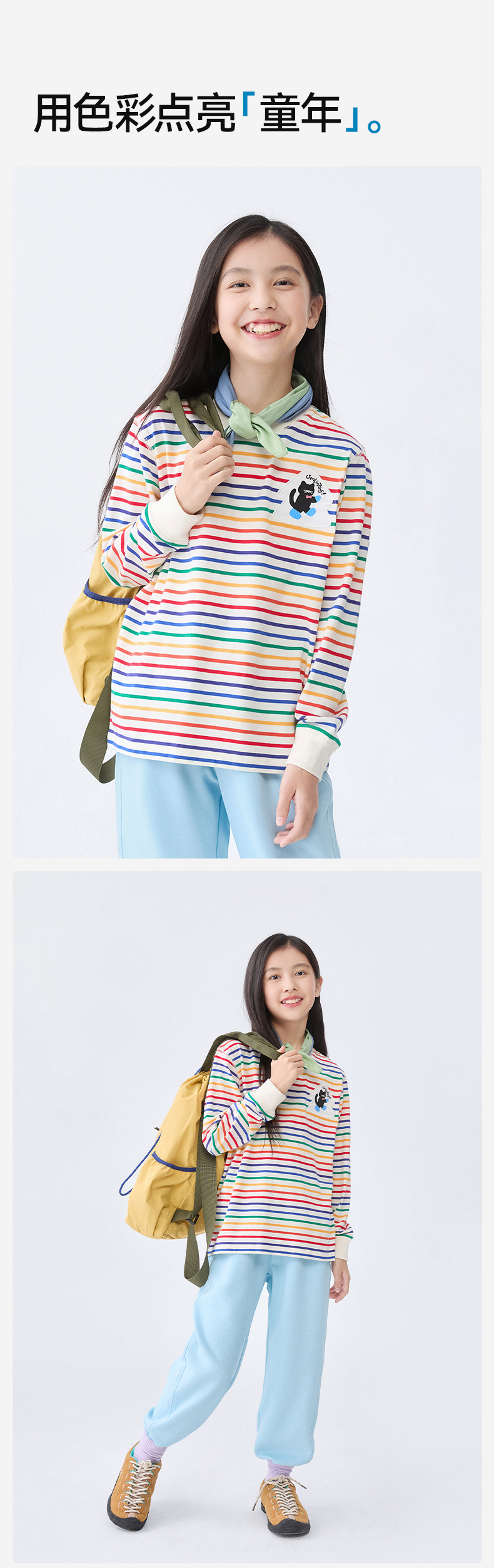 【彩虹条纹T恤】森林棠25秋款中小童棉棉条纹弹力圆领上衣20342520