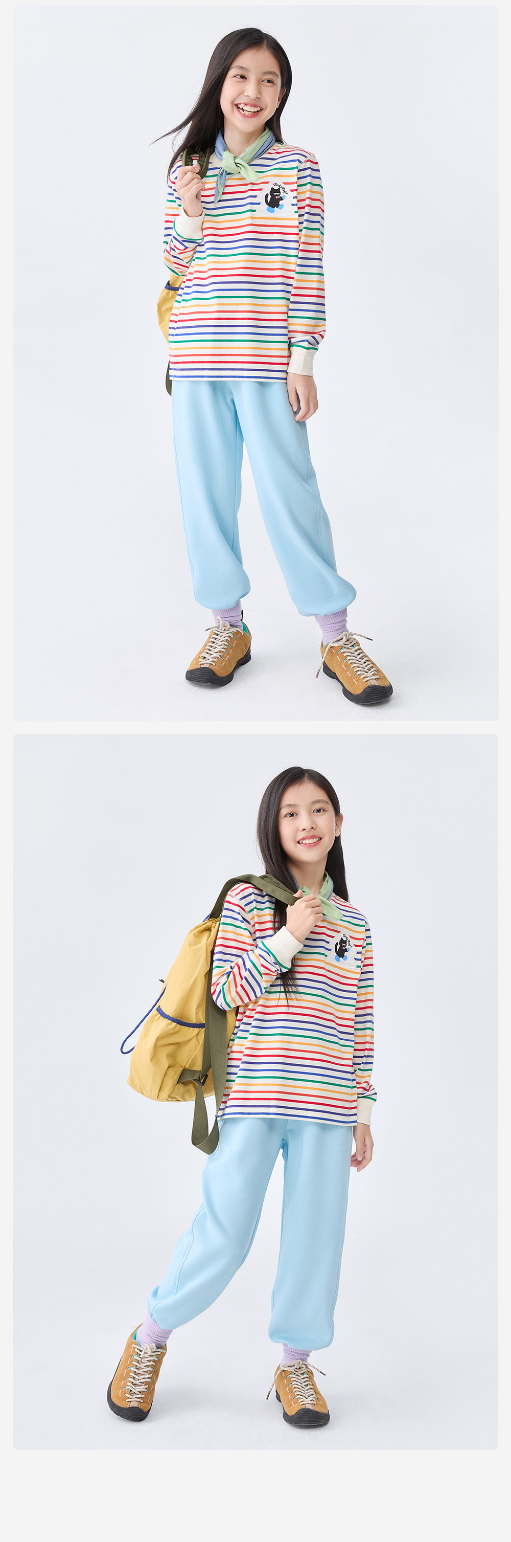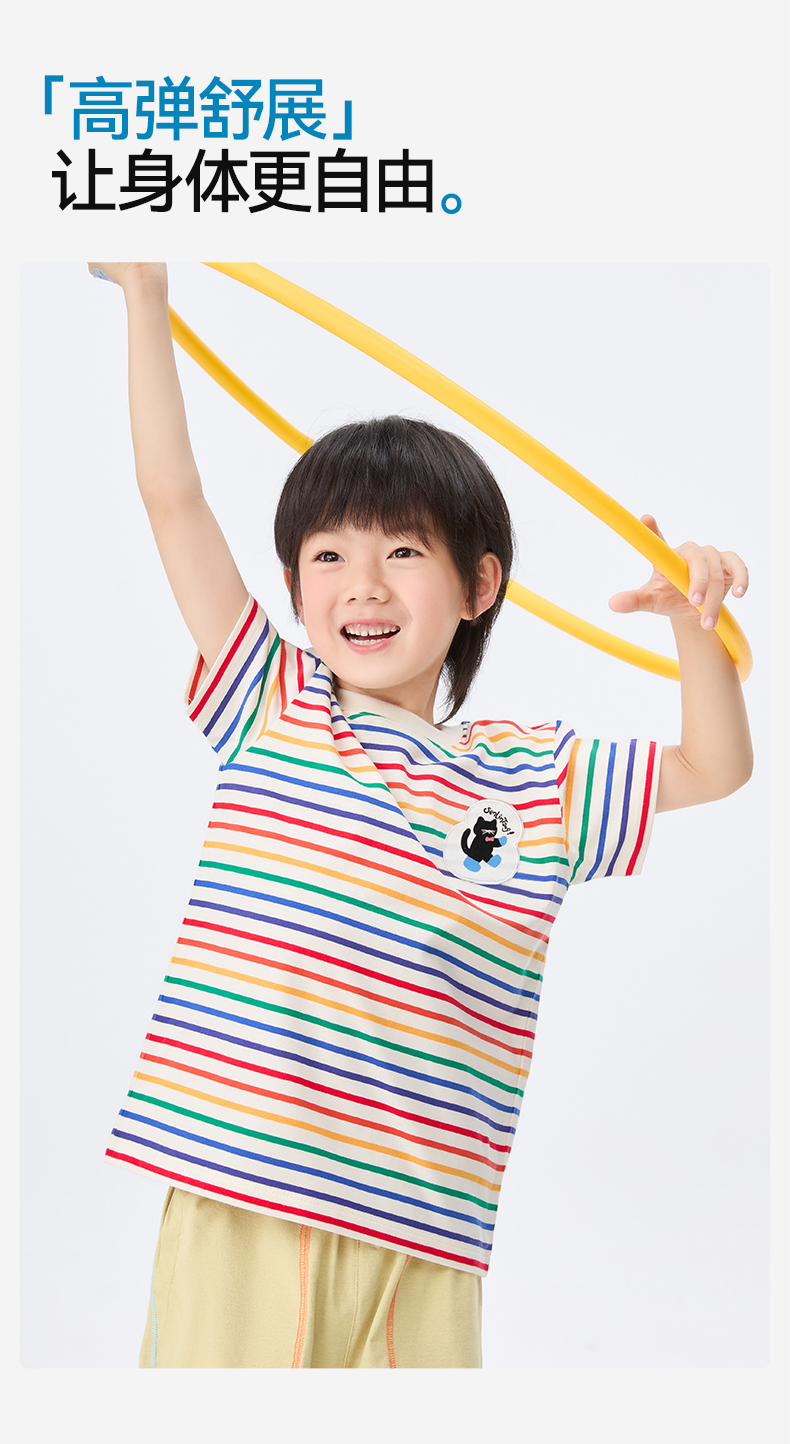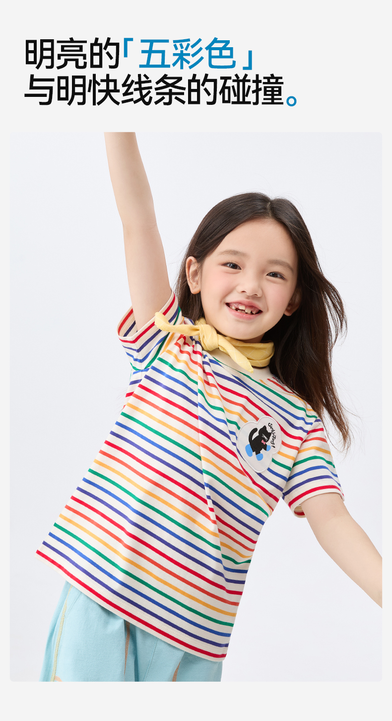 【彩虹条纹T恤】森林棠25秋款中小童棉棉条纹弹力圆领上衣20342520