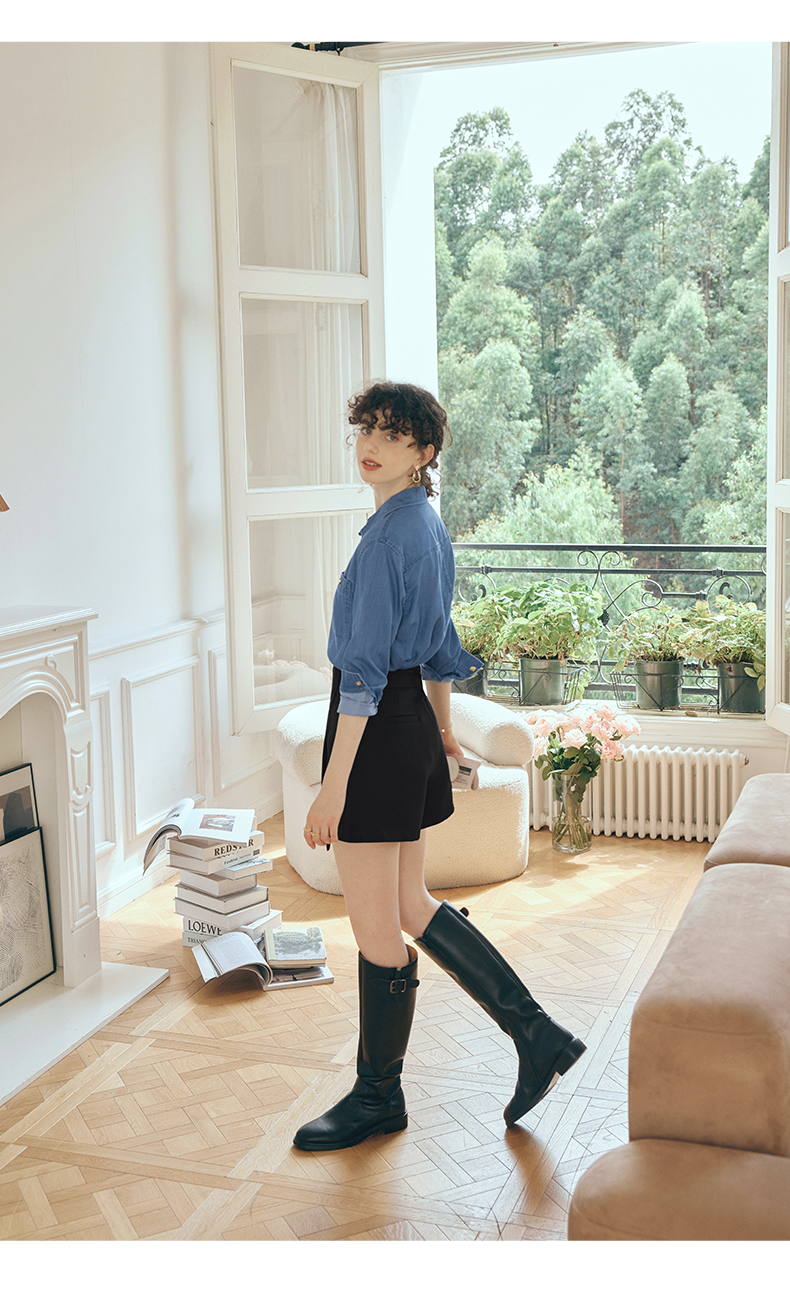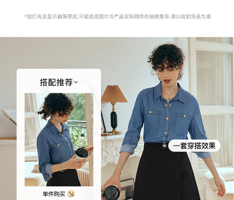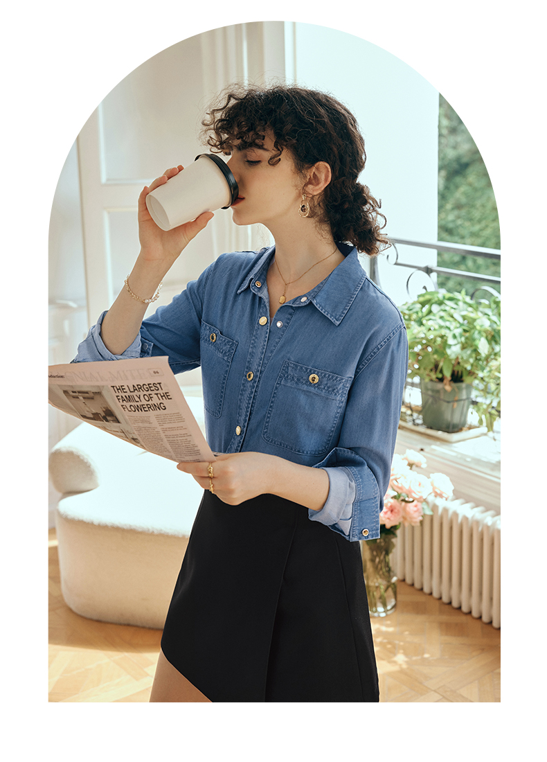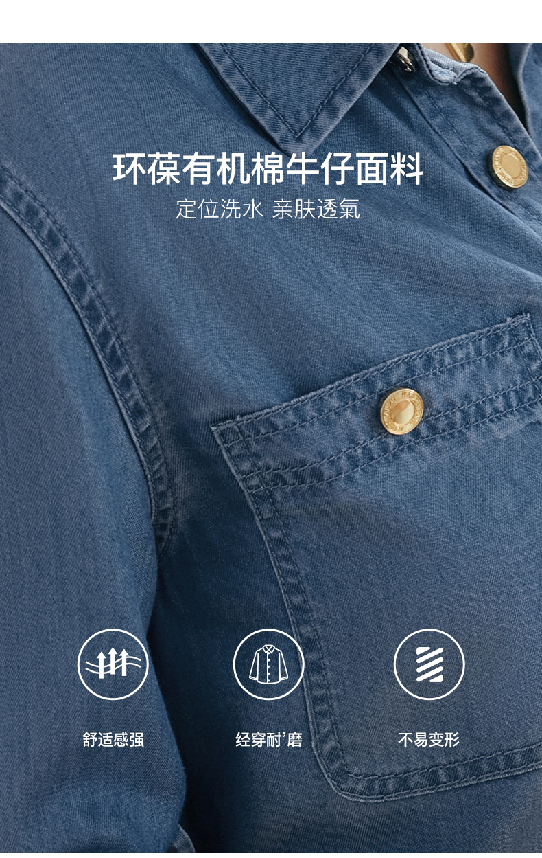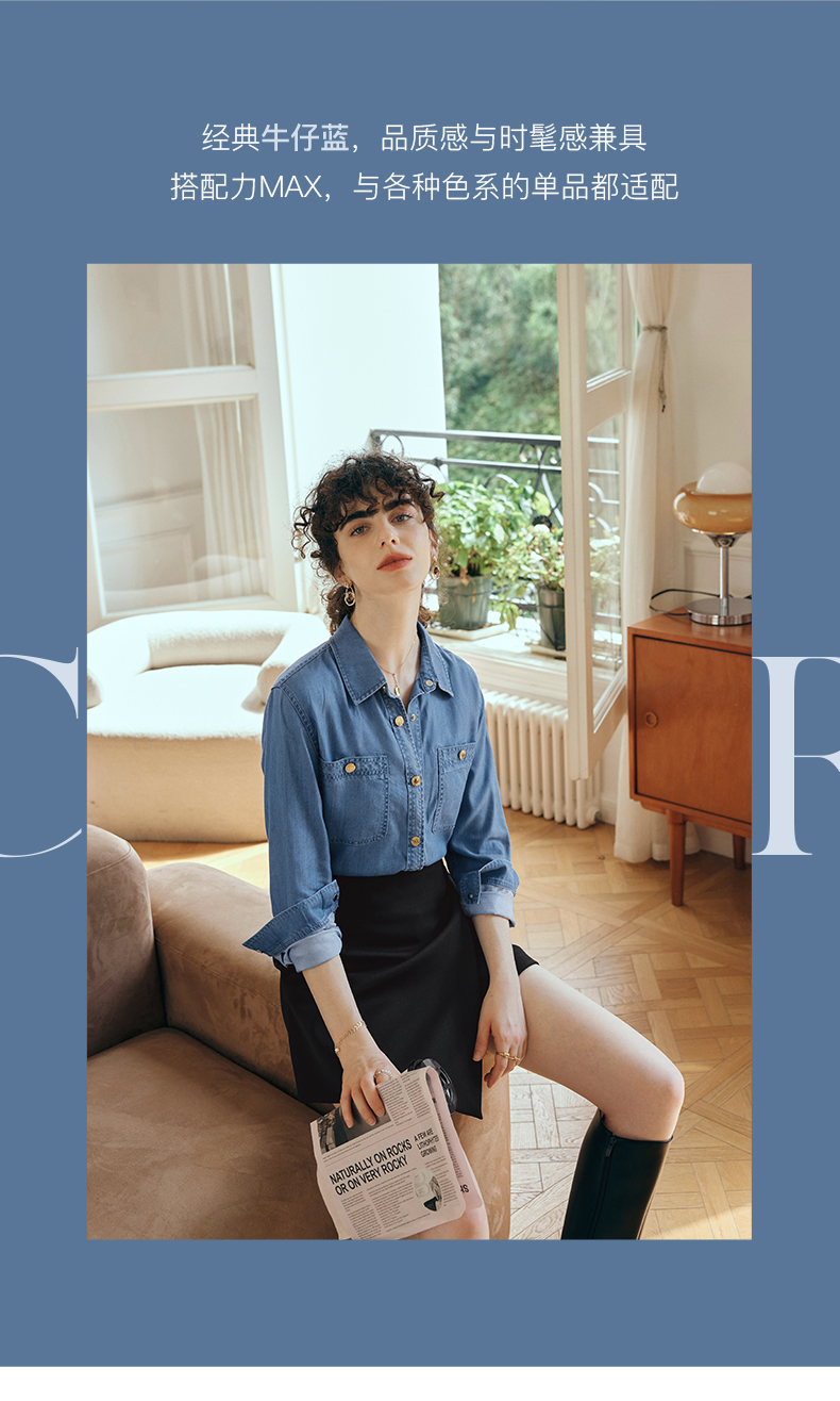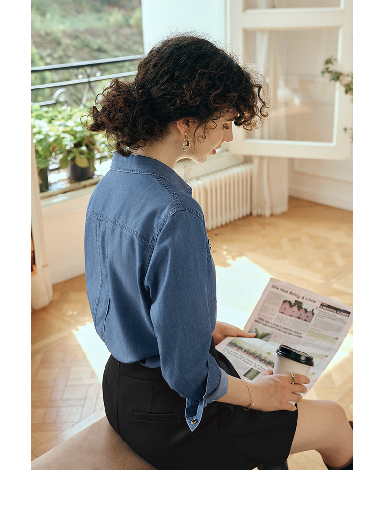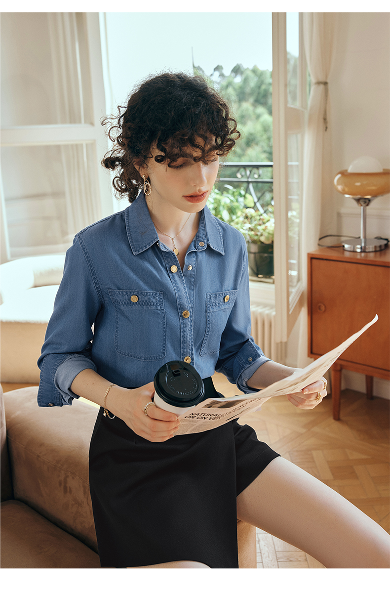 OLrain欧芮儿长袖牛仔衬衫女初秋2023年新款宽松时尚口袋休闲衬衣