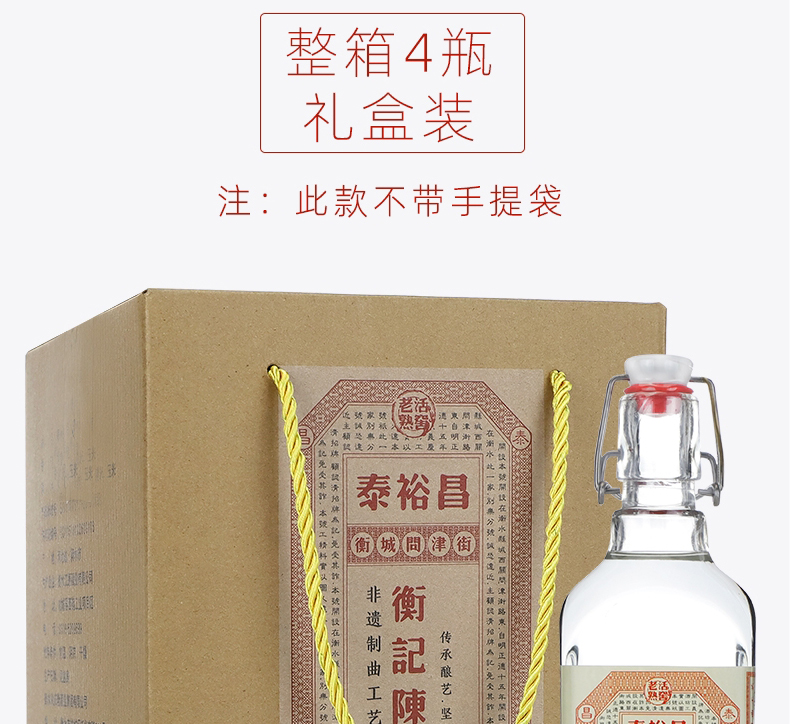 [衡记陈酒]52度-泰裕昌-光瓶装-浓香型白酒-500ml-4瓶整箱