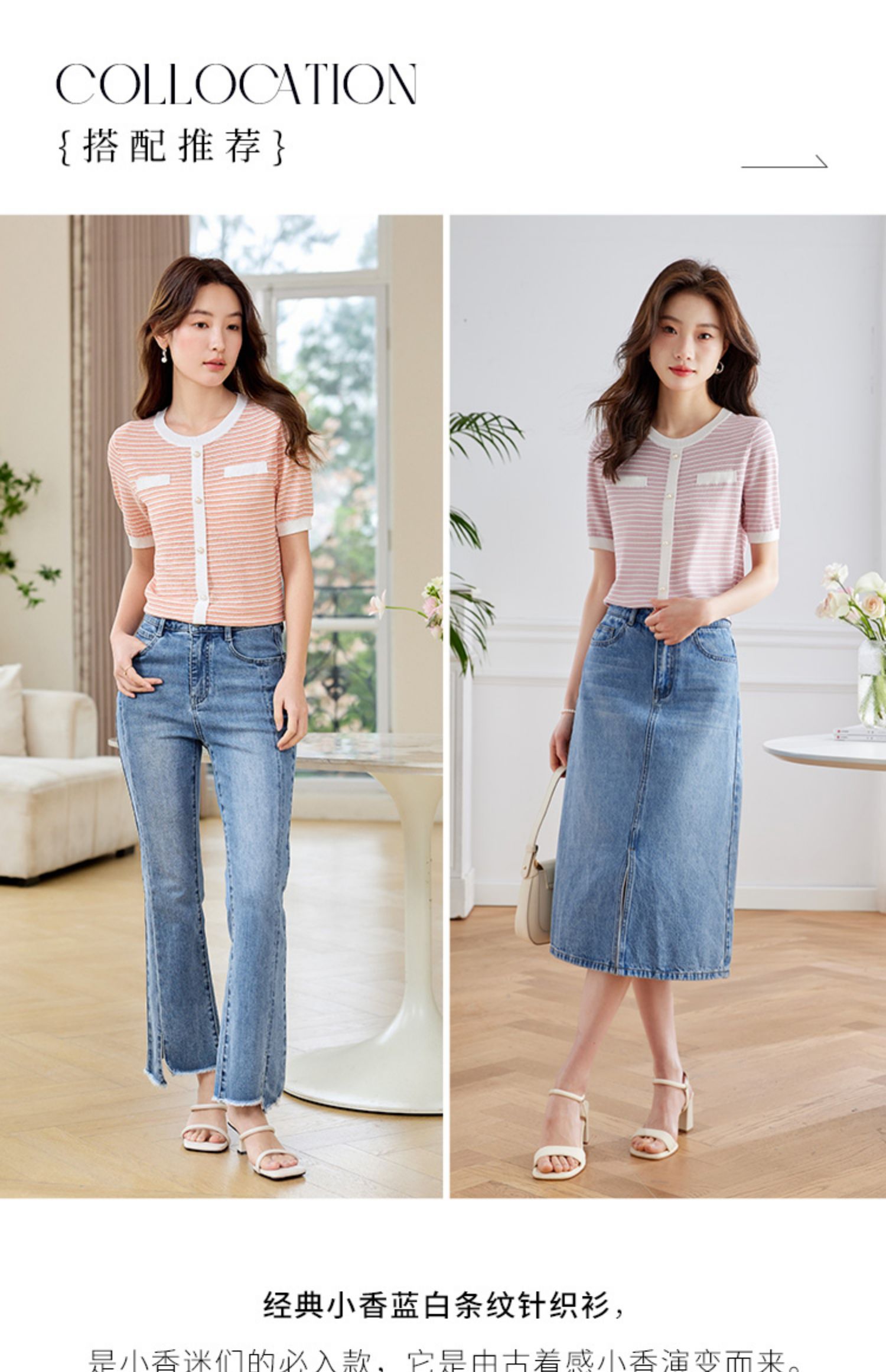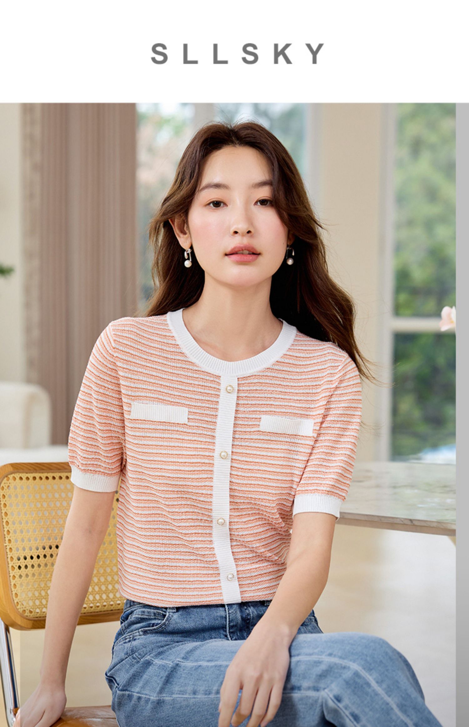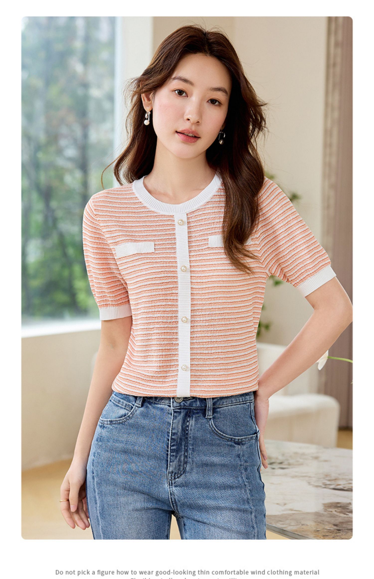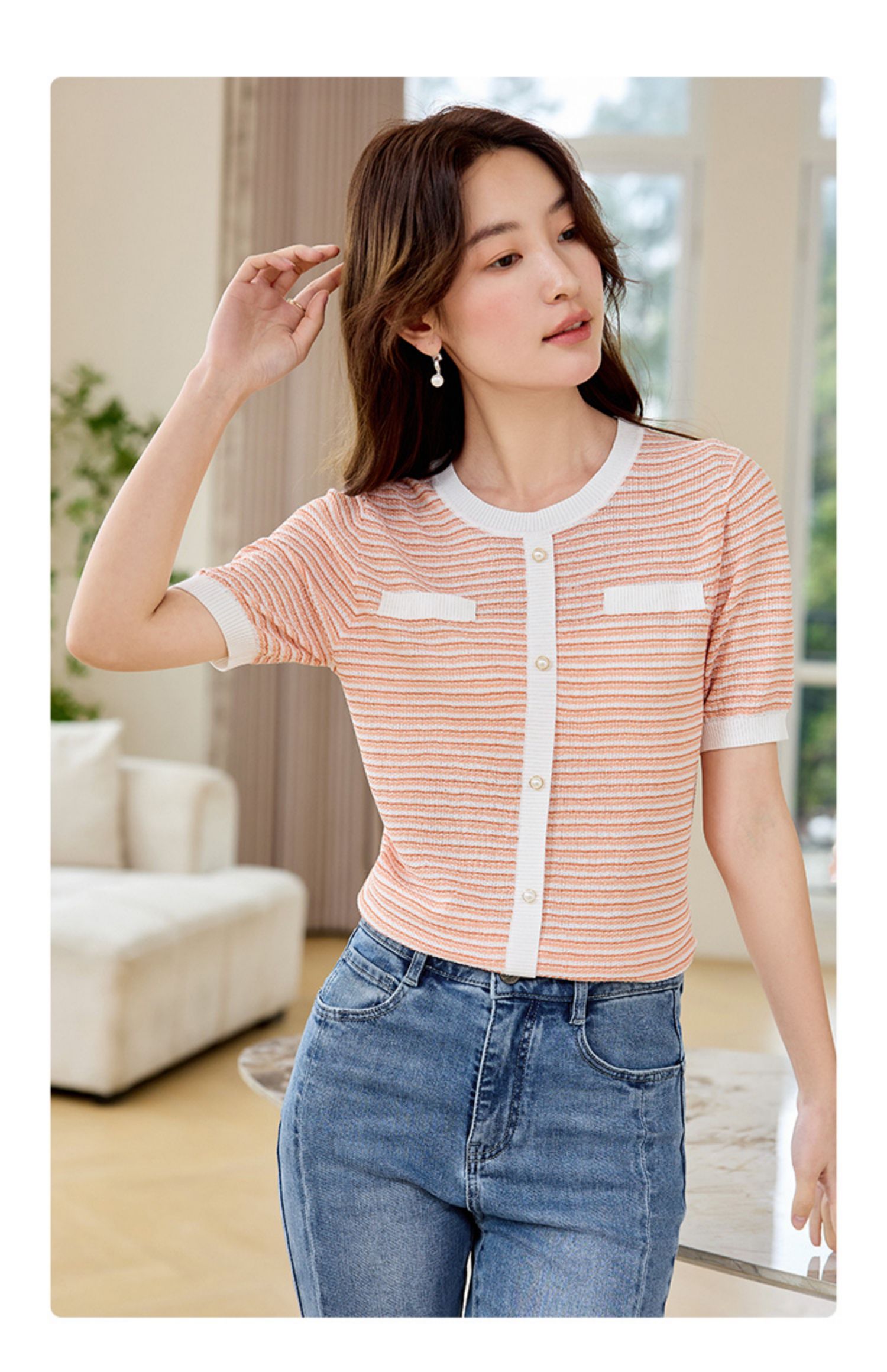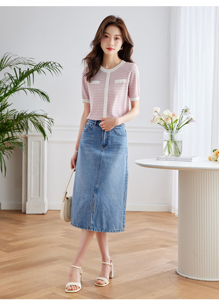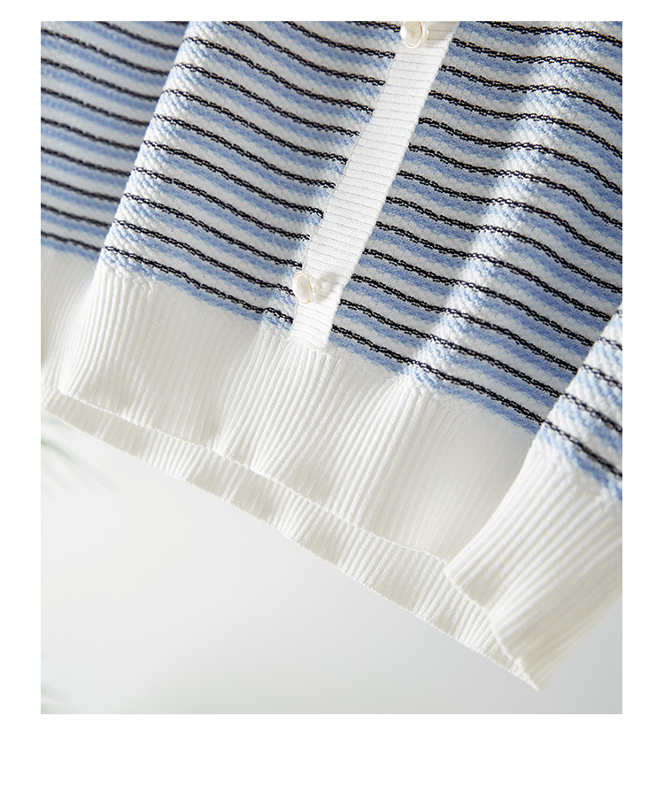 【专属特价】熙世界2025夏装新款小香风条纹针织衫薄款短袖宽松显瘦冰丝上衣
