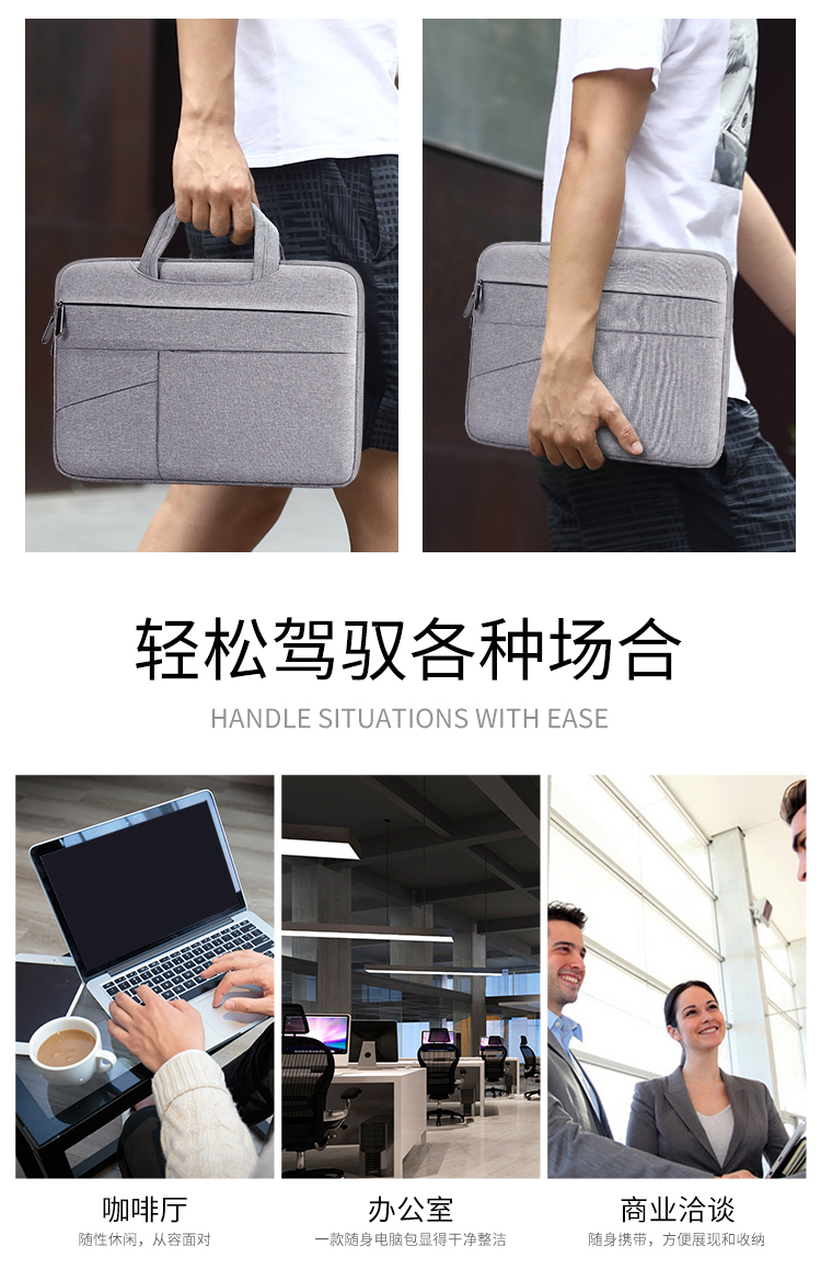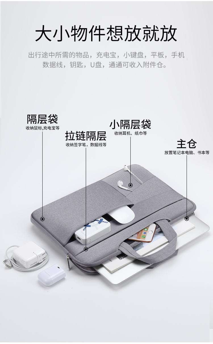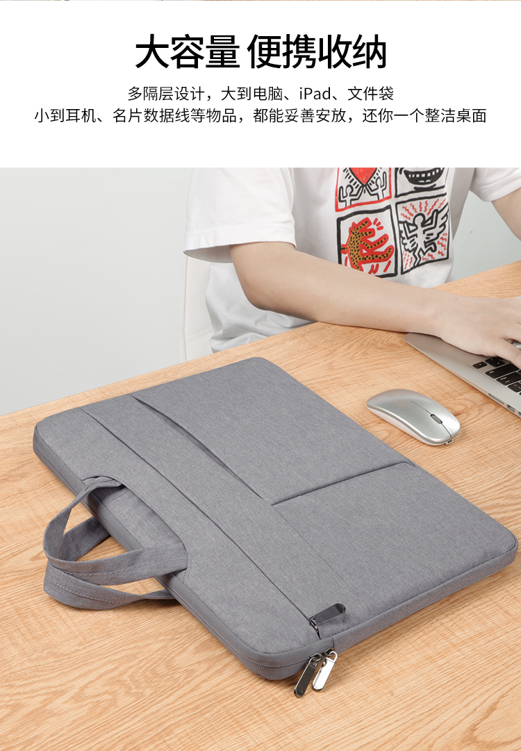 BUBM 苹果小米联想14英寸笔记本电脑包女手提商务内胆包男华硕戴尔保护套薄公文FMBT 灰色 15.6英寸