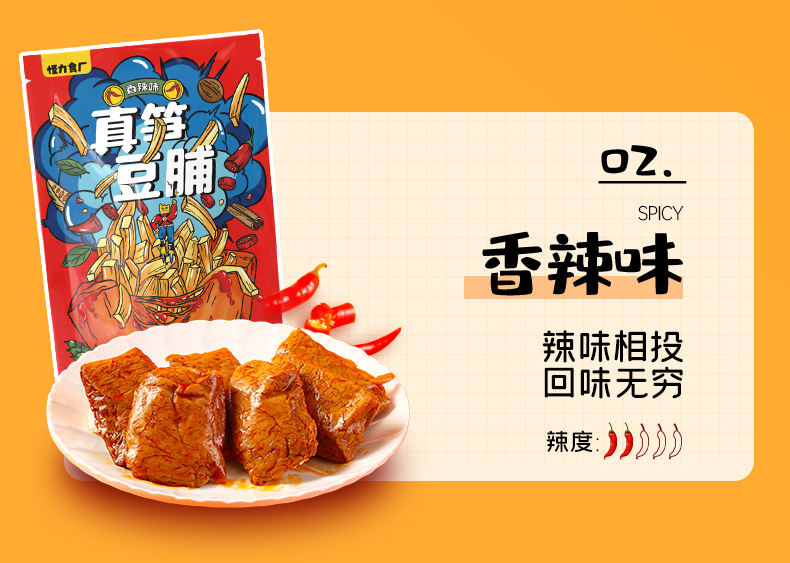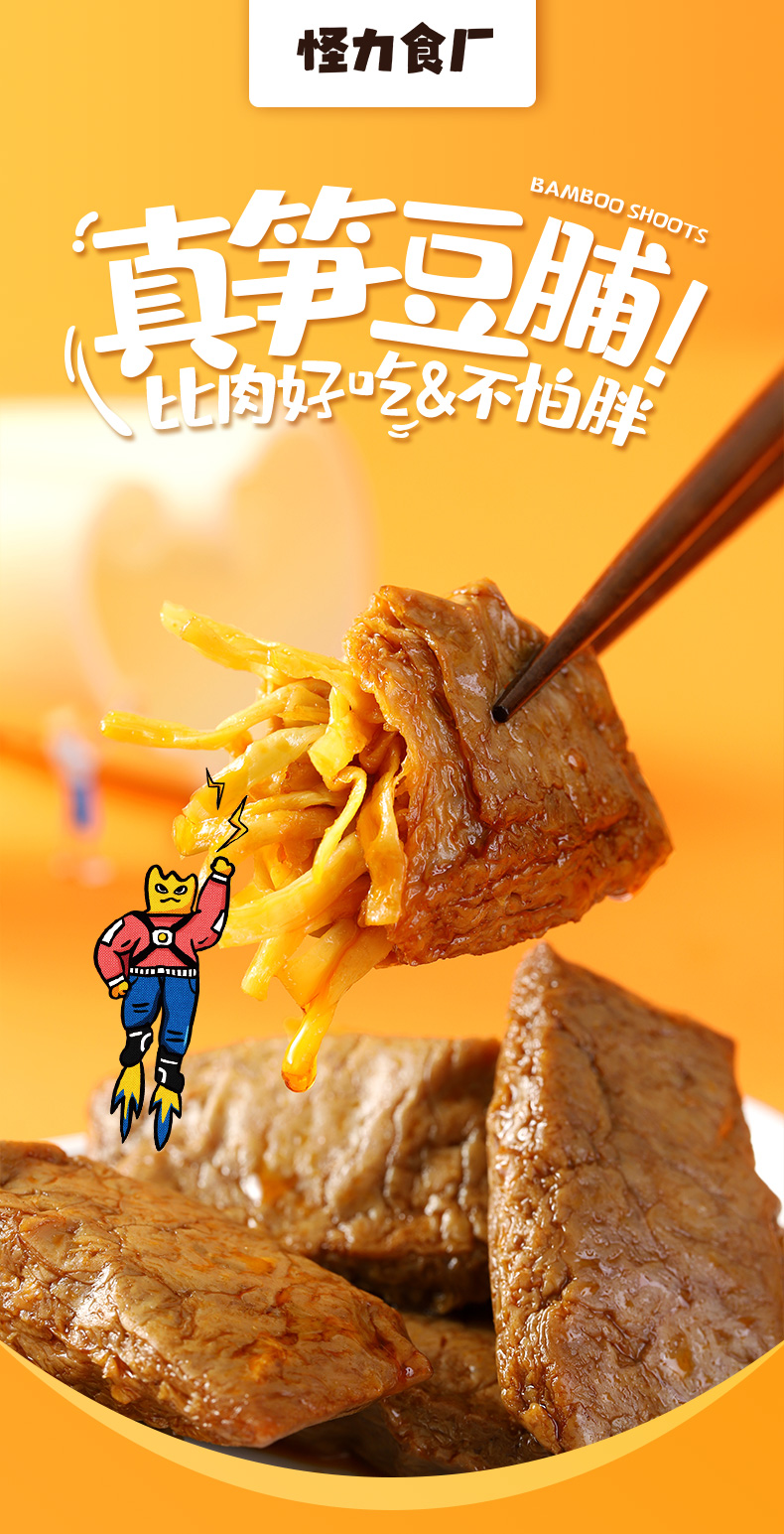 怪力食厂真笋豆脯 夹笋豆脯 大豆拉丝优质蛋白 7个豆脯1斤笋 爽脆水灵有嚼劲 多种口味1袋5小包