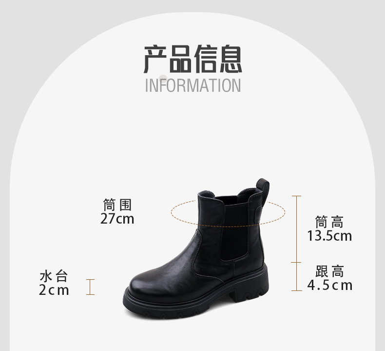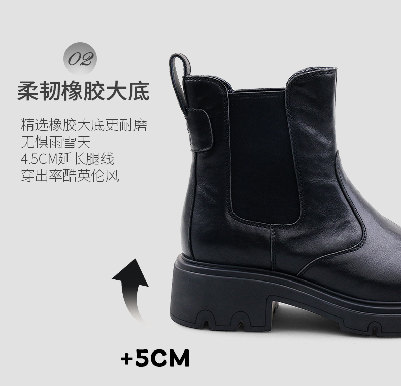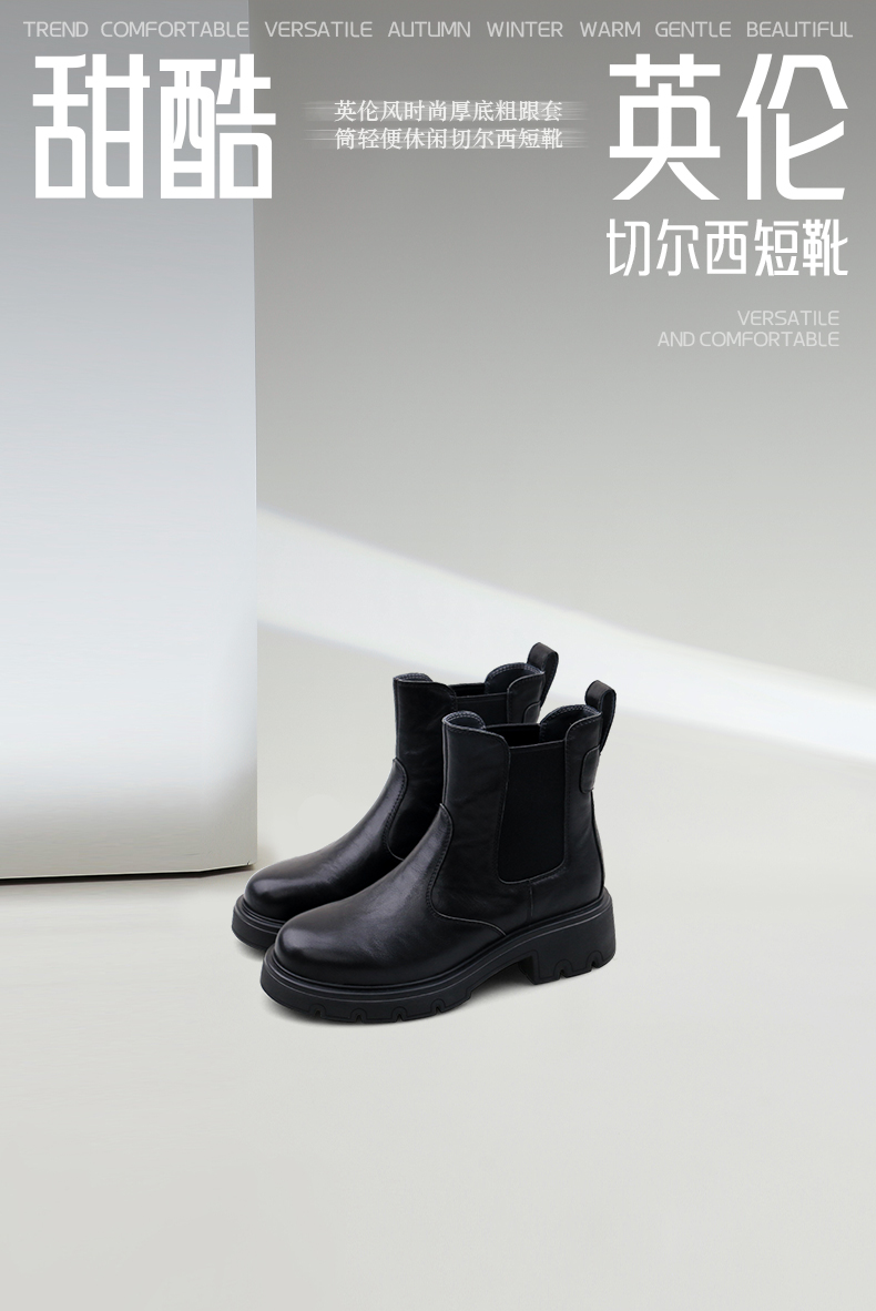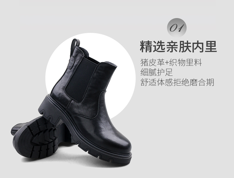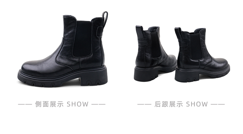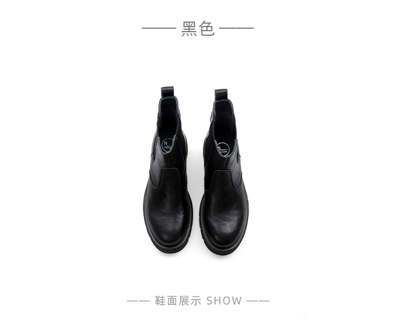 Safiya/索菲娅2024冬英伦风真皮时尚厚底粗跟套筒轻便休闲切尔西短靴 SF44116146