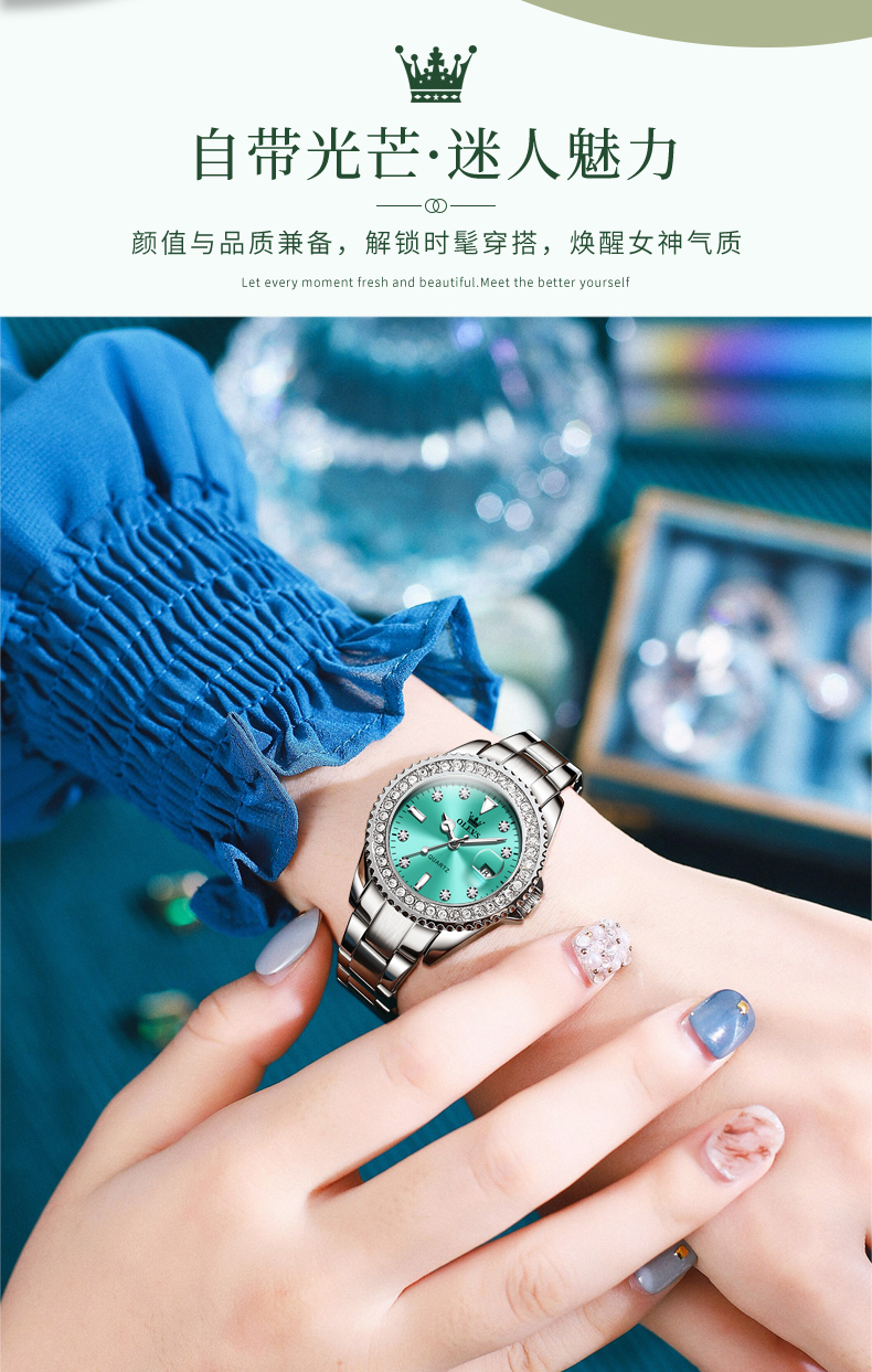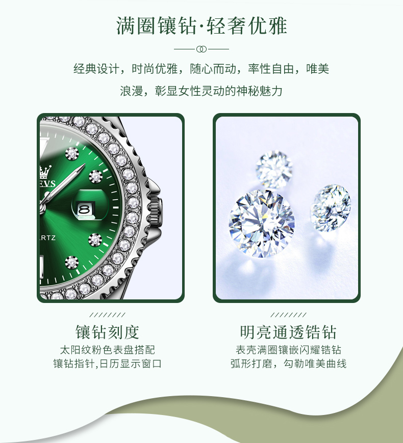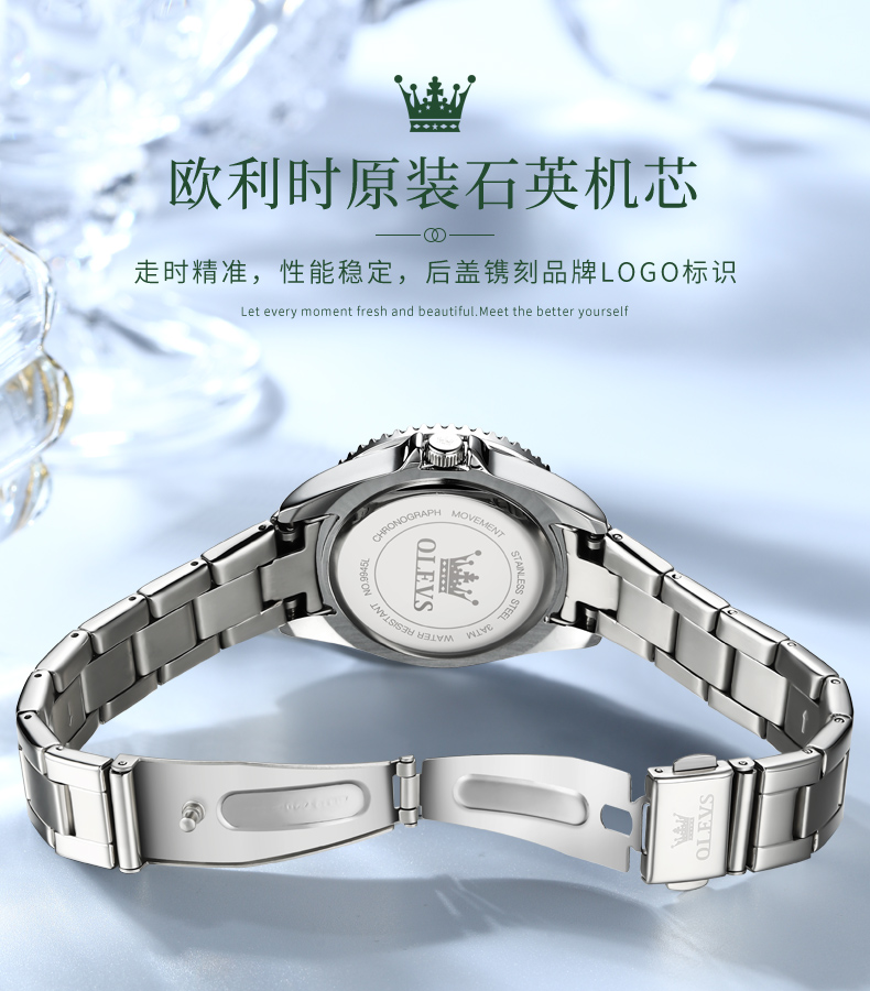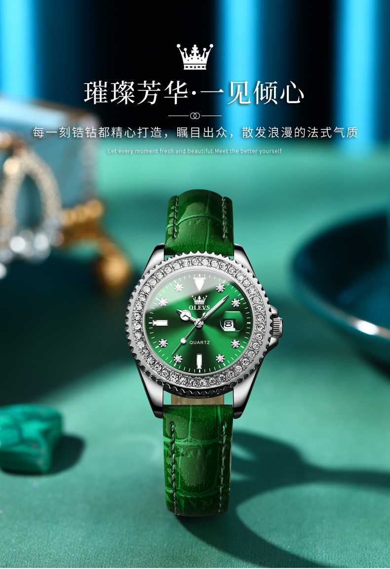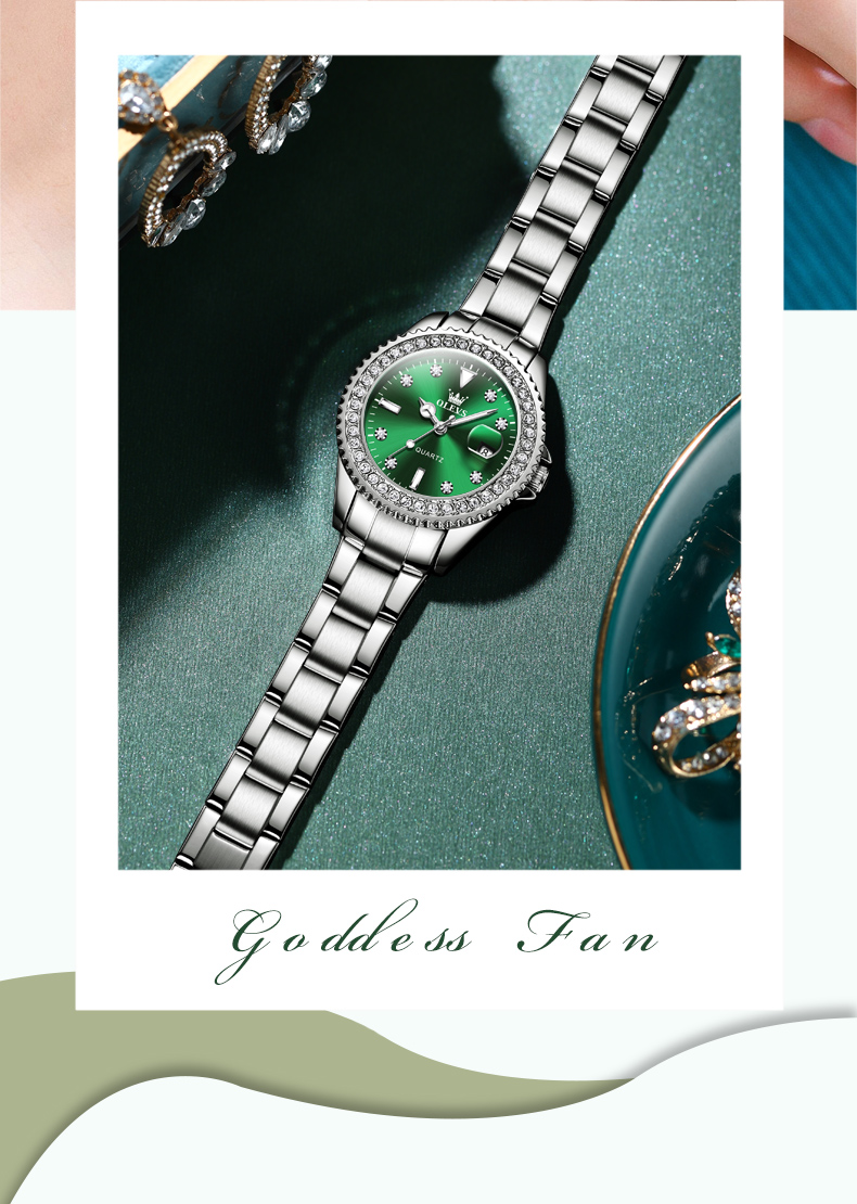 欧利时OLEVS 石英表 9945绿水鬼系列 瑞士认证品牌 女士手表瑞士认证