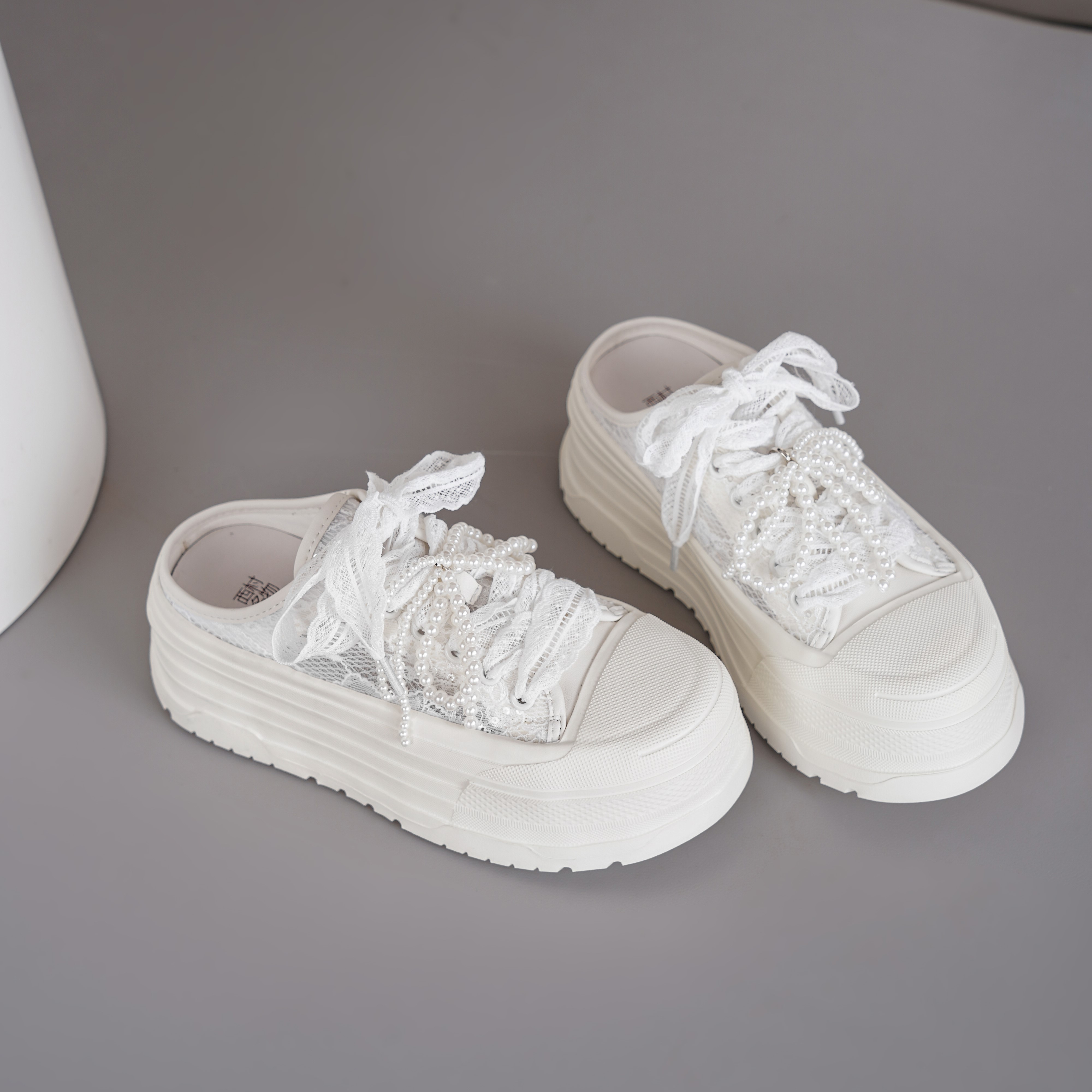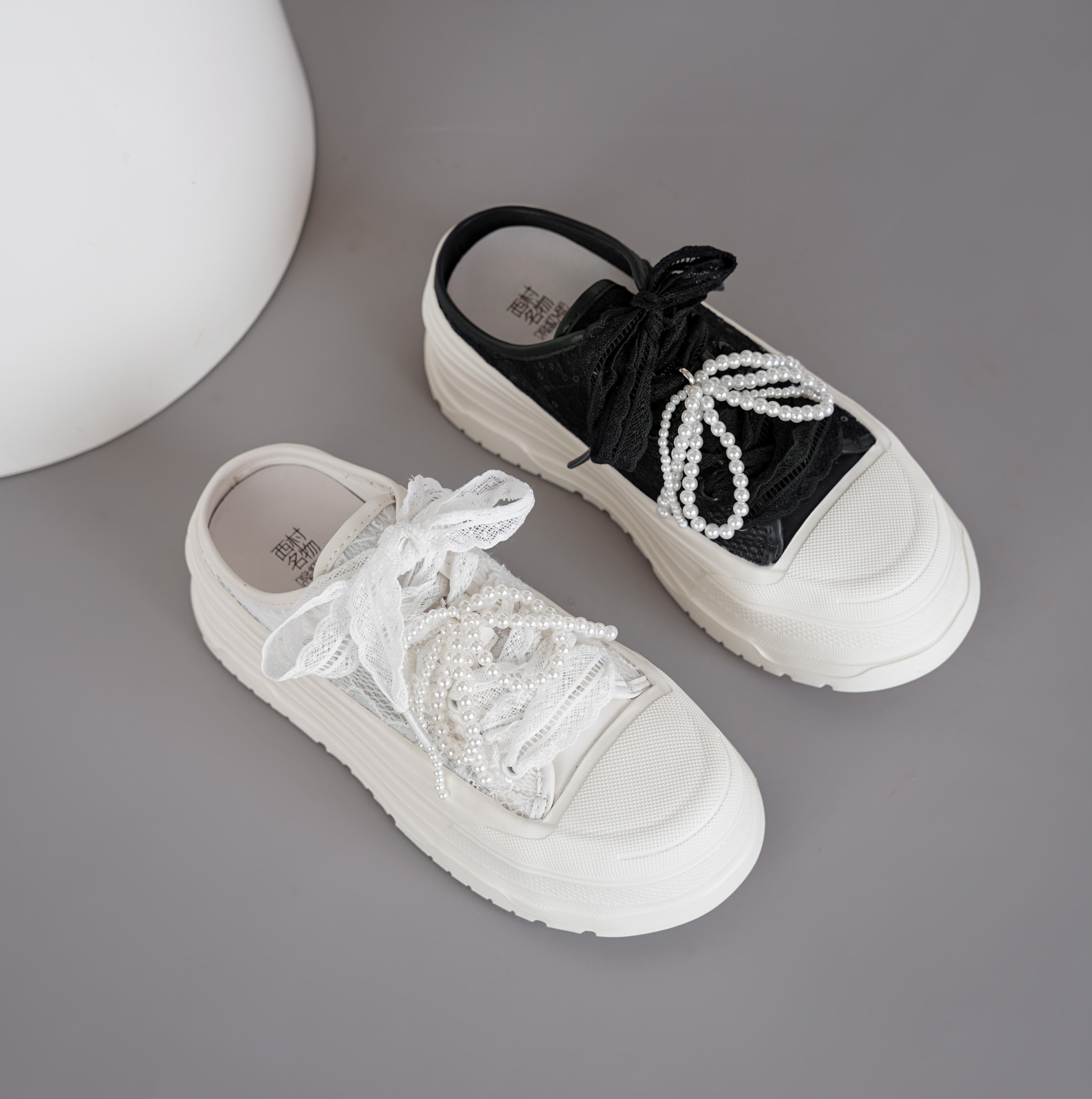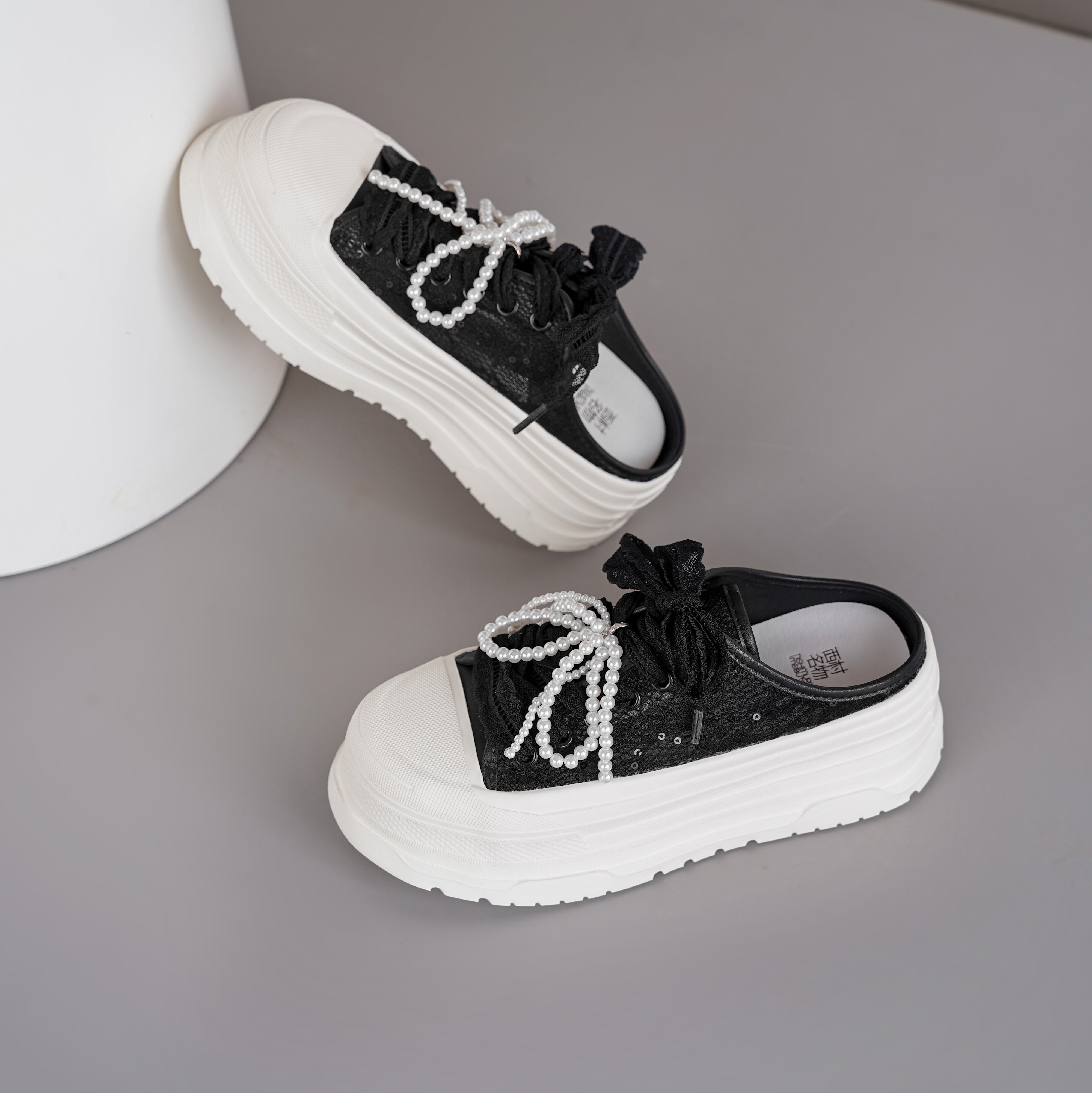 【夏季新款】2025年夏季新款舒适透气珍珠饰带厚底防滑大底百搭半拖老爹鞋鞋T25AH16401