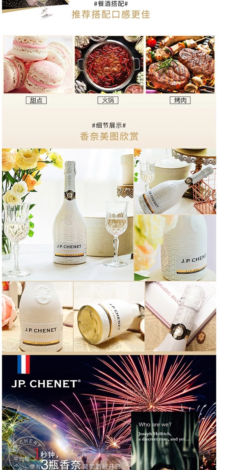 JP.CHENET 香奈 冰爽半干型起泡酒 时尚香槟气泡酒 法国进口葡萄酒 750ml 10.5%vol 节日礼赠 亲朋聚会 72小时发货