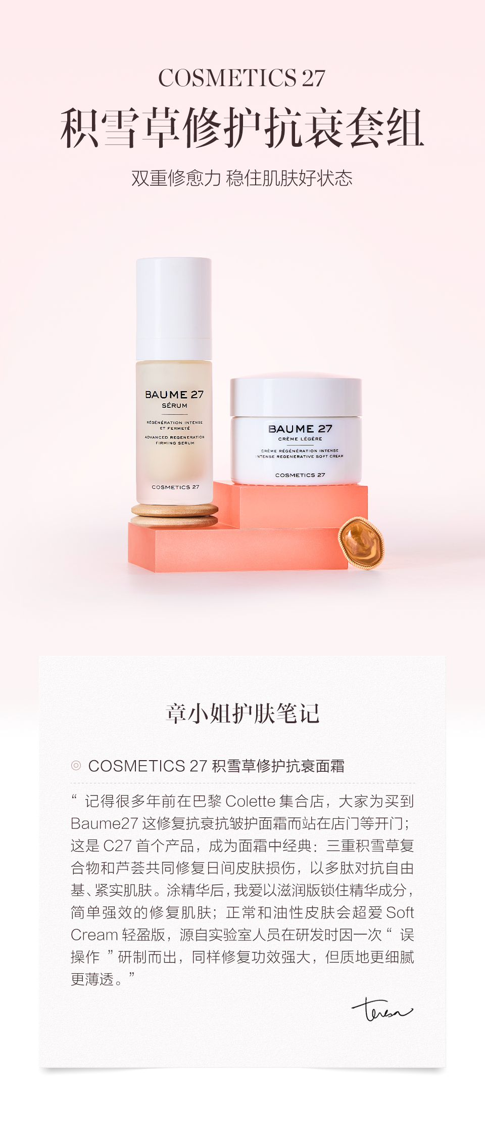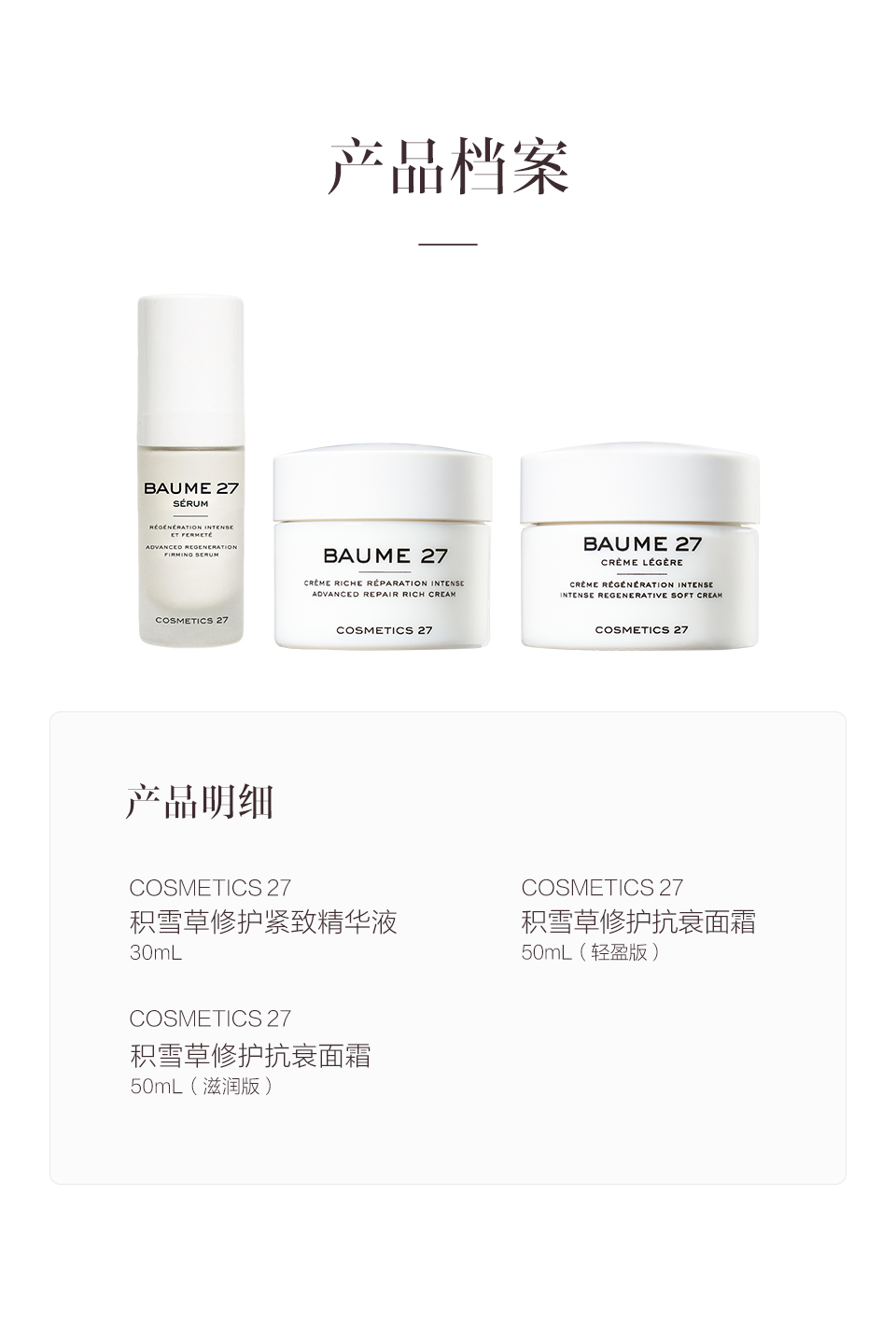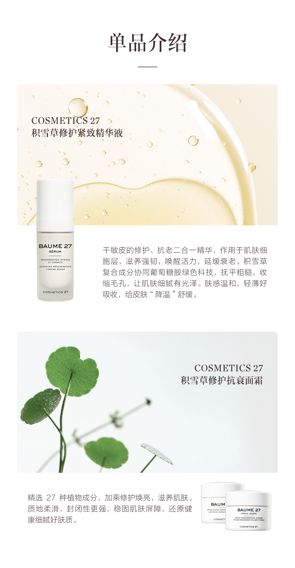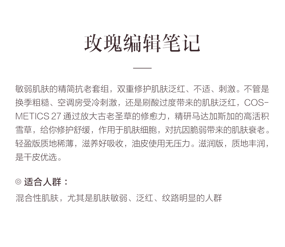 保税直发 COSMETICS 27 积雪草修护抗衰套组 滋润版(紧致精华液 30mL+抗衰面霜 50mL(滋润版))