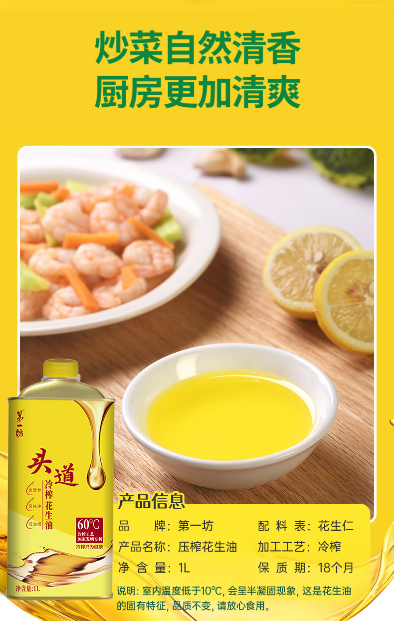 第一坊头道冷榨花生油 1L