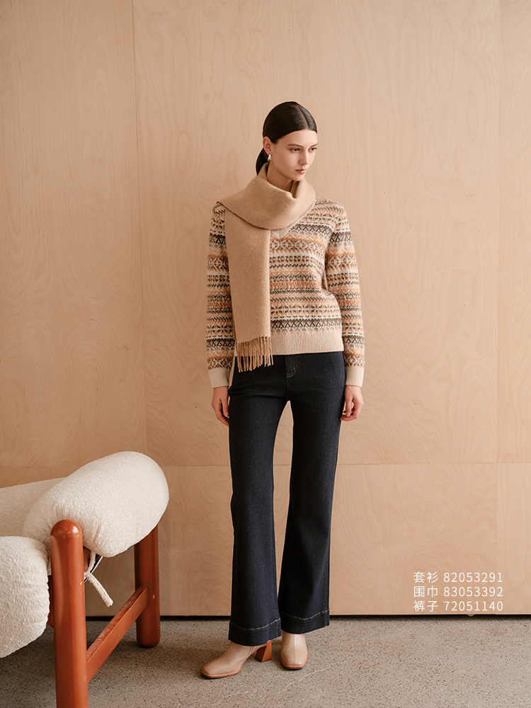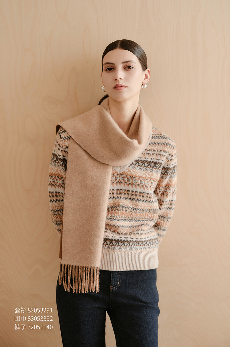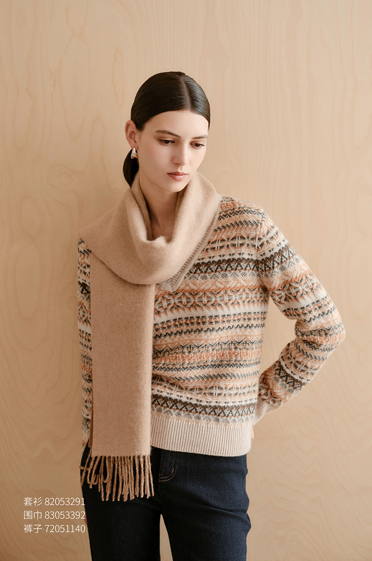 【条纹撞色提花开衫】羊绒世家秋冬新品女士100%山羊绒V领针织套衫