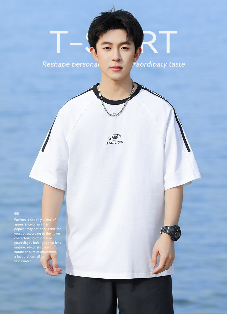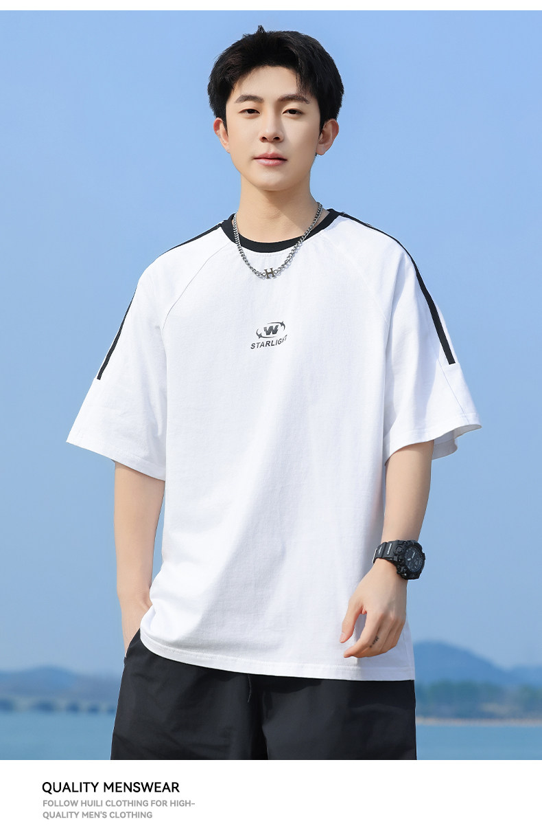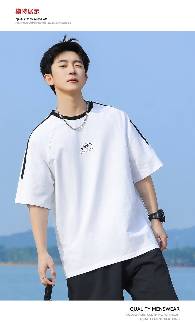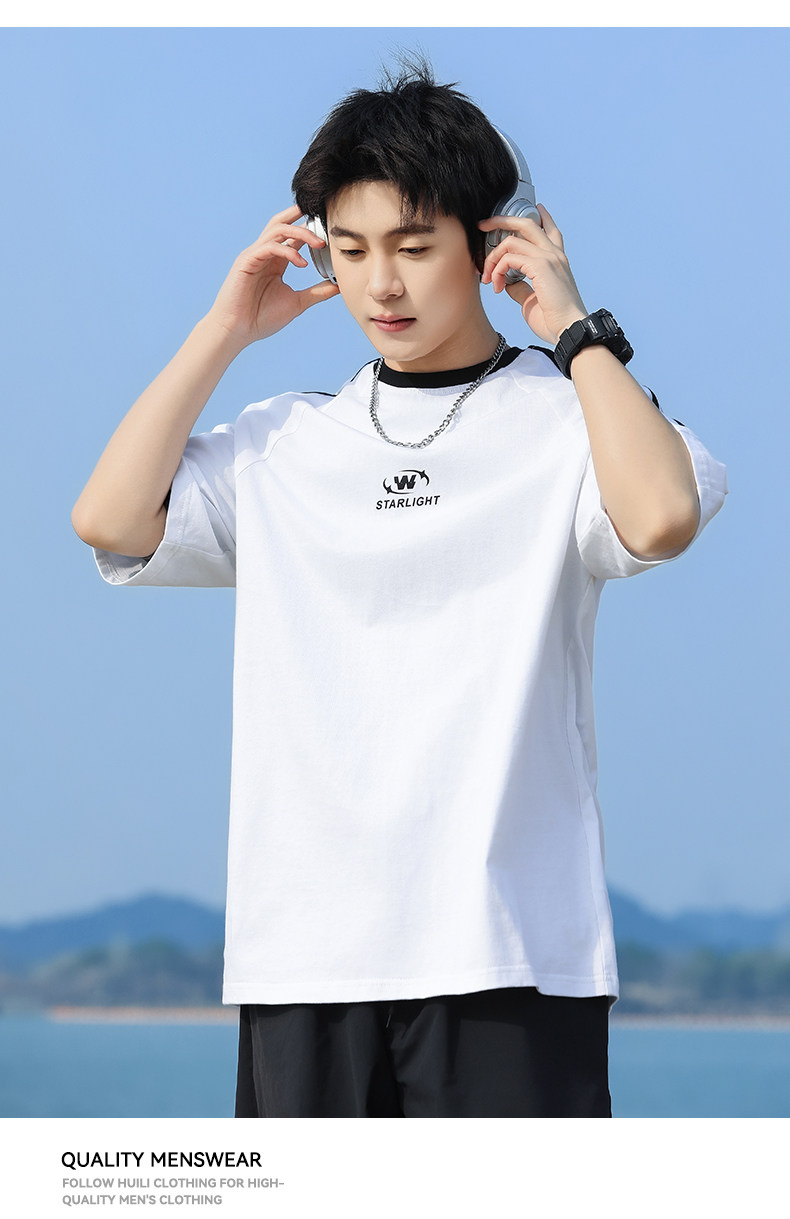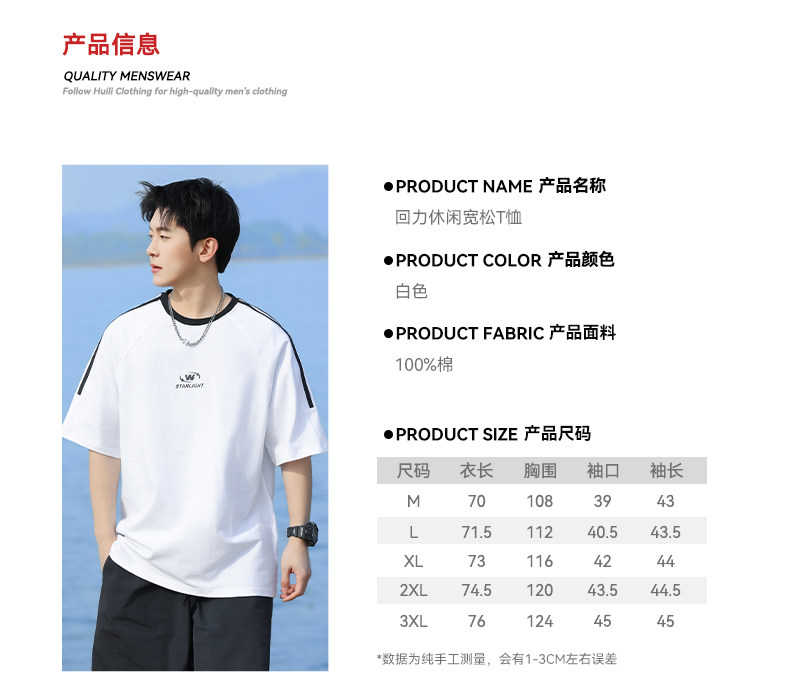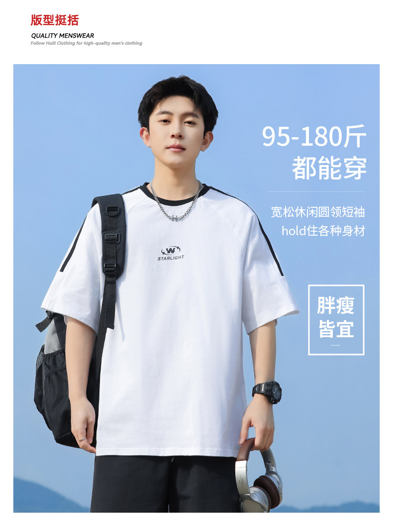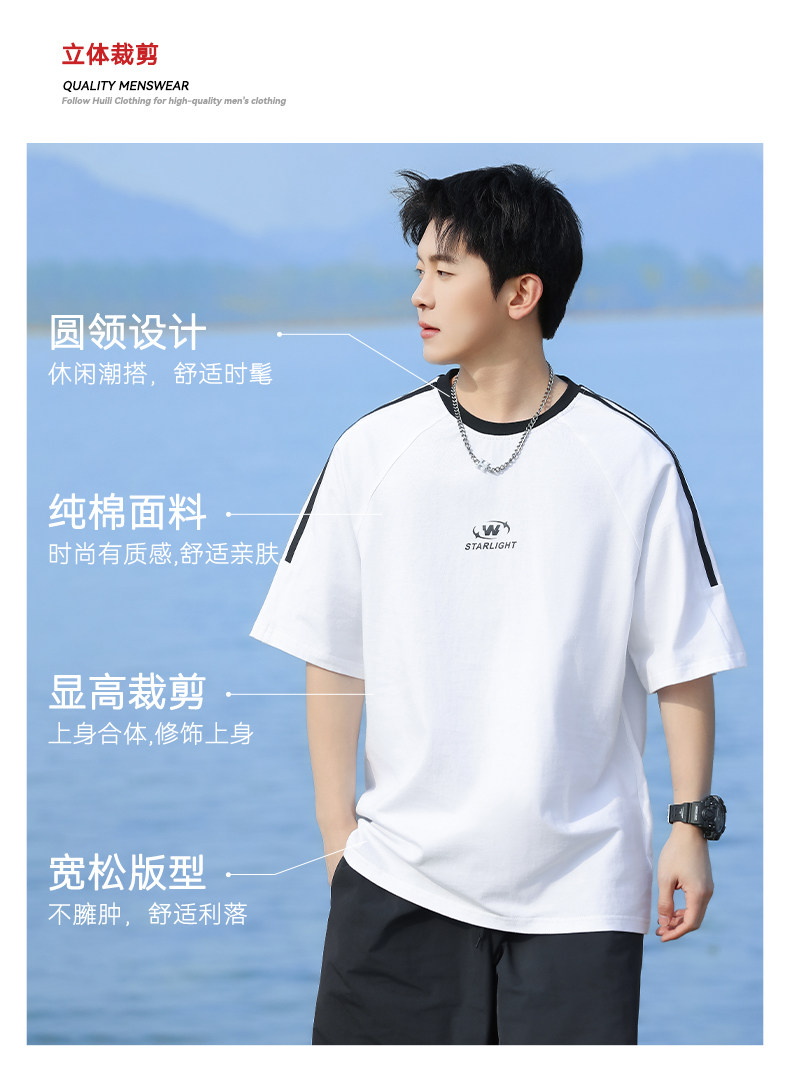 回力短袖T恤男夏2025新款纯棉白色设计感小众高级感痞帅圆领体恤