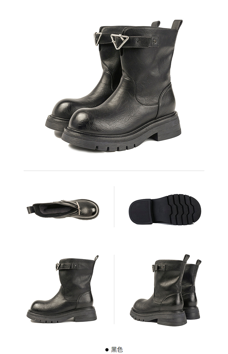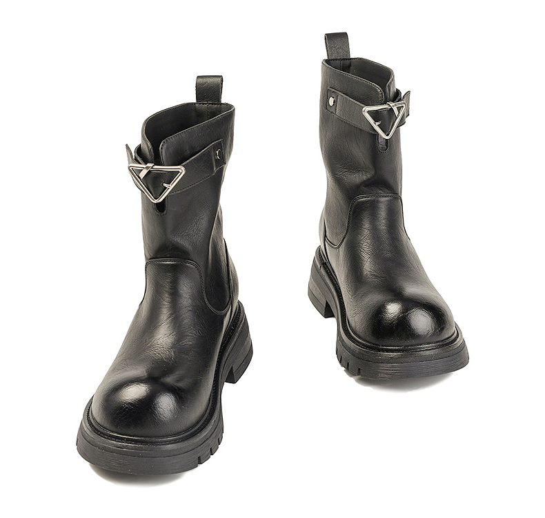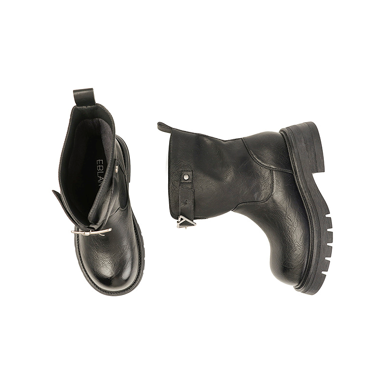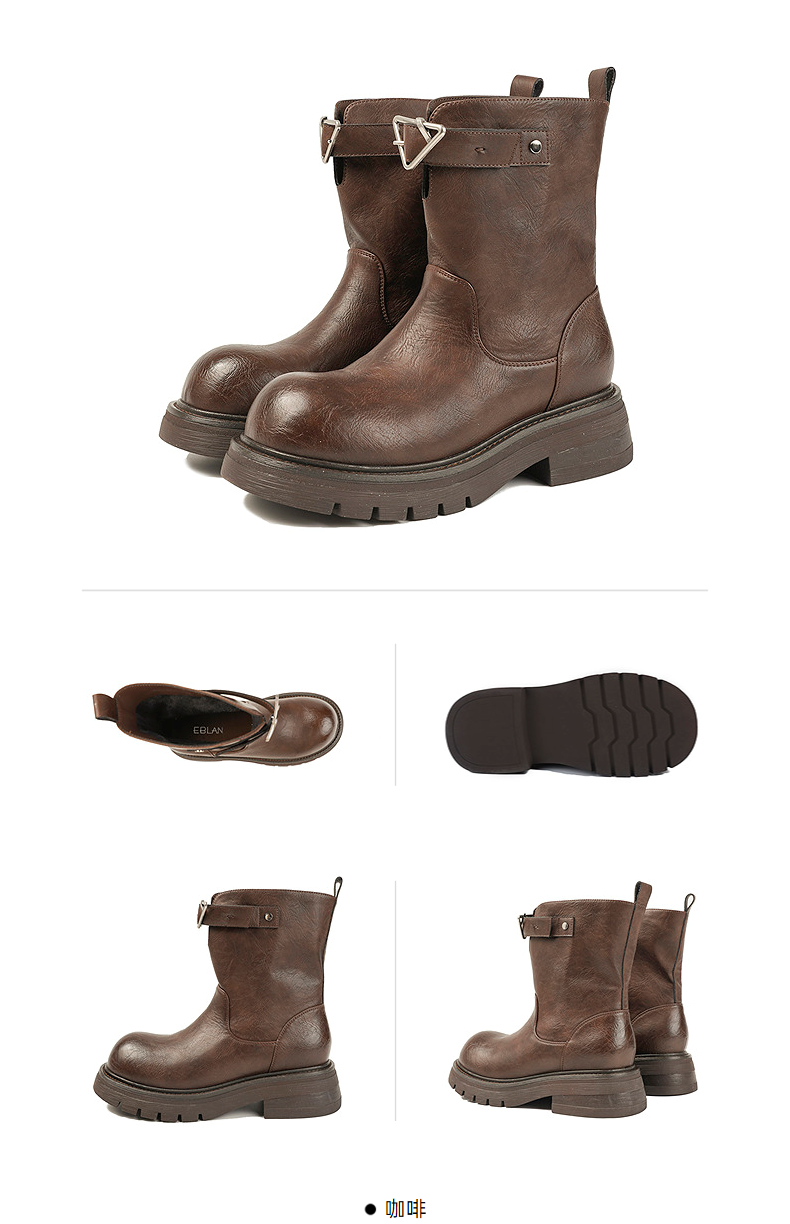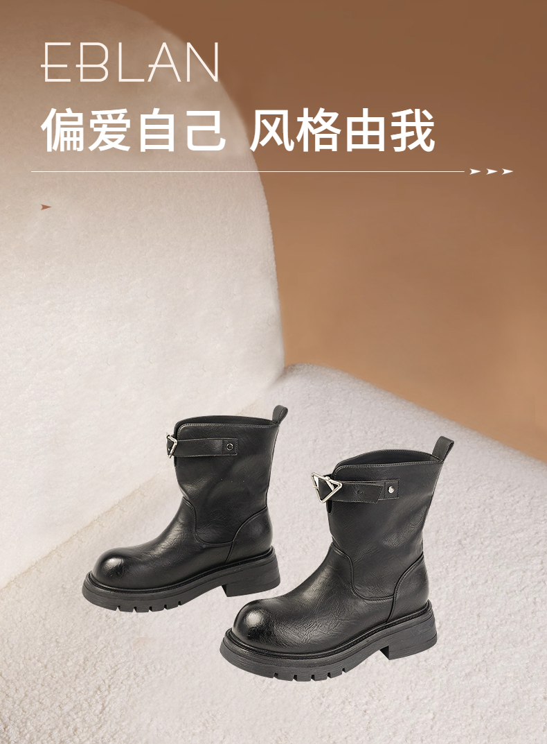伊伴冬季百搭经典色质感金属扣短靴休闲中短靴B25505310