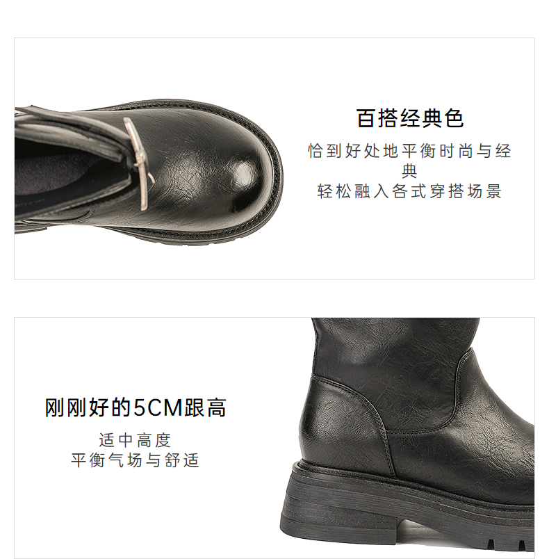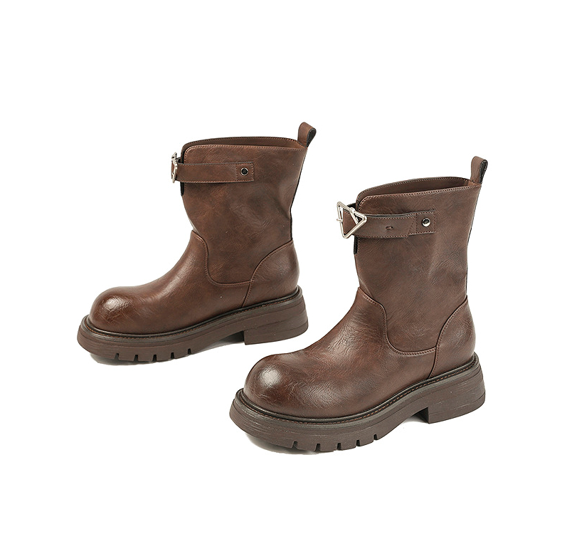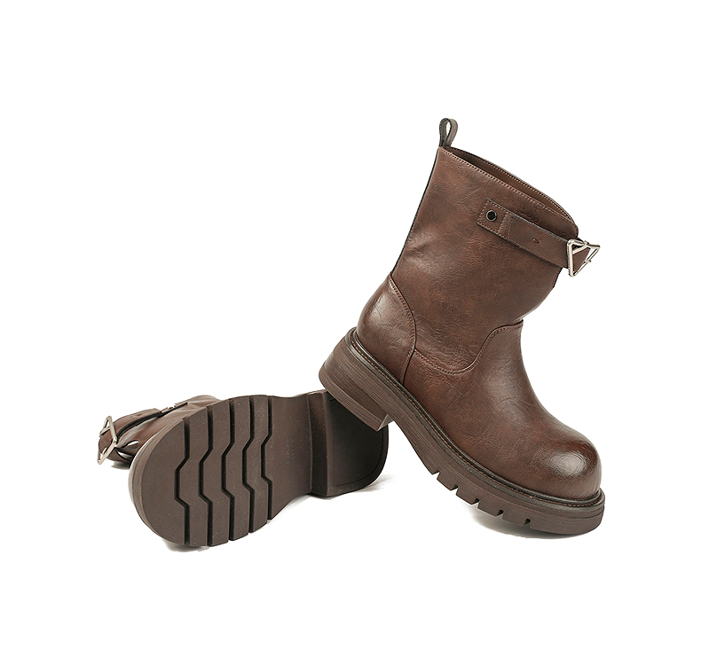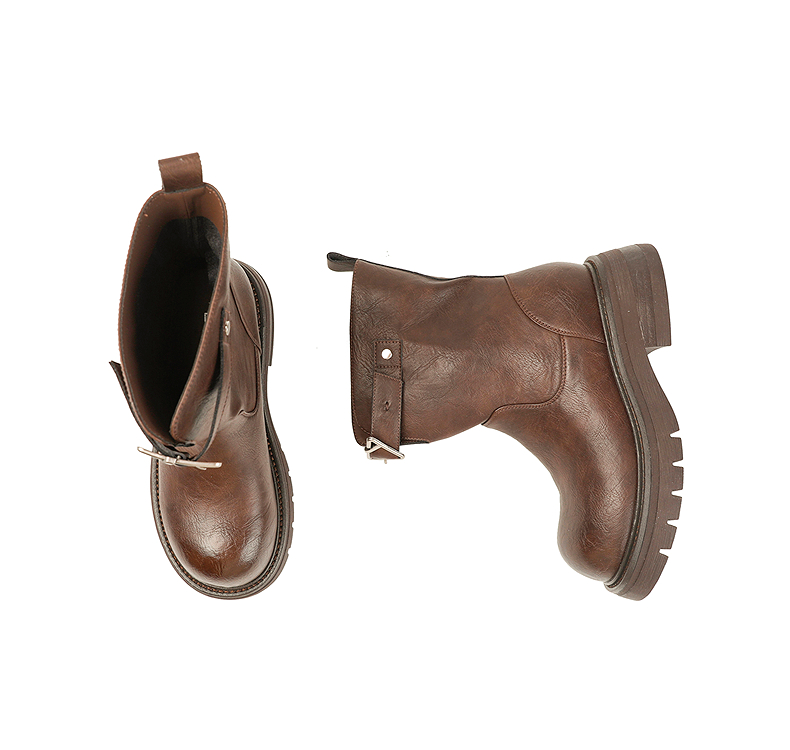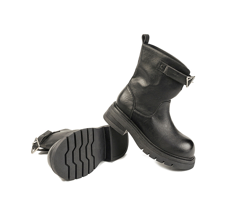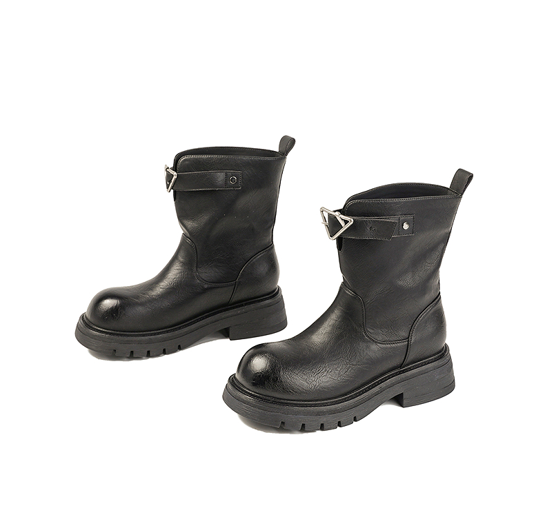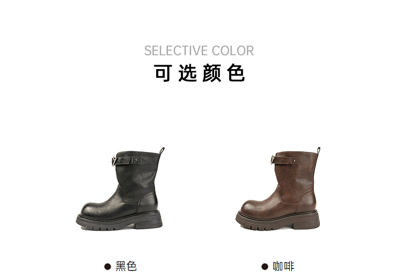伊伴冬季百搭经典色质感金属扣短靴休闲中短靴B25505310