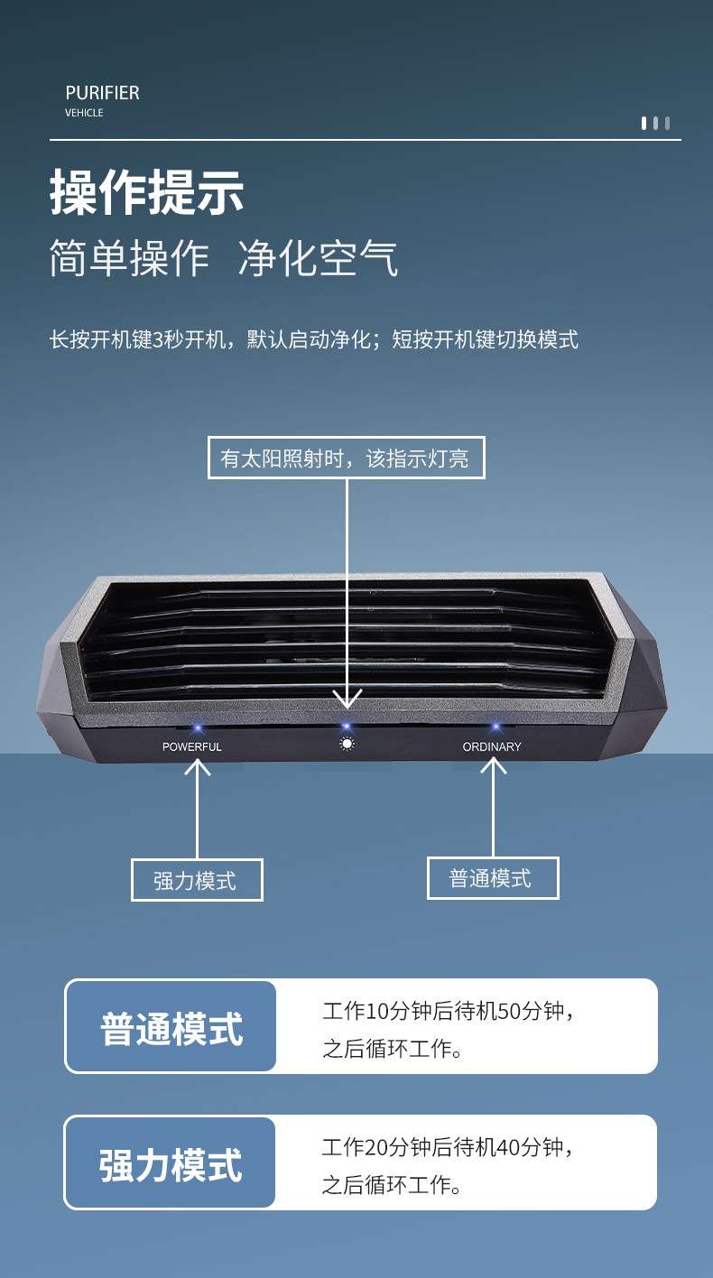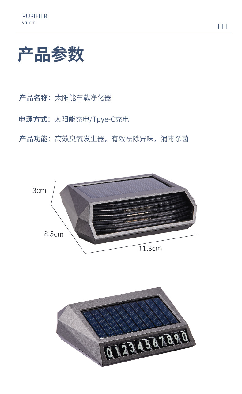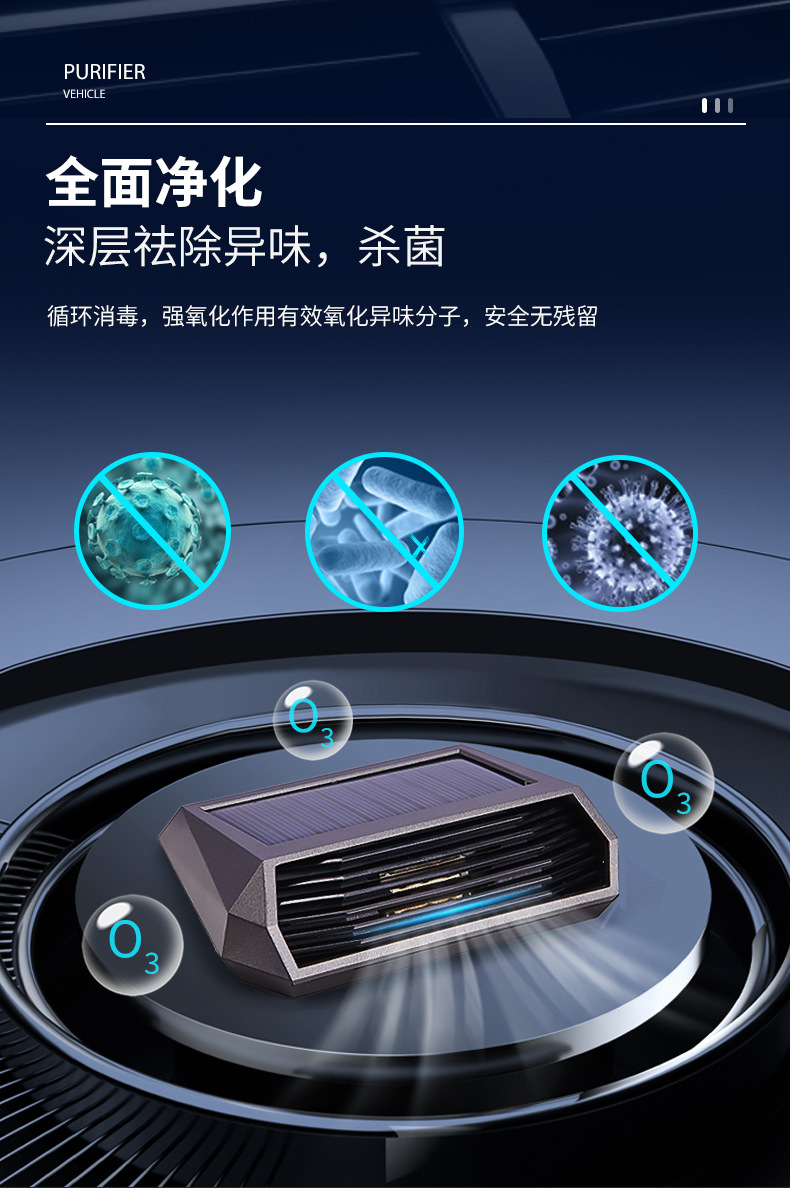 太阳能车载空气净化除味器 臭氧负离子汽车祛除异杀菌味甲醛消毒 全面净化