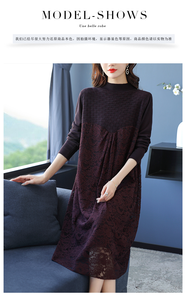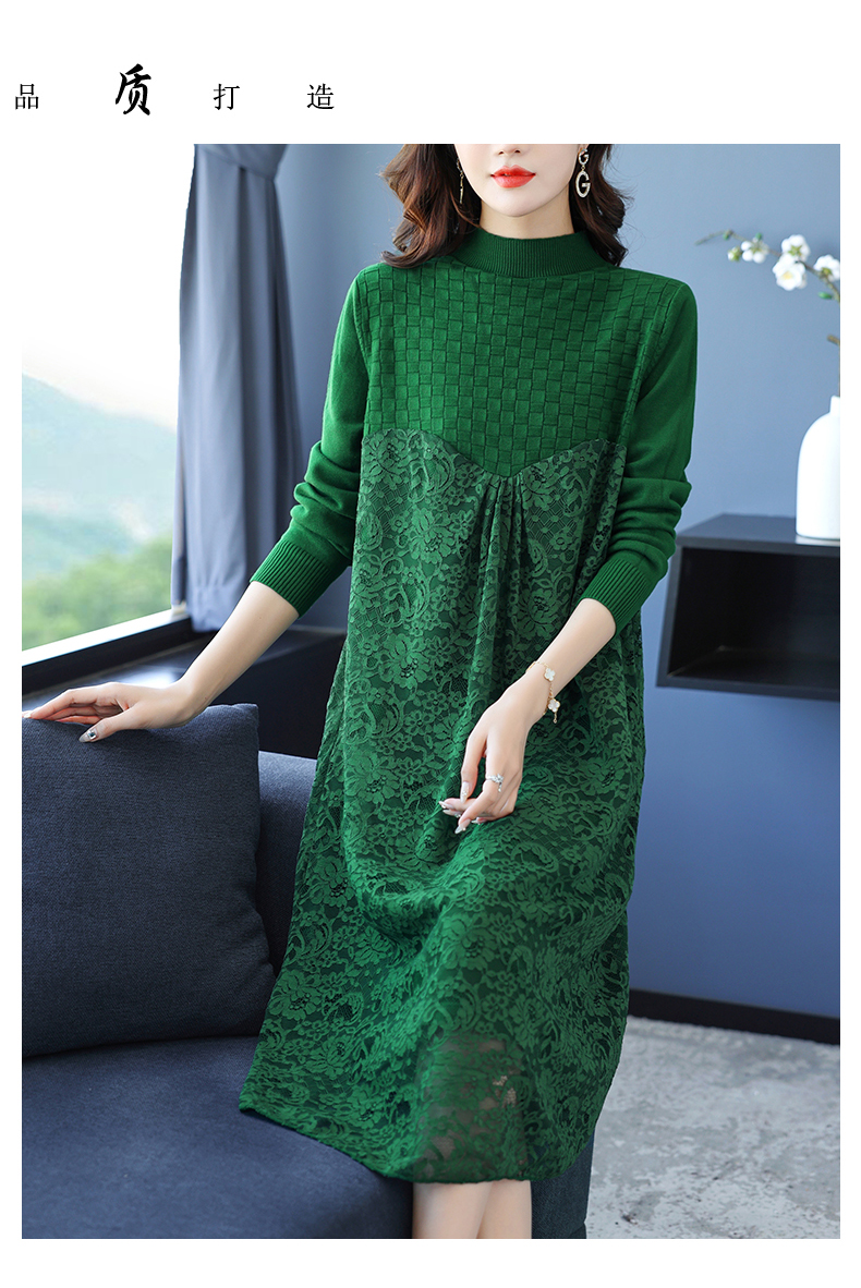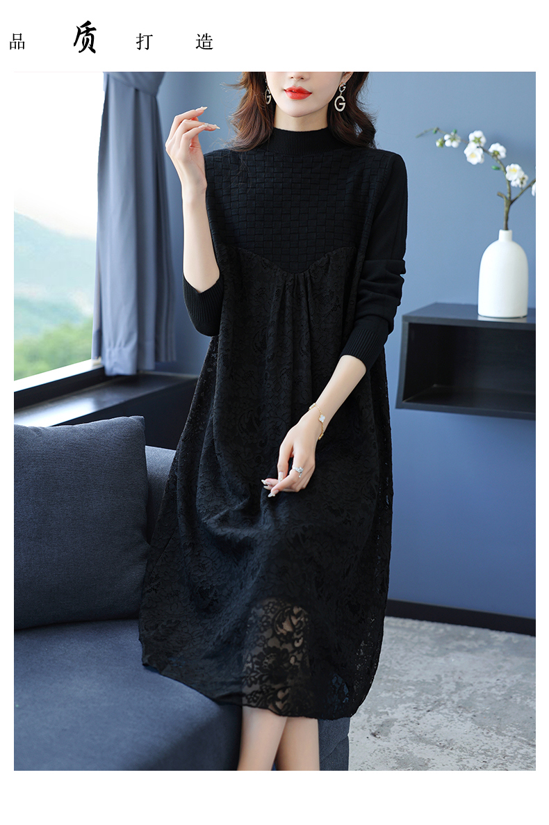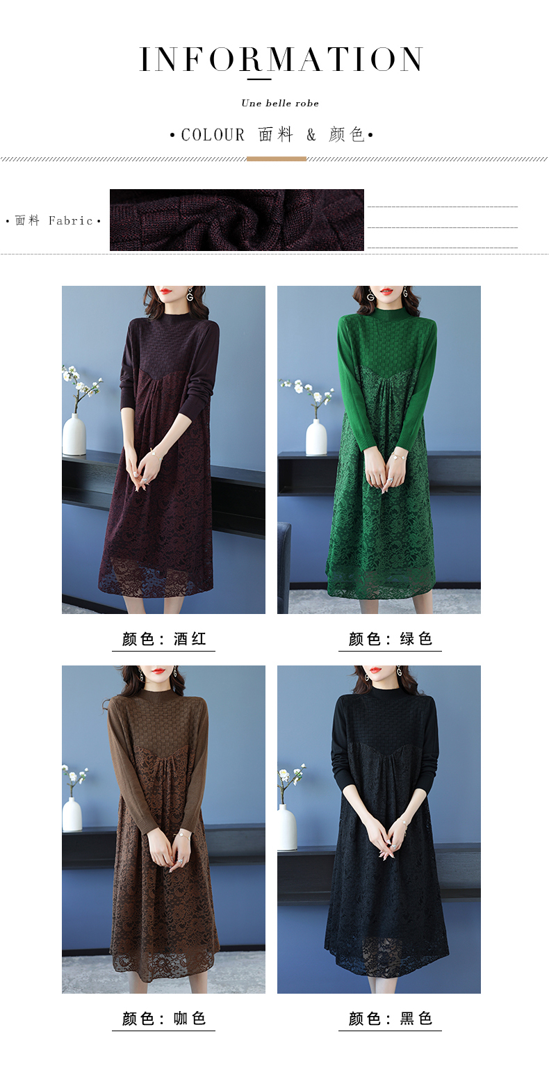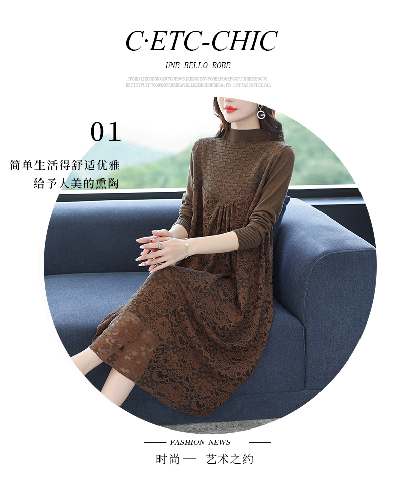 气质显瘦蕾丝针织时髦宽松打底毛衣裙CC-10-2351