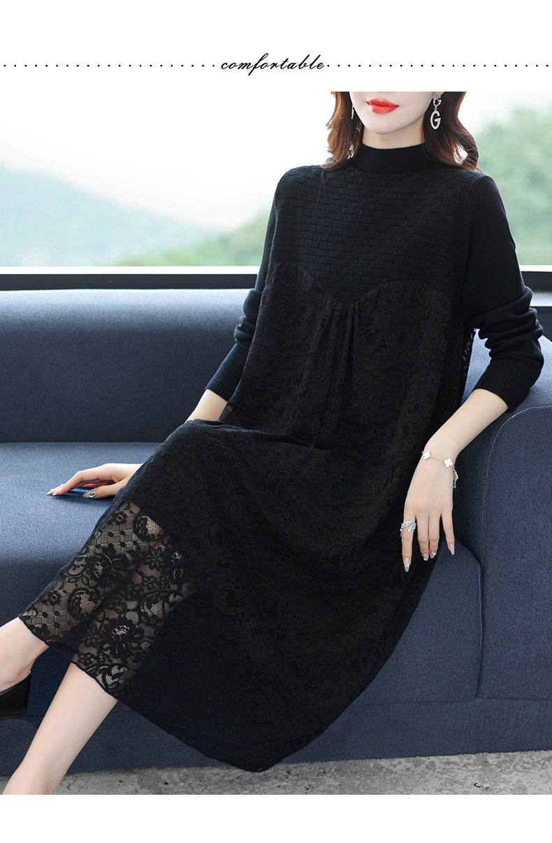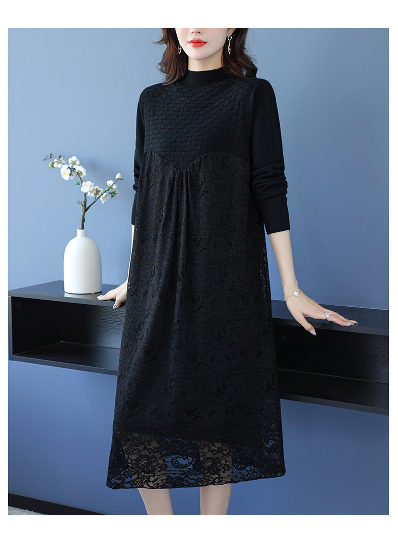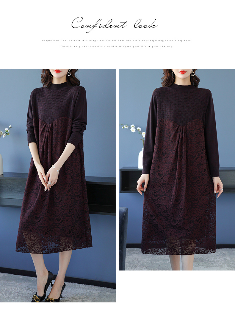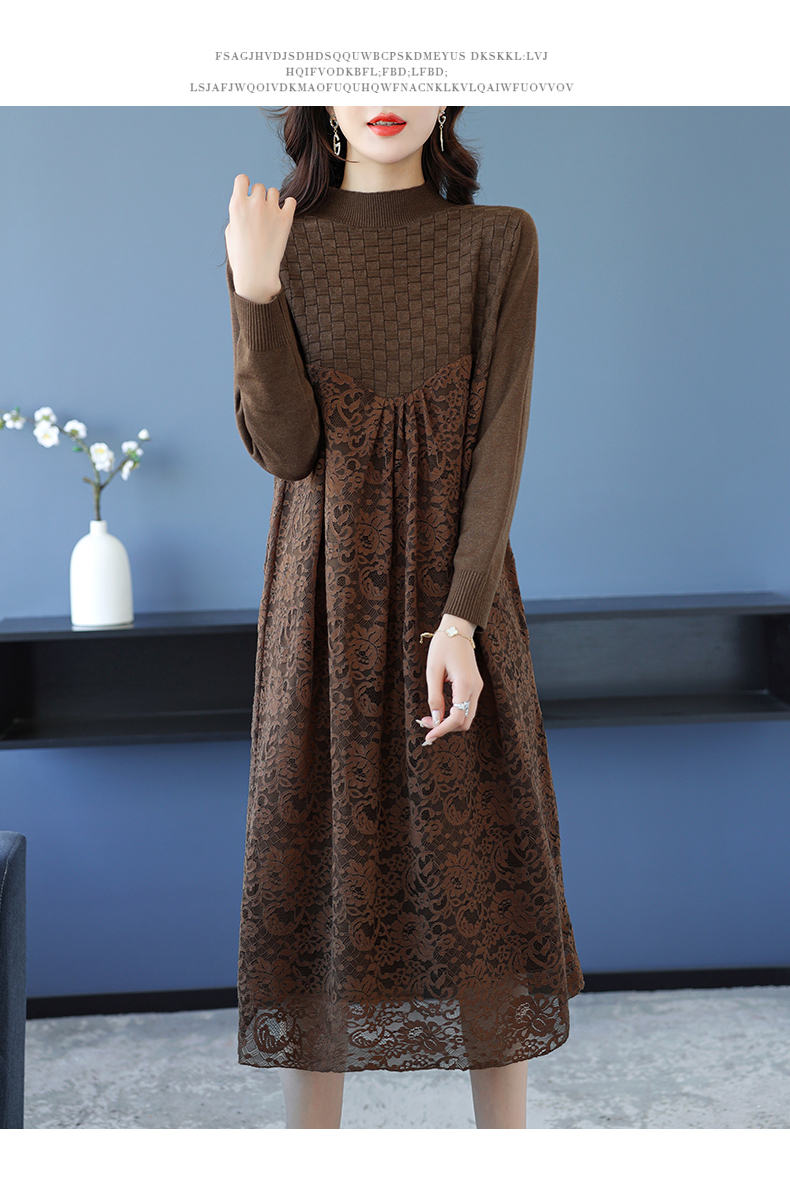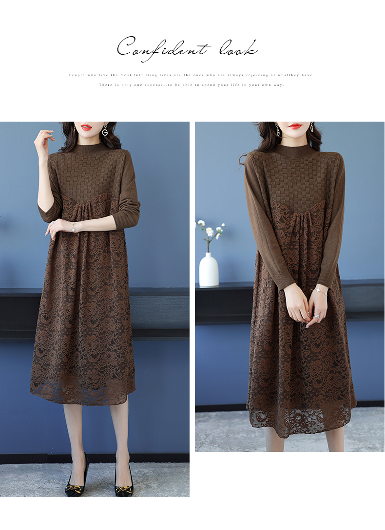 气质显瘦蕾丝针织时髦宽松打底毛衣裙CC-10-2351