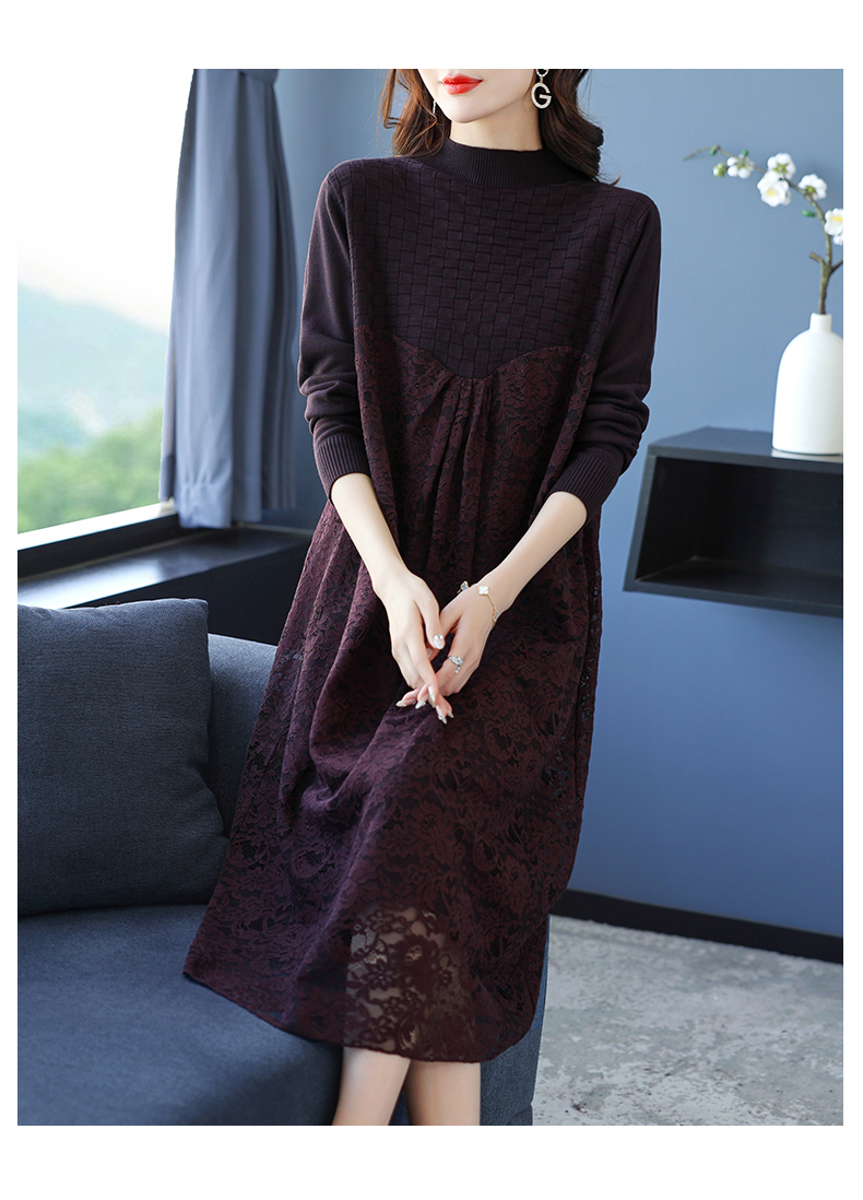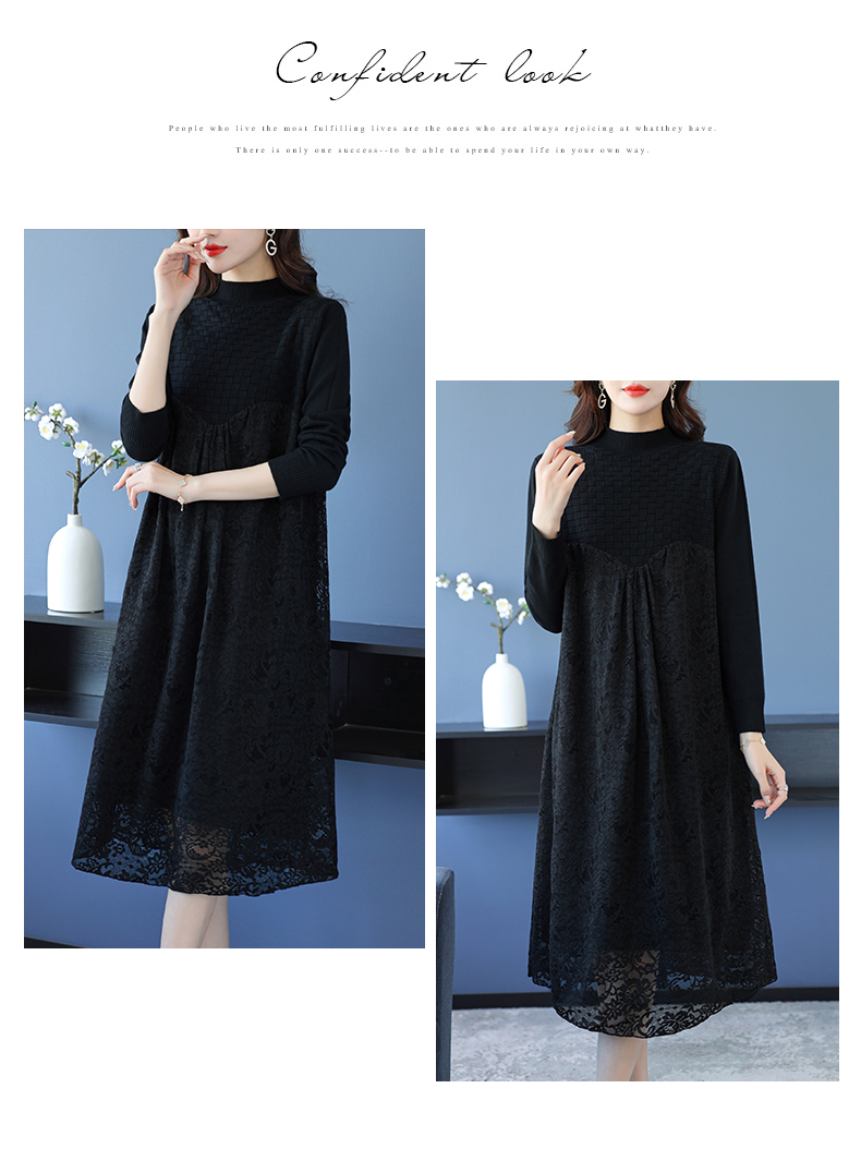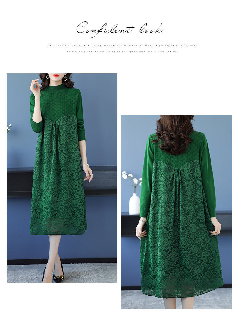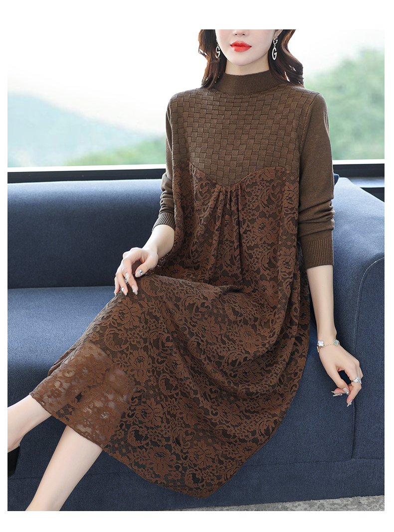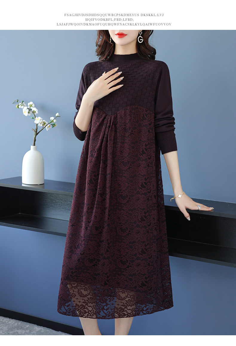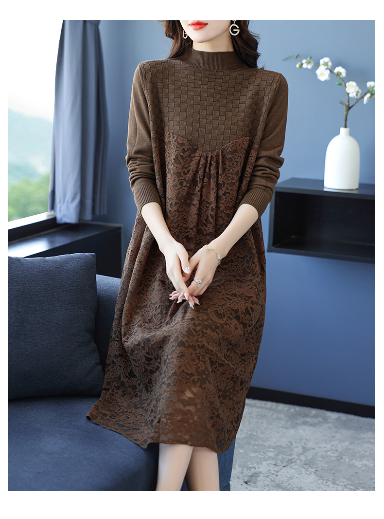 气质显瘦蕾丝针织时髦宽松打底毛衣裙CC-10-2351