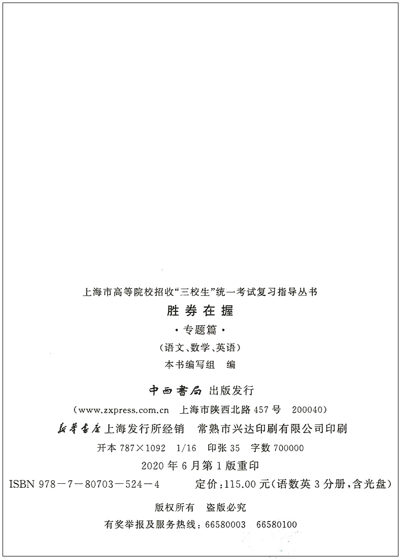 2021版 胜券在握 数学 专题篇 上海市高等院校招收三校生统一考试复习指导丛书 高职高专适用 高三学生复习教程用书资料 中西书局