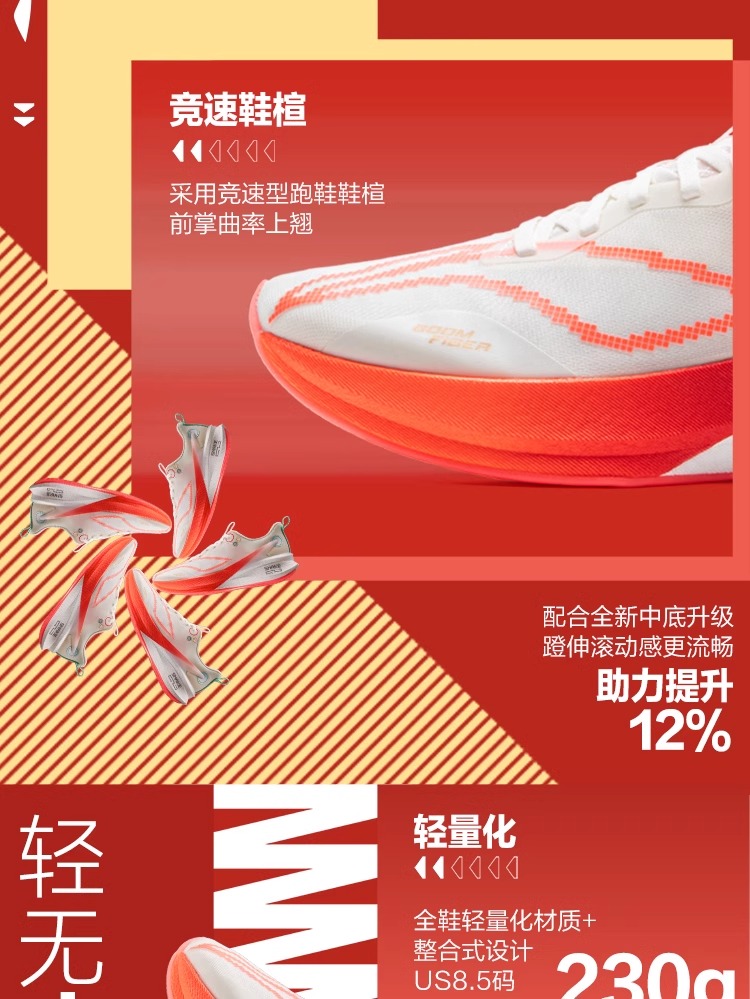 李宁 飞电5 ELITE 男女款 beng轻弹科技高回弹竞速比赛训练运动跑步鞋