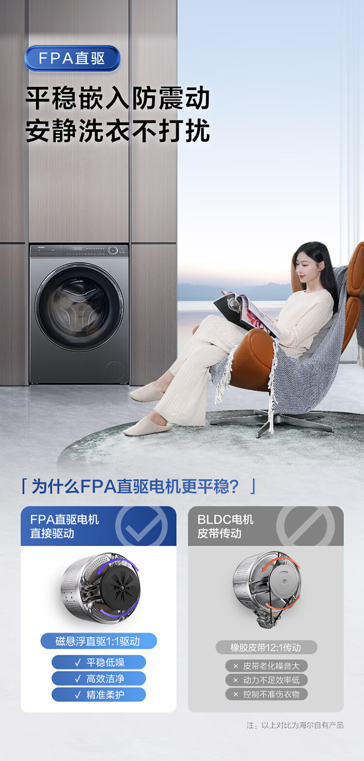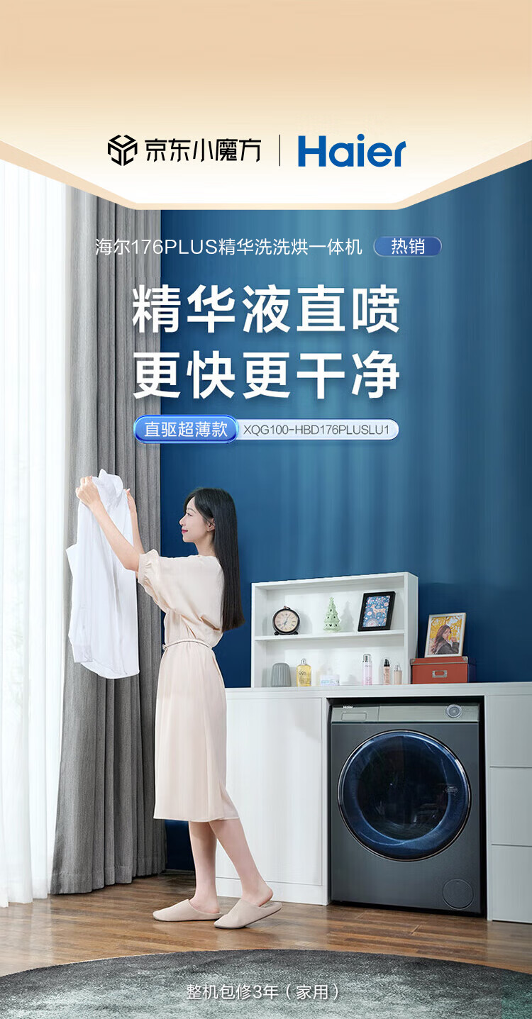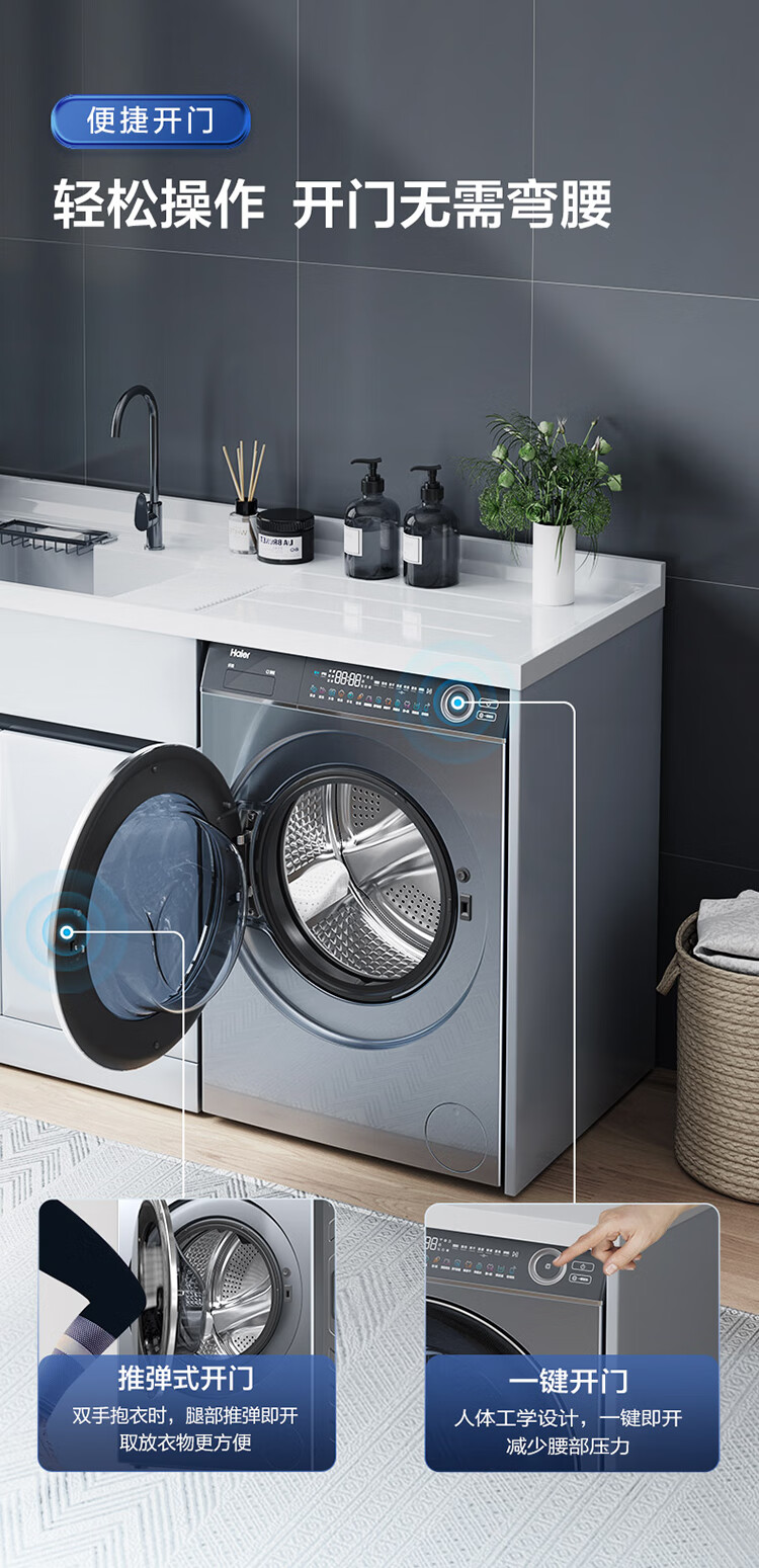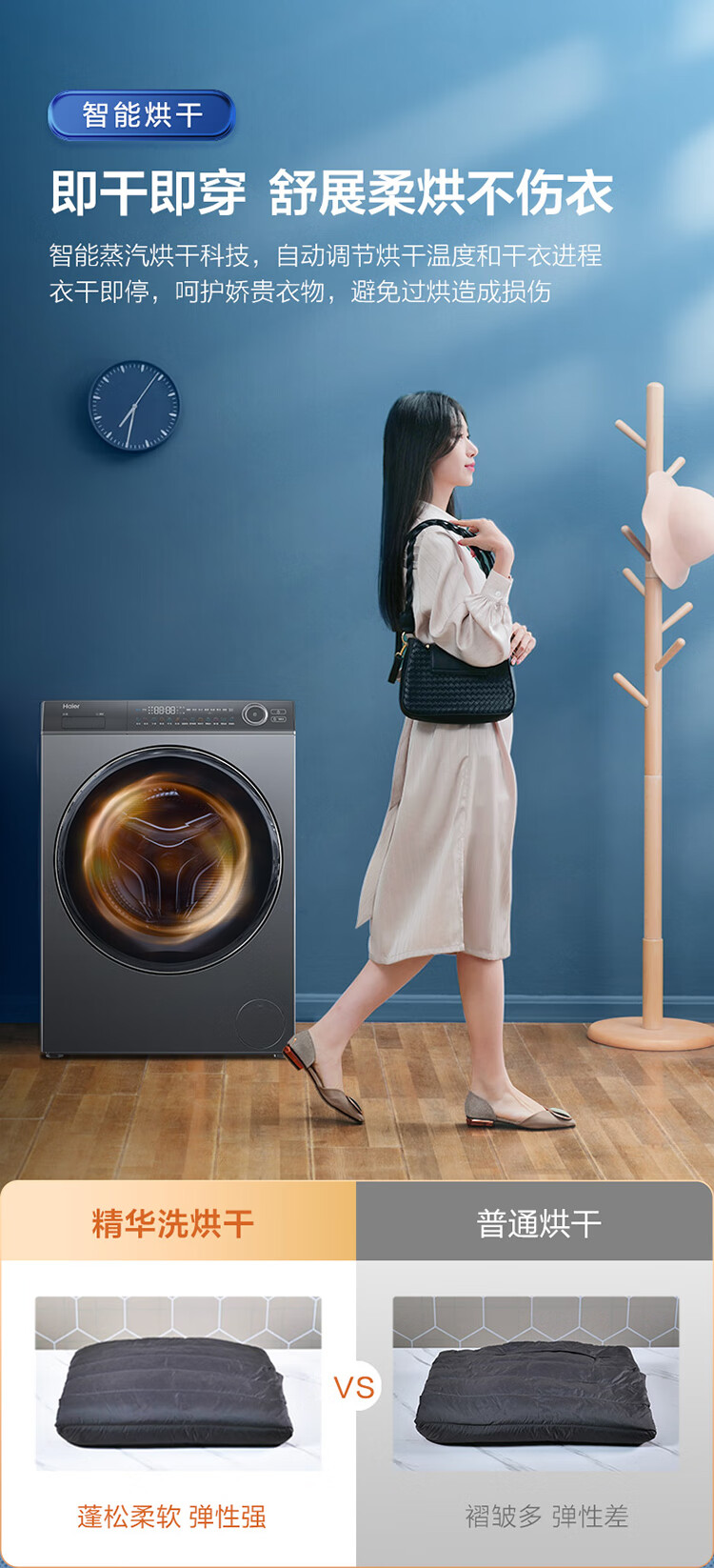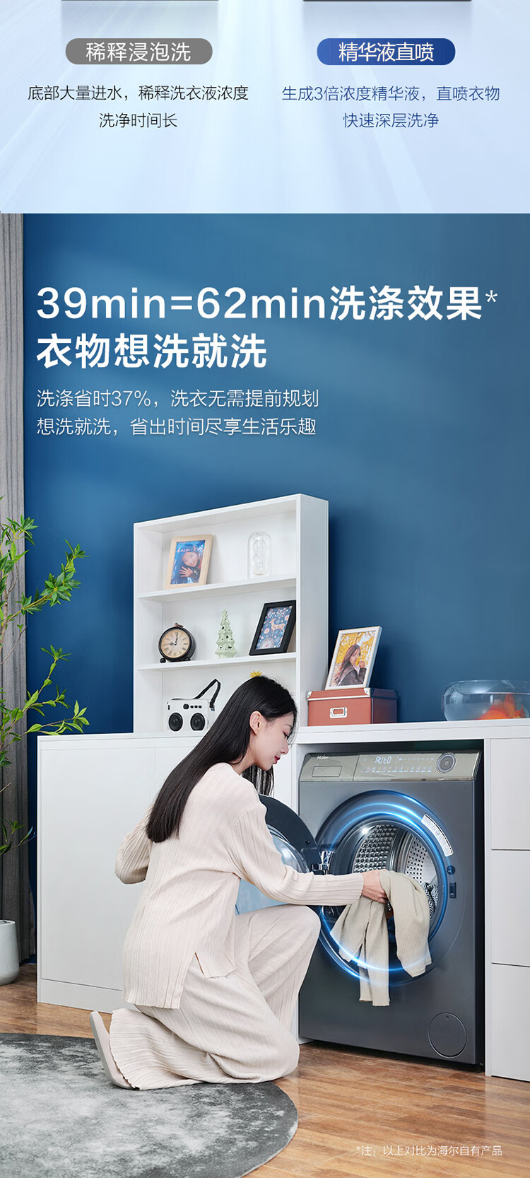 以旧换新-【精华洗】海尔精华洗滚筒洗衣机全自动家用 10公斤洗烘一体机 直驱超薄大筒径 UVC紫外除菌XQG100-HBD176PLUSLU1