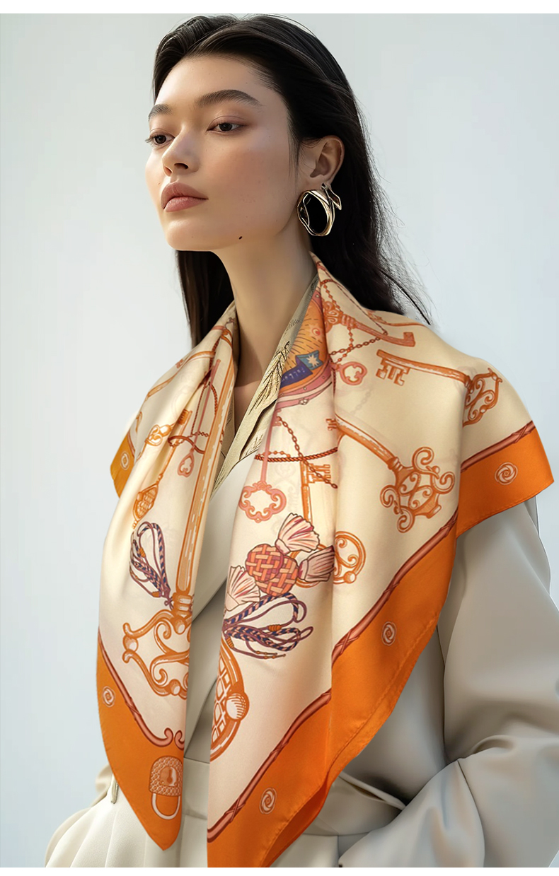 凤凰之家“浪漫不渝”63厘米双面印花真丝中方巾