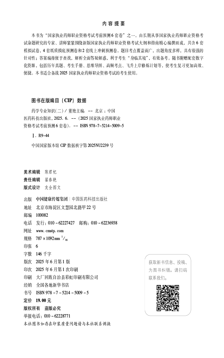 药学专业知识(二)(2025国家执业药师职业资格考试考前预测6套卷)董艳 随书附赠配套数字化资源包括历年真题中国医药科技出版社