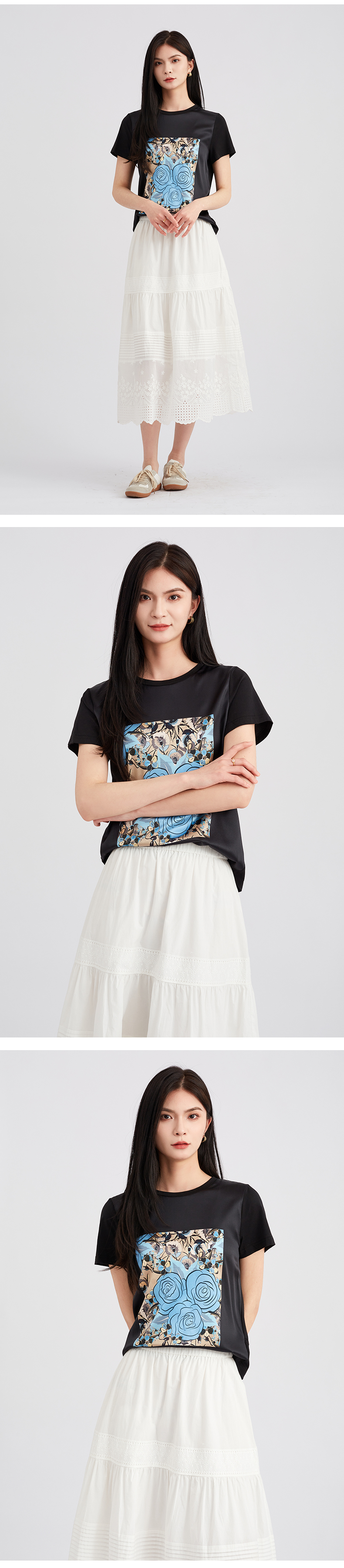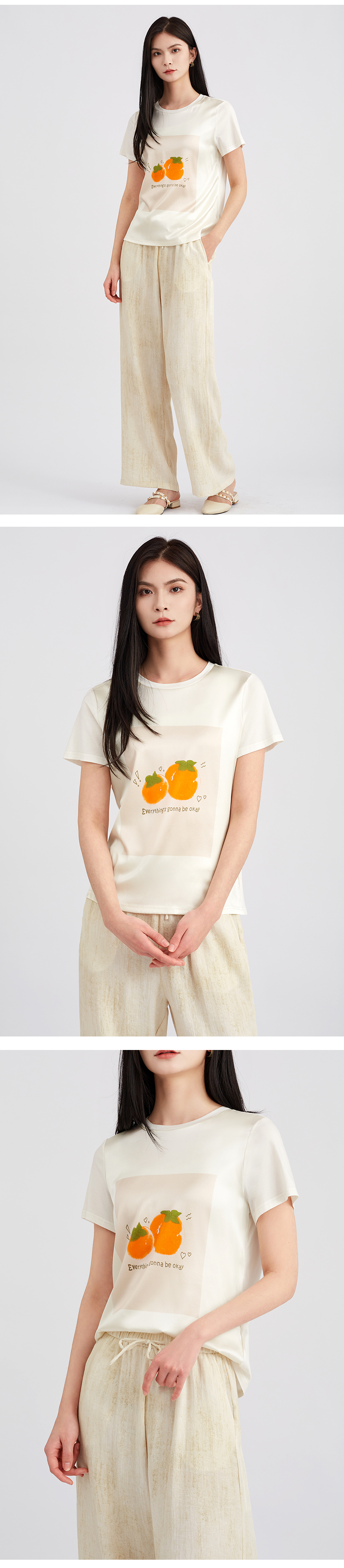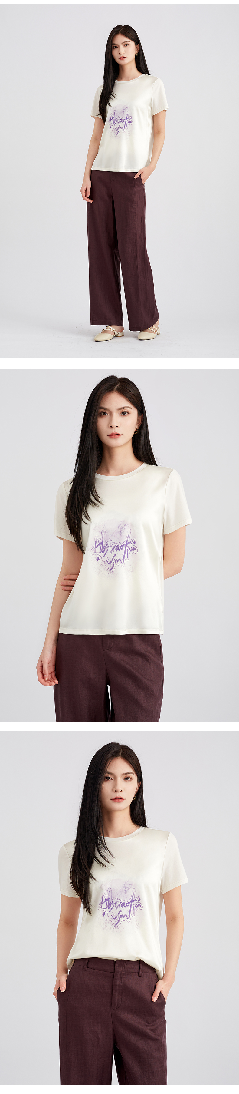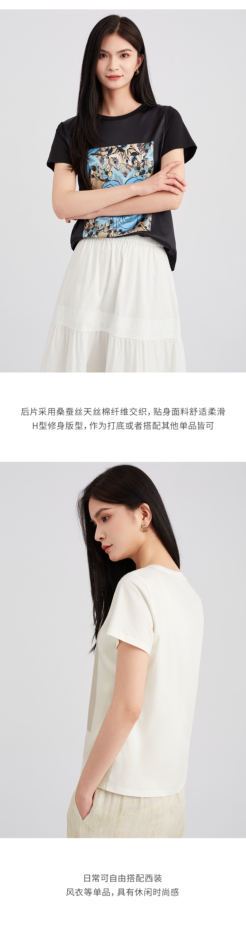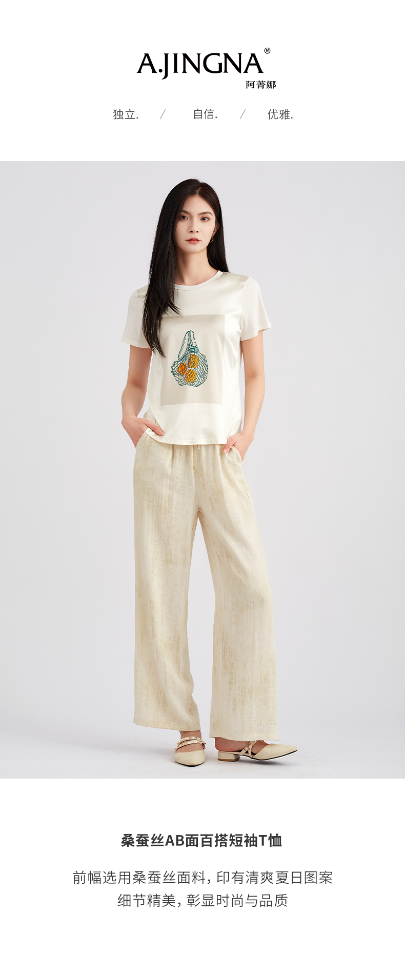 【夏日图案】阿菁娜桑蚕丝AB面百搭短袖T恤F30C301036