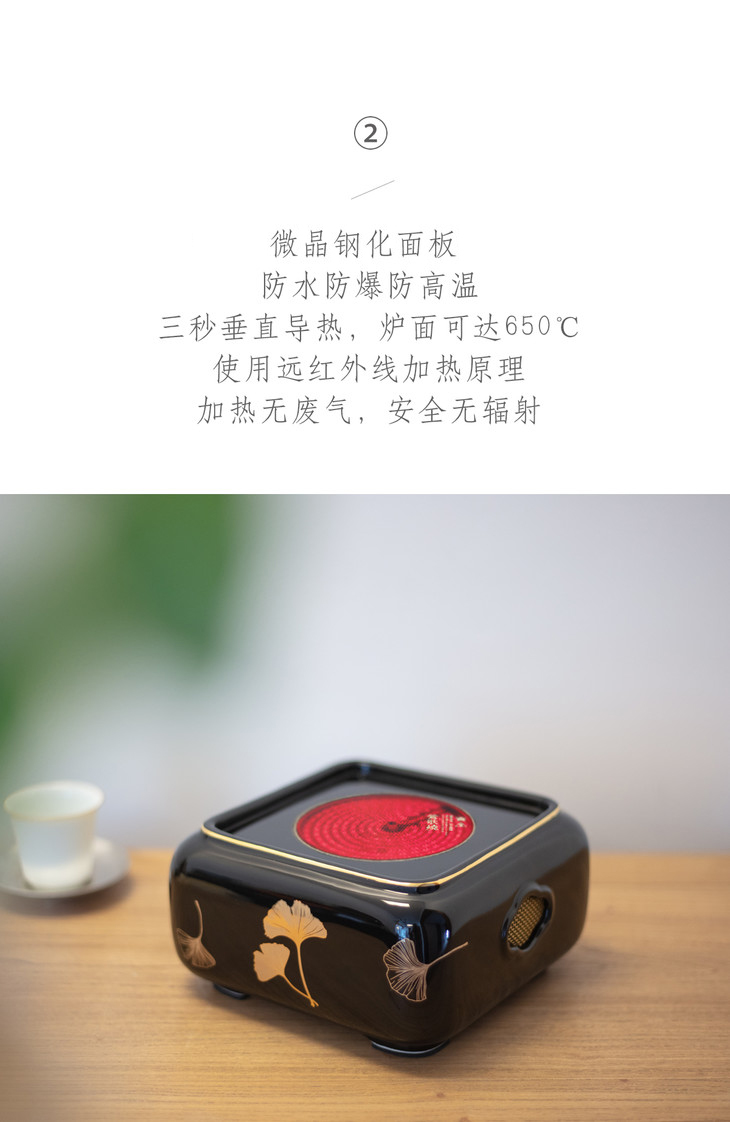 【莺歌烧旗舰店】四方黑地 银杏纹电陶炉