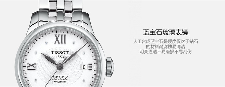 镜面 材质 | 蓝宝石水晶玻璃 | 表盘 | 精钢表壳 银白色表盘 大三针 日期显示 罗马数字与钻石刻度时标 |