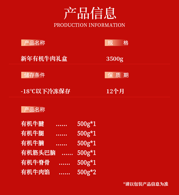 新疆天莱香牛新年有机牛肉礼盒3.5kg伴手礼优选健康美味