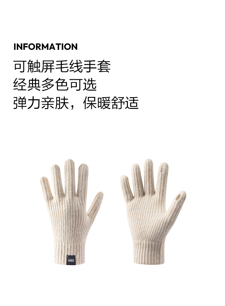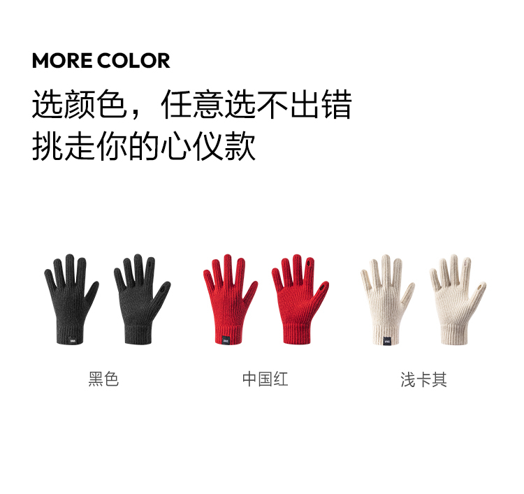 森马手套男2024冬季新款可触屏学生骑行保暖针织毛线手套弹力情侣