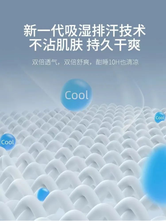 表面采用凉感冰丝面料 清爽透气,触感柔软,凉而不冰❄ 睡上去软软滑滑的,非常舒服 整夜裸睡都无压力☁ 不粘身,整夜干爽舒适 就算是晚上出汗,也没有黏腻的感 蕞重要是不会夹肉、勾头发