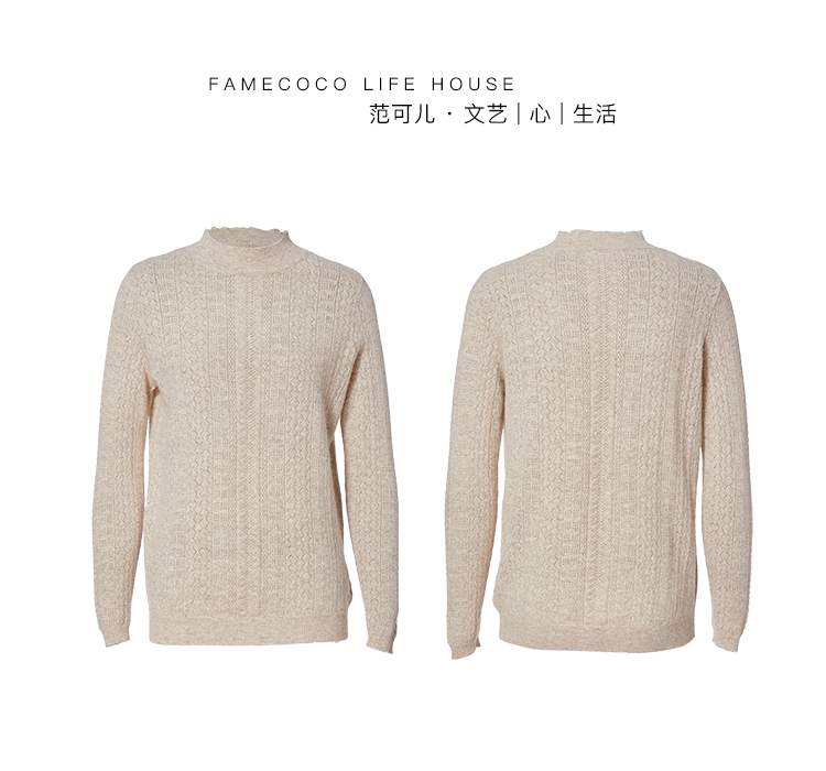 famecoco范可儿女士毛衣秋冬宽松羊毛打底针织上衣F195DB015