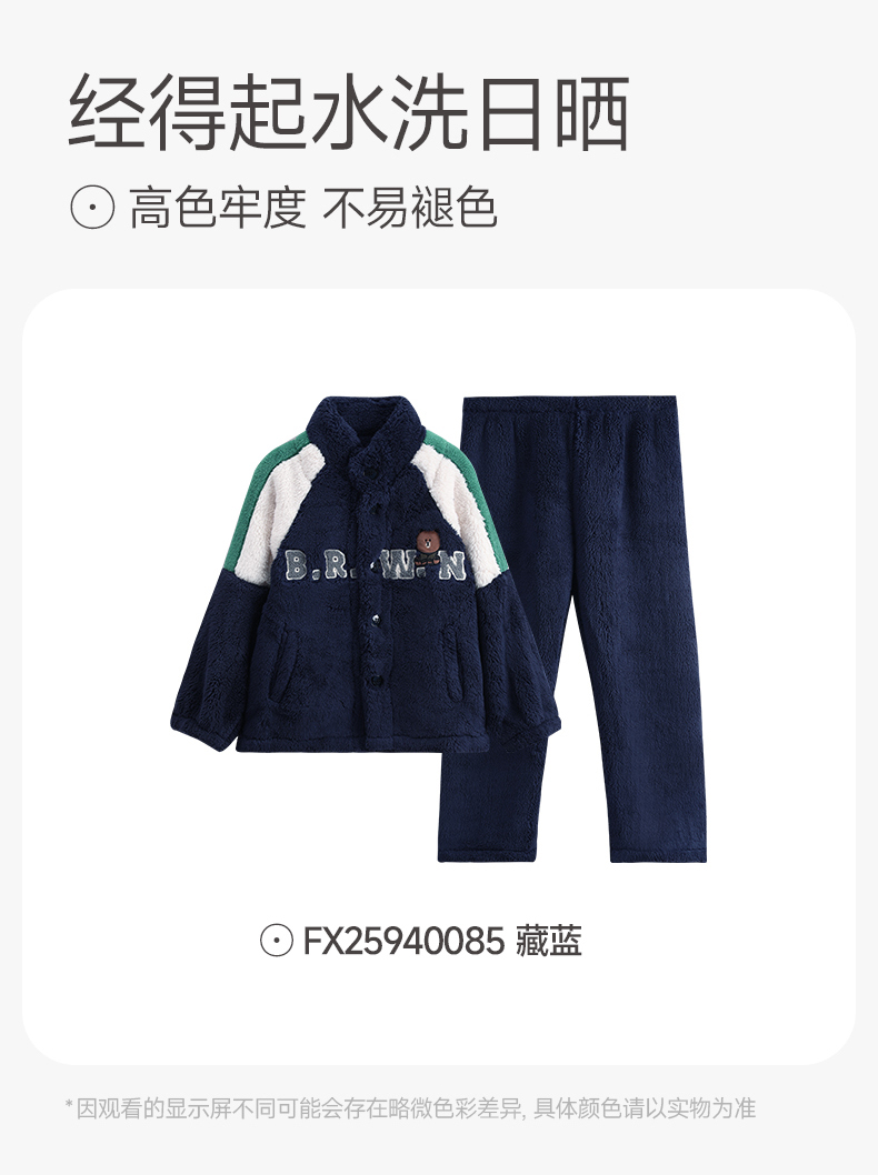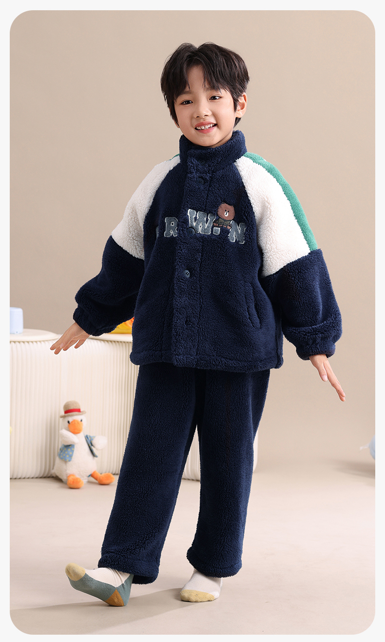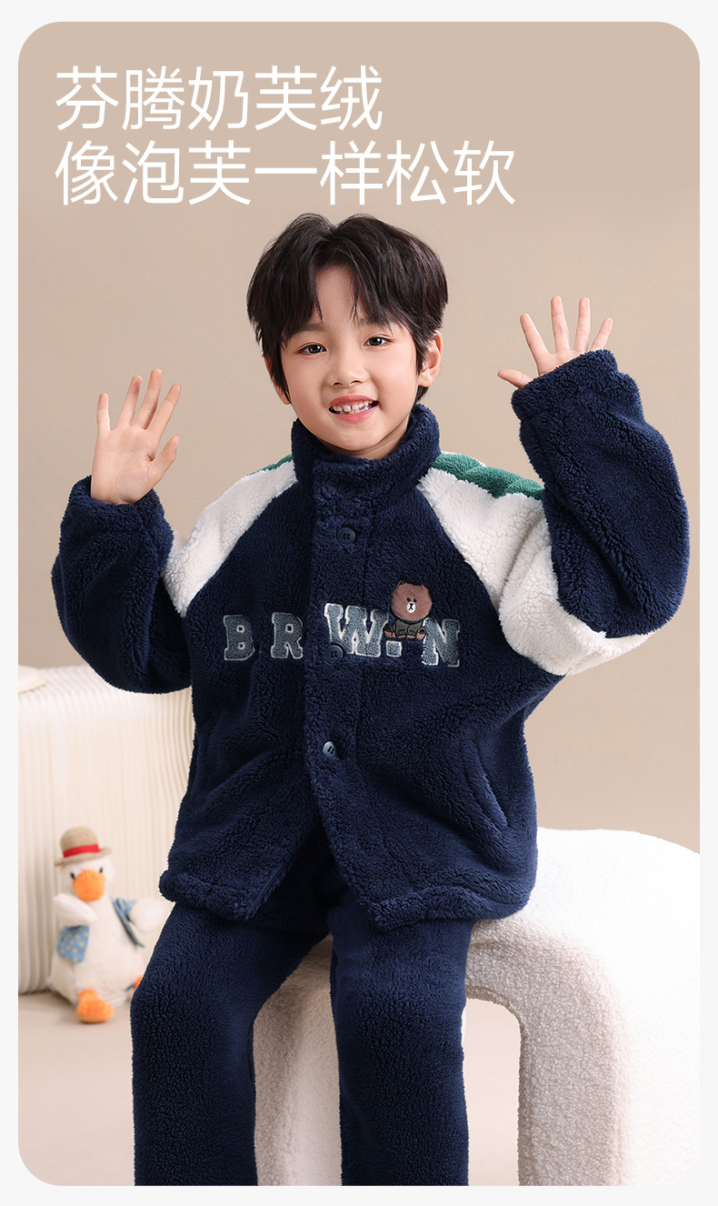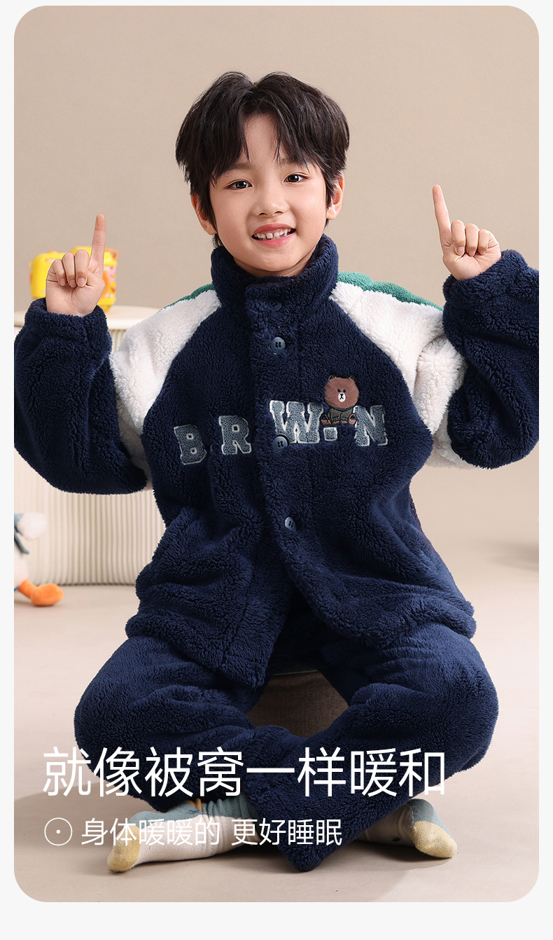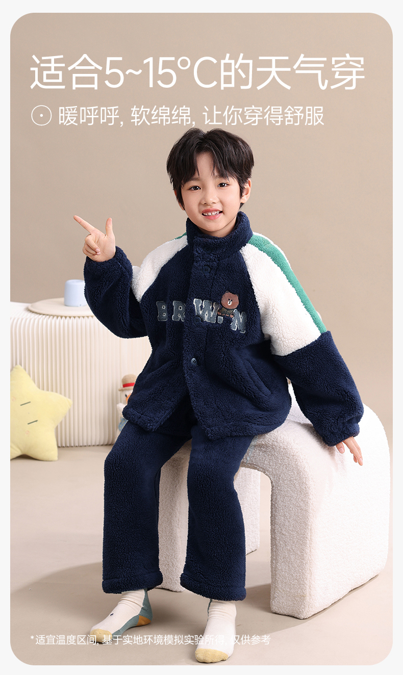 【品牌优选】芬腾珊瑚绒男童睡衣秋冬加厚套装男孩布朗熊儿童宝宝中大童家居服
