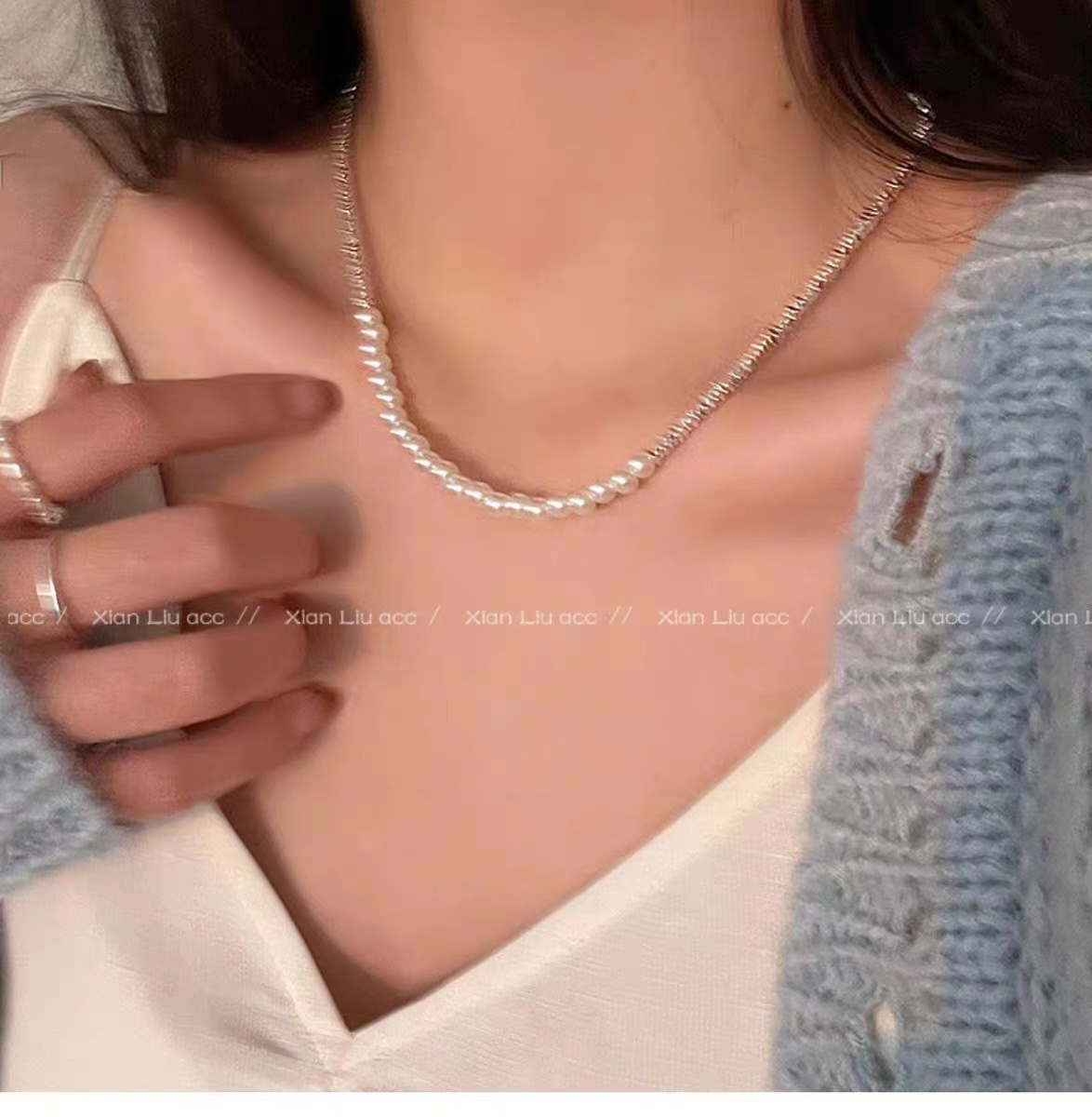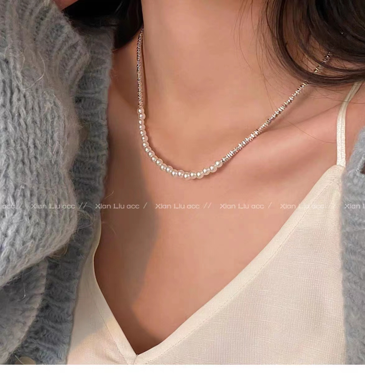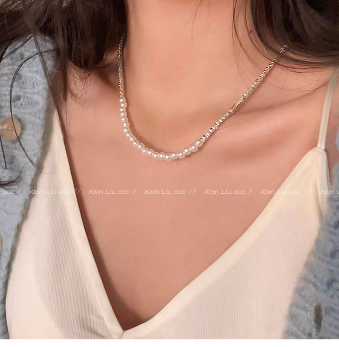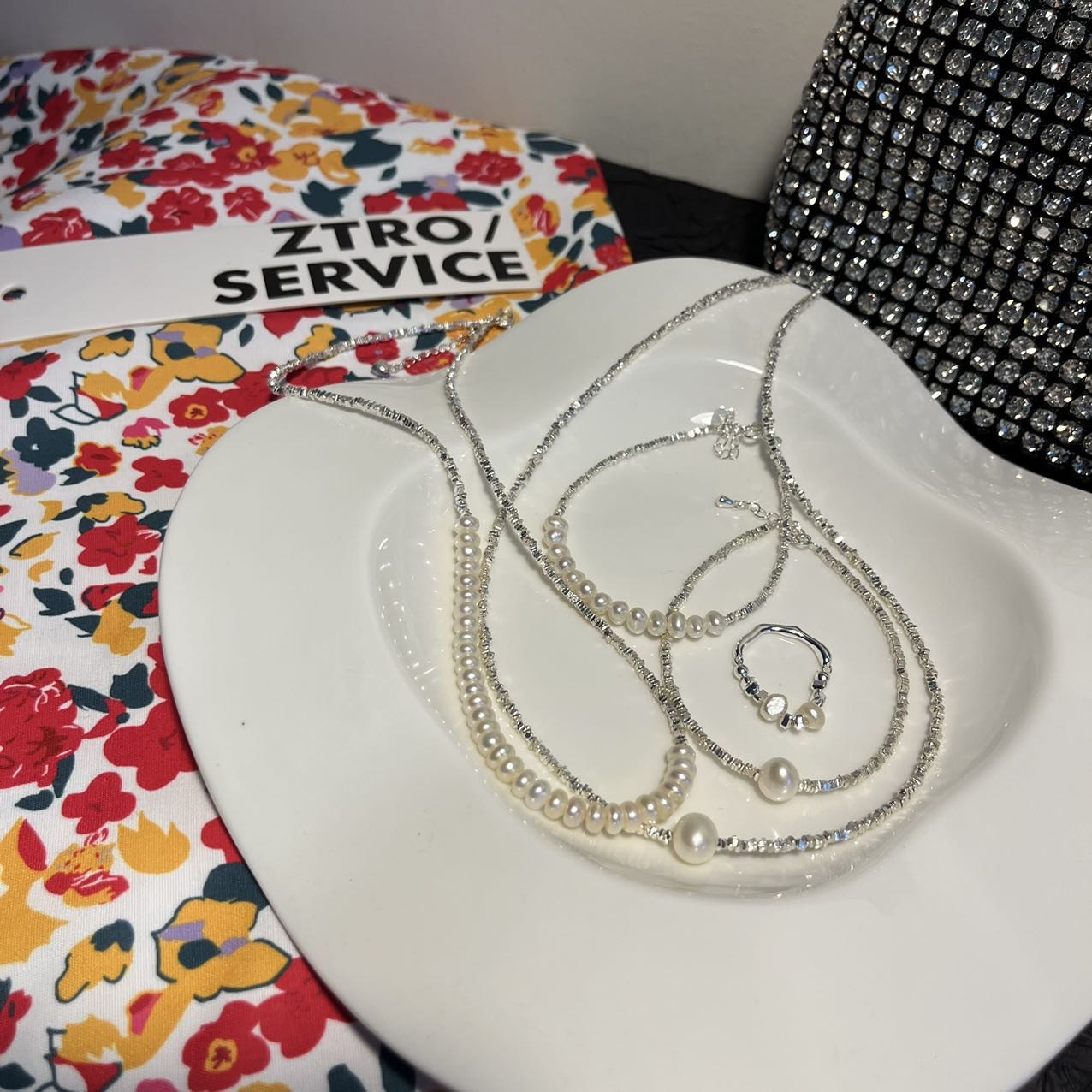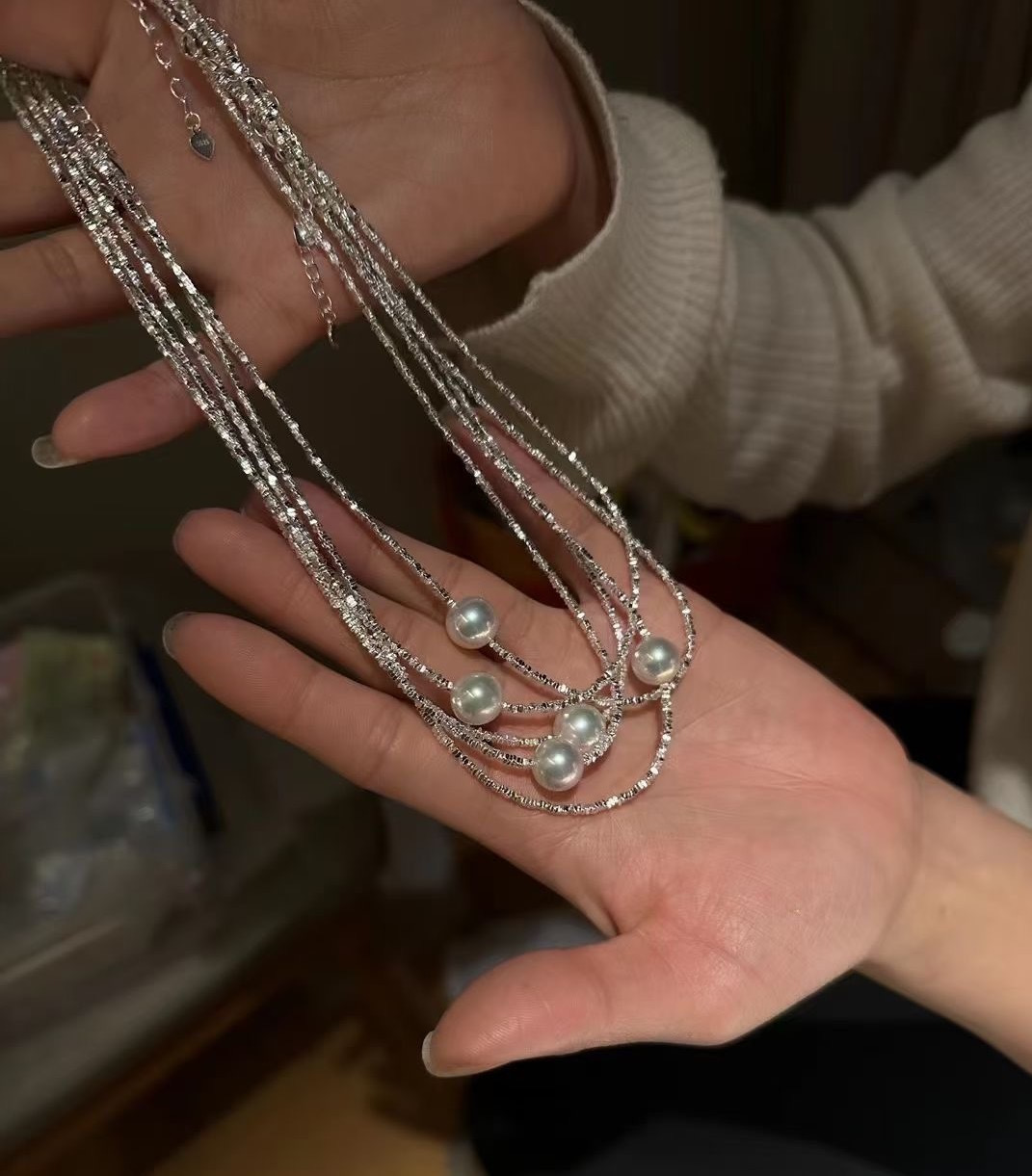细细碎碎的银光闪闪可以和珍珠叠搭
