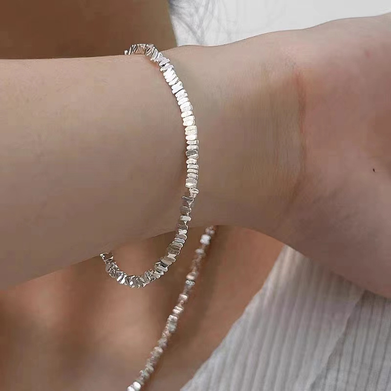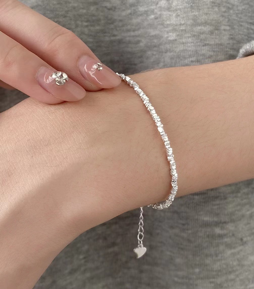通体925银材质的碎银子手链